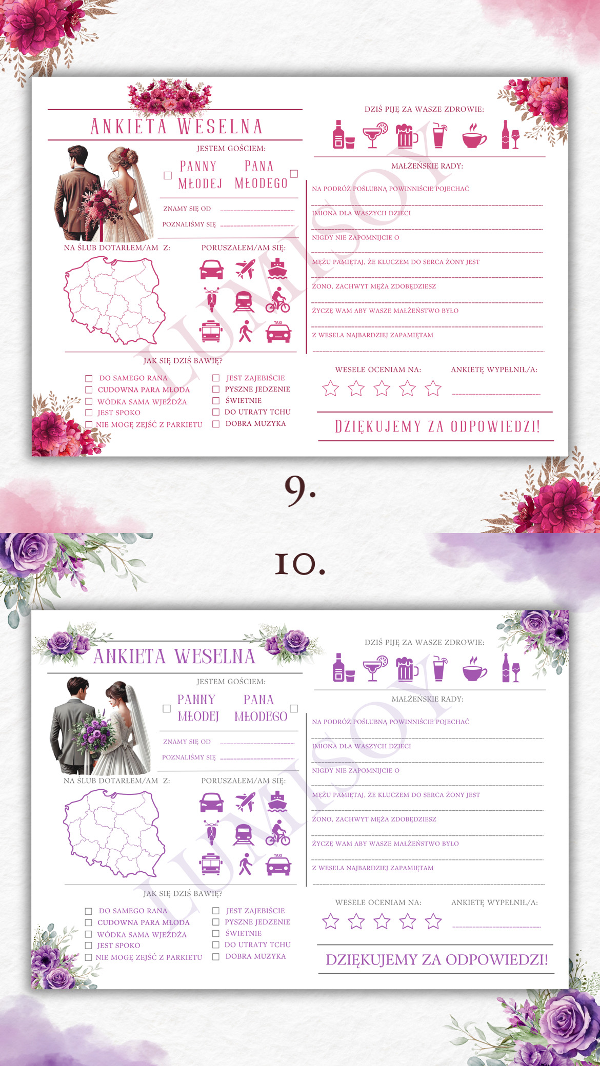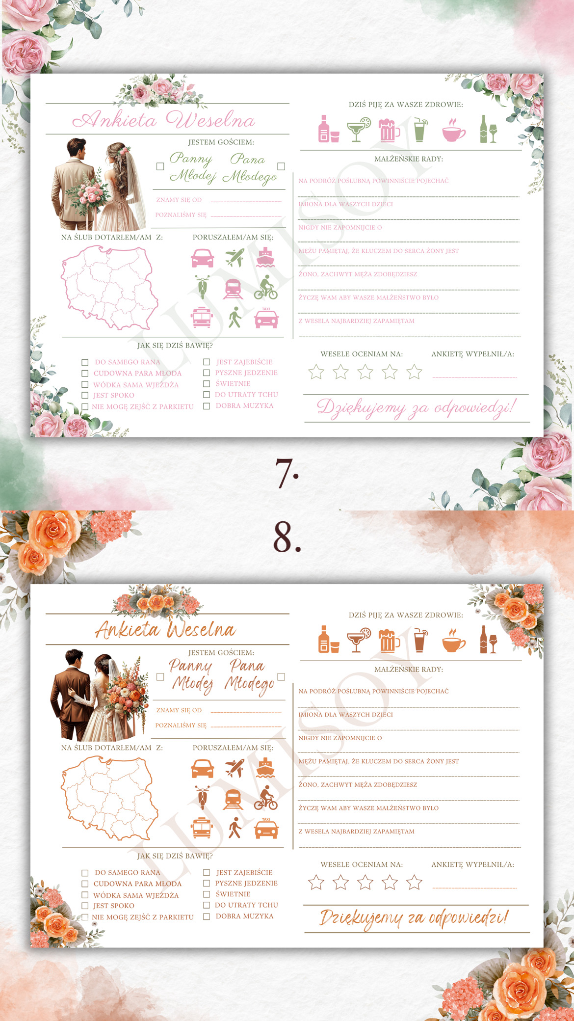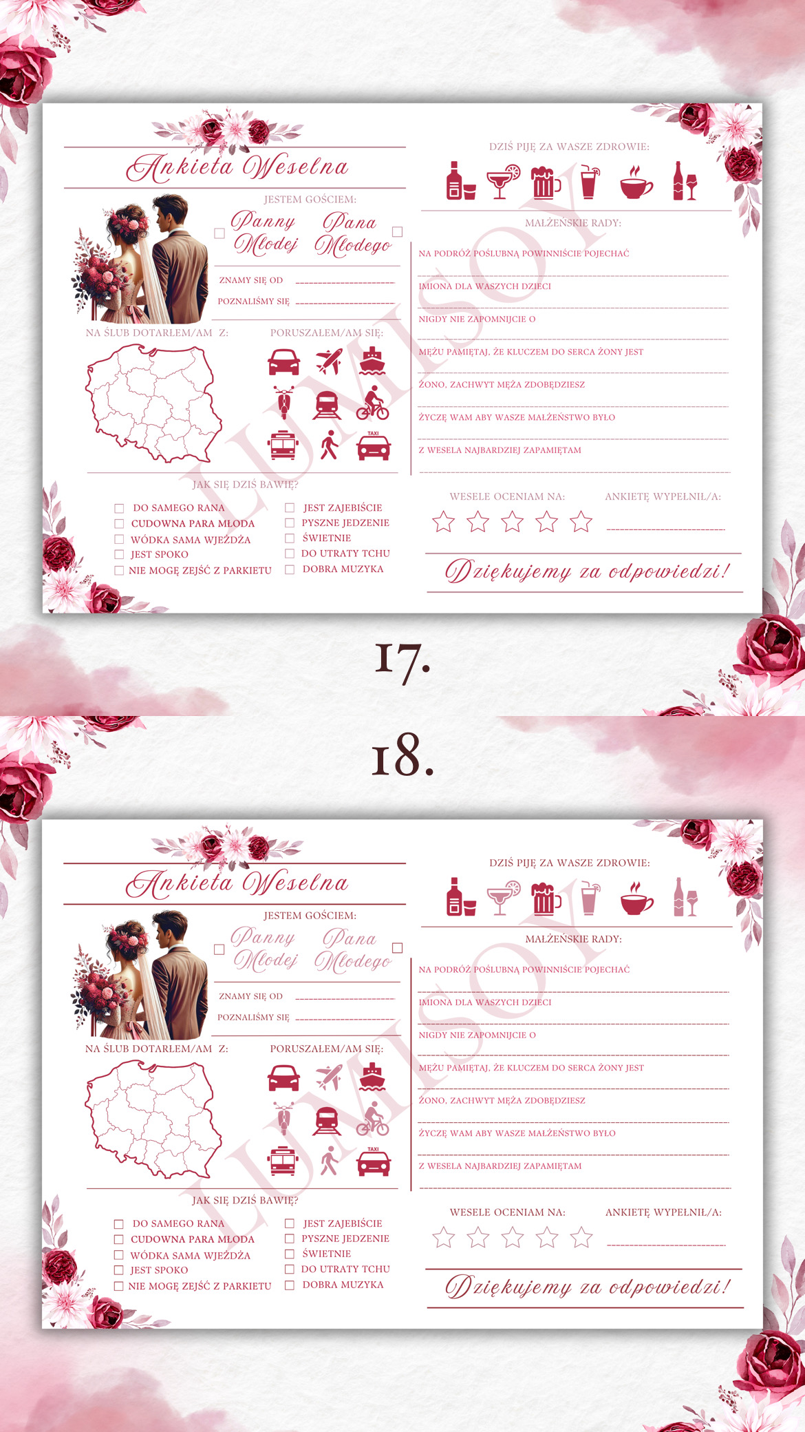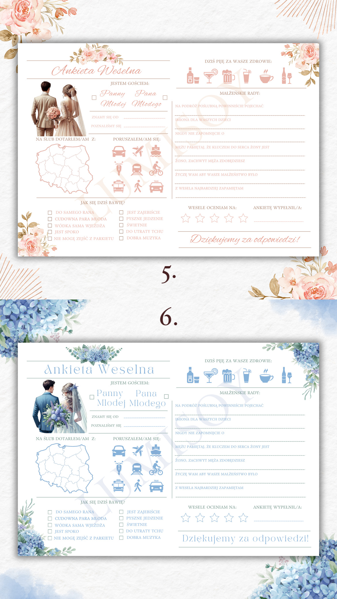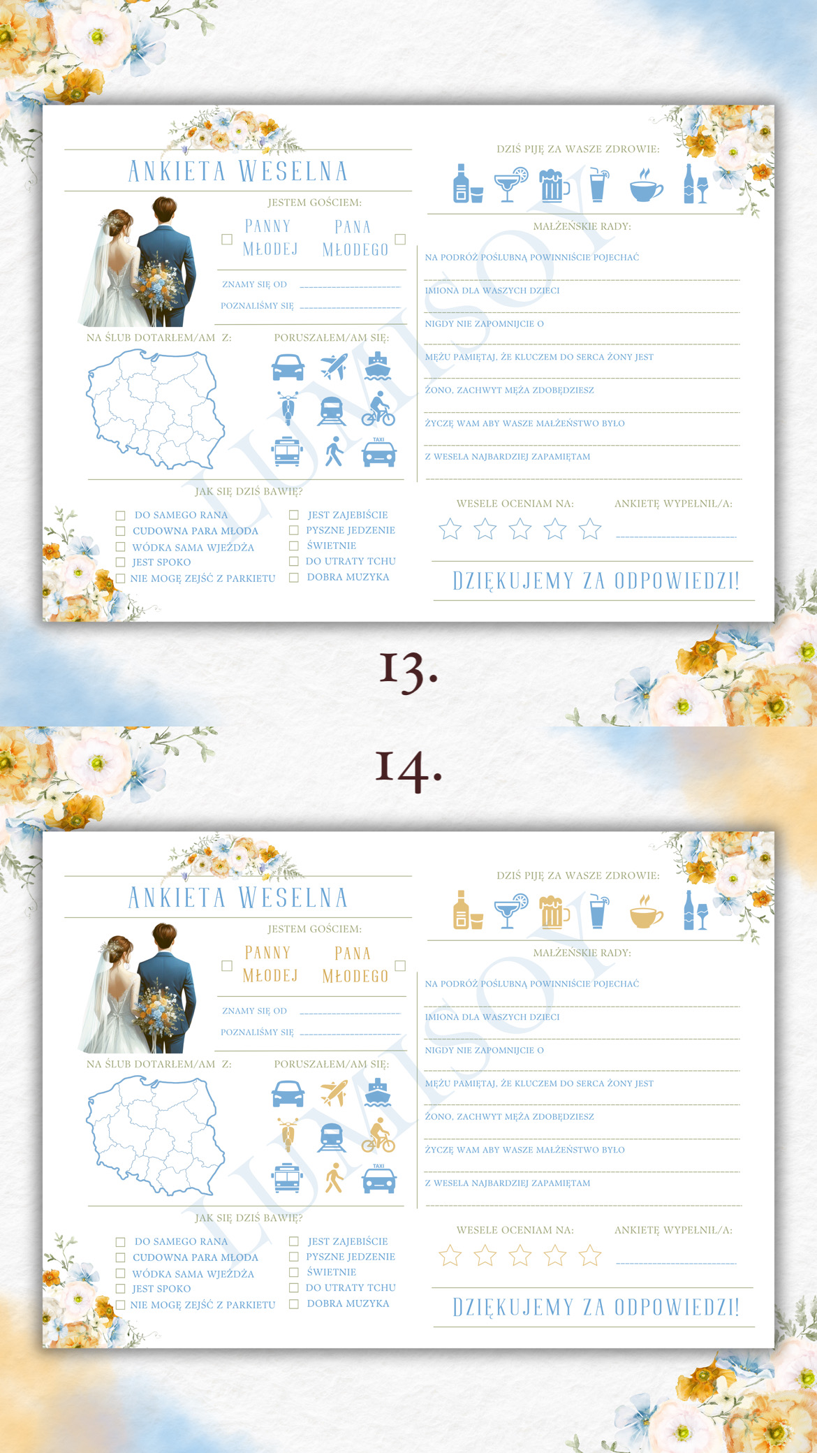 Ankieta Weselna PDF dla Gości – Różne Wersje Kolorystyczne