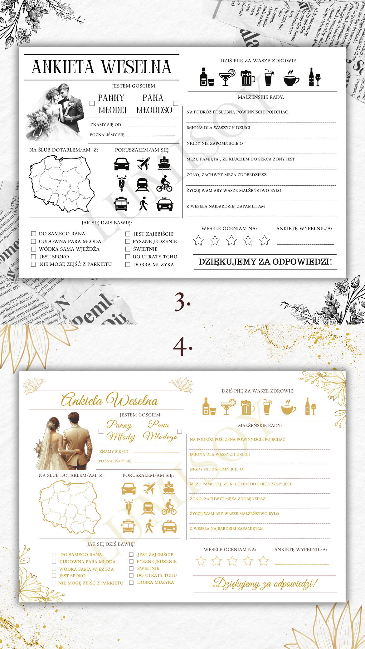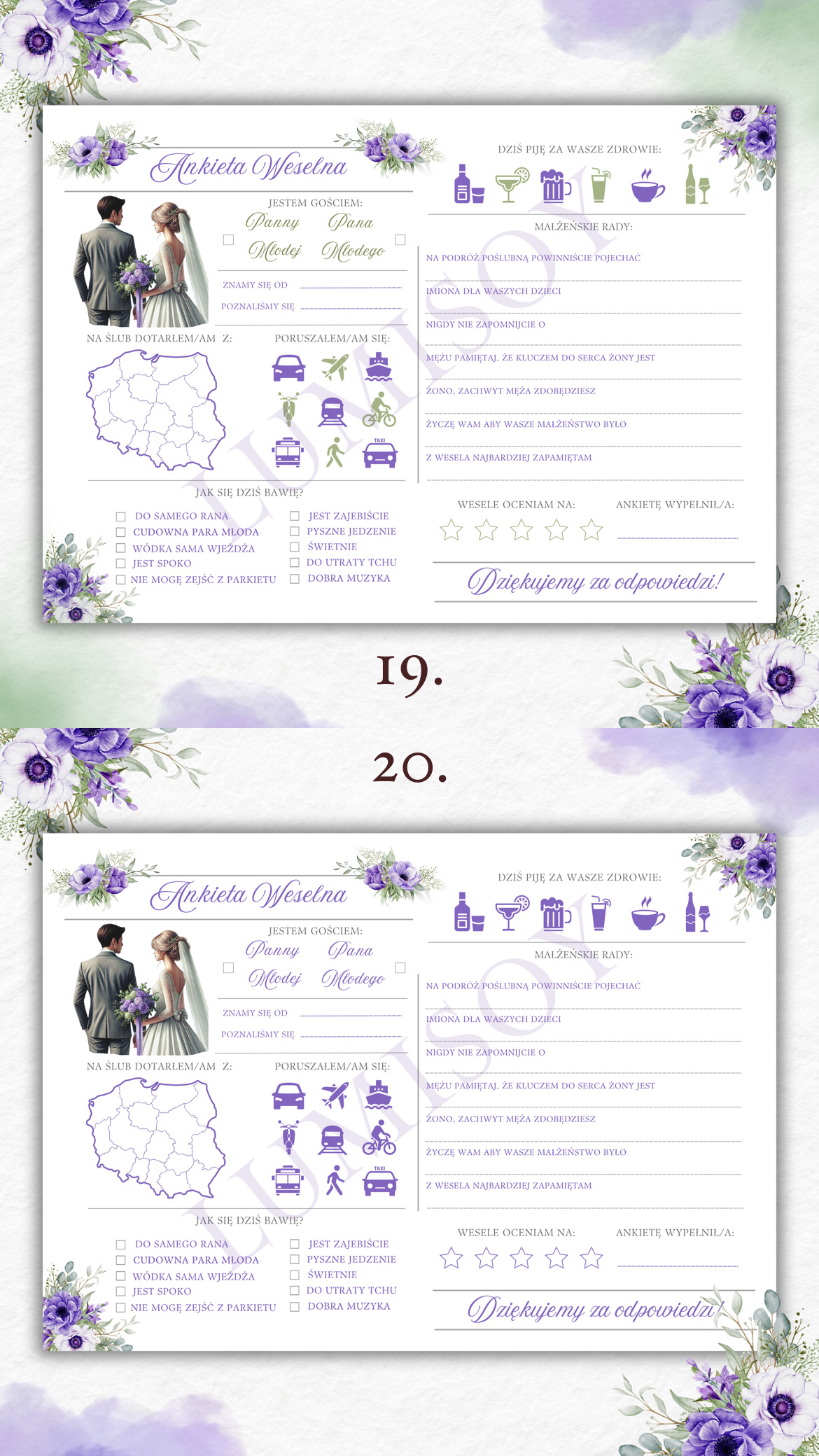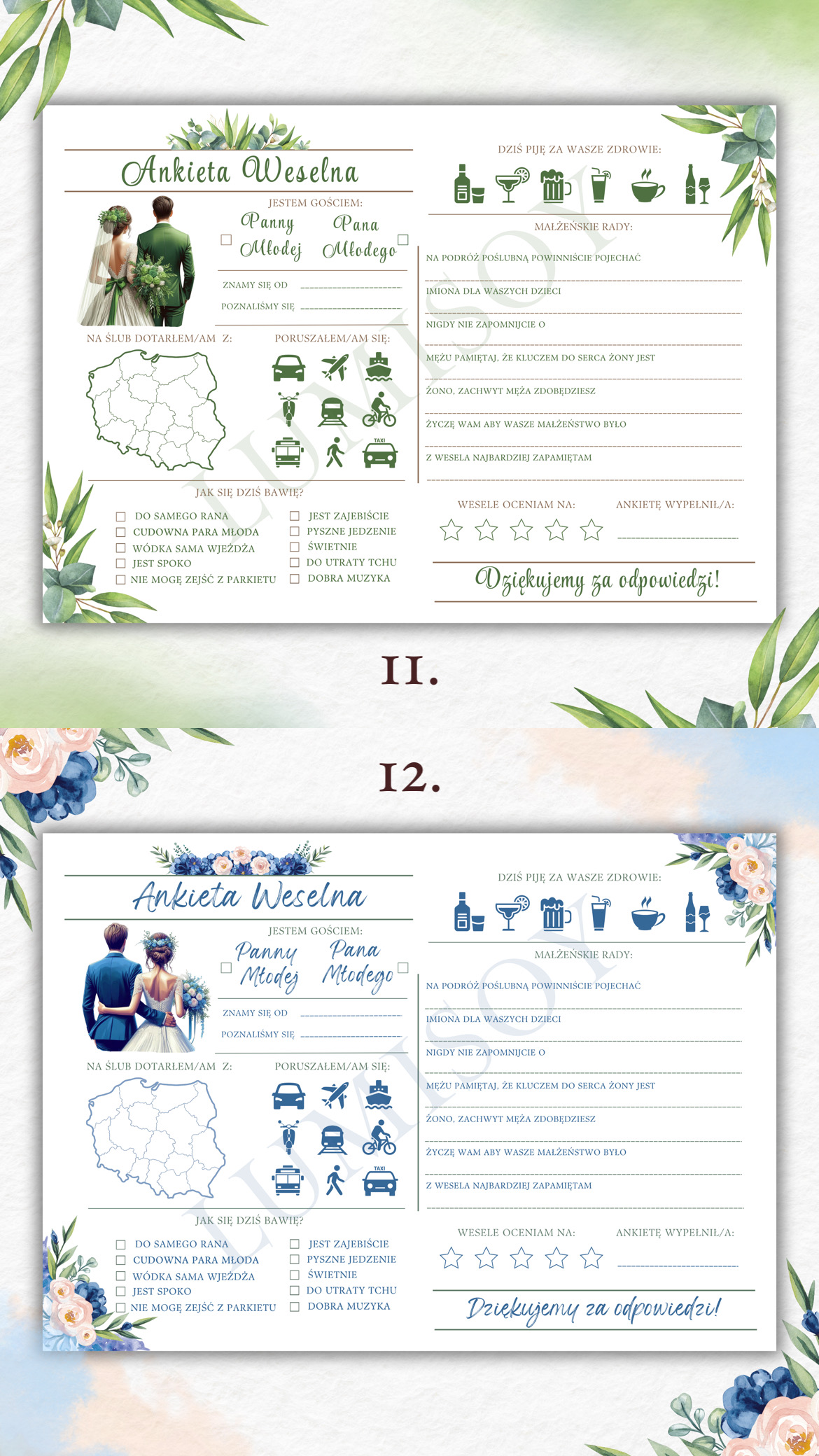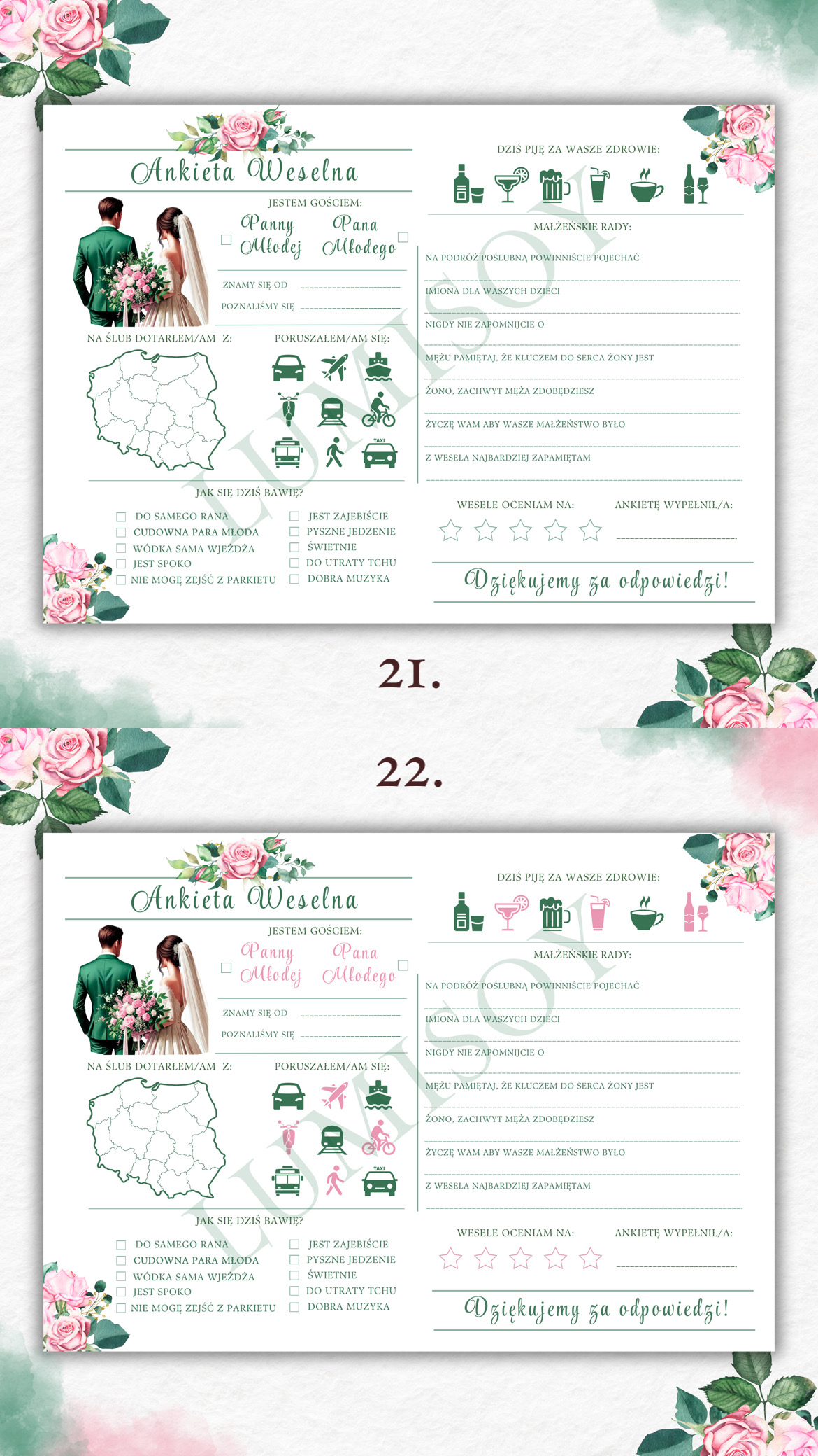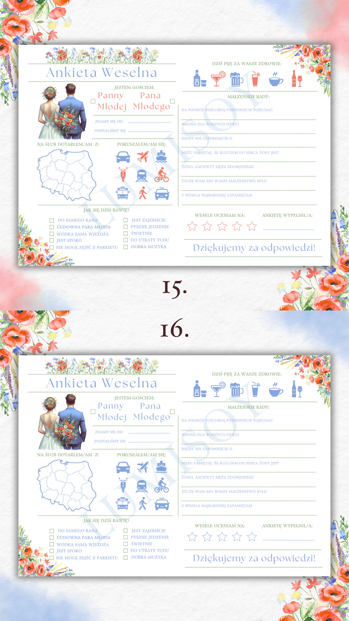 Ankieta Weselna PDF dla Gości – Różne Wersje Kolorystyczne