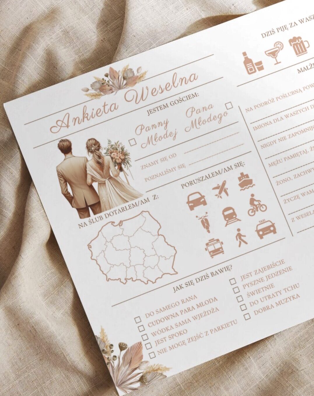 Ankieta Weselna w formacie PDF do druku A4 poziomo.