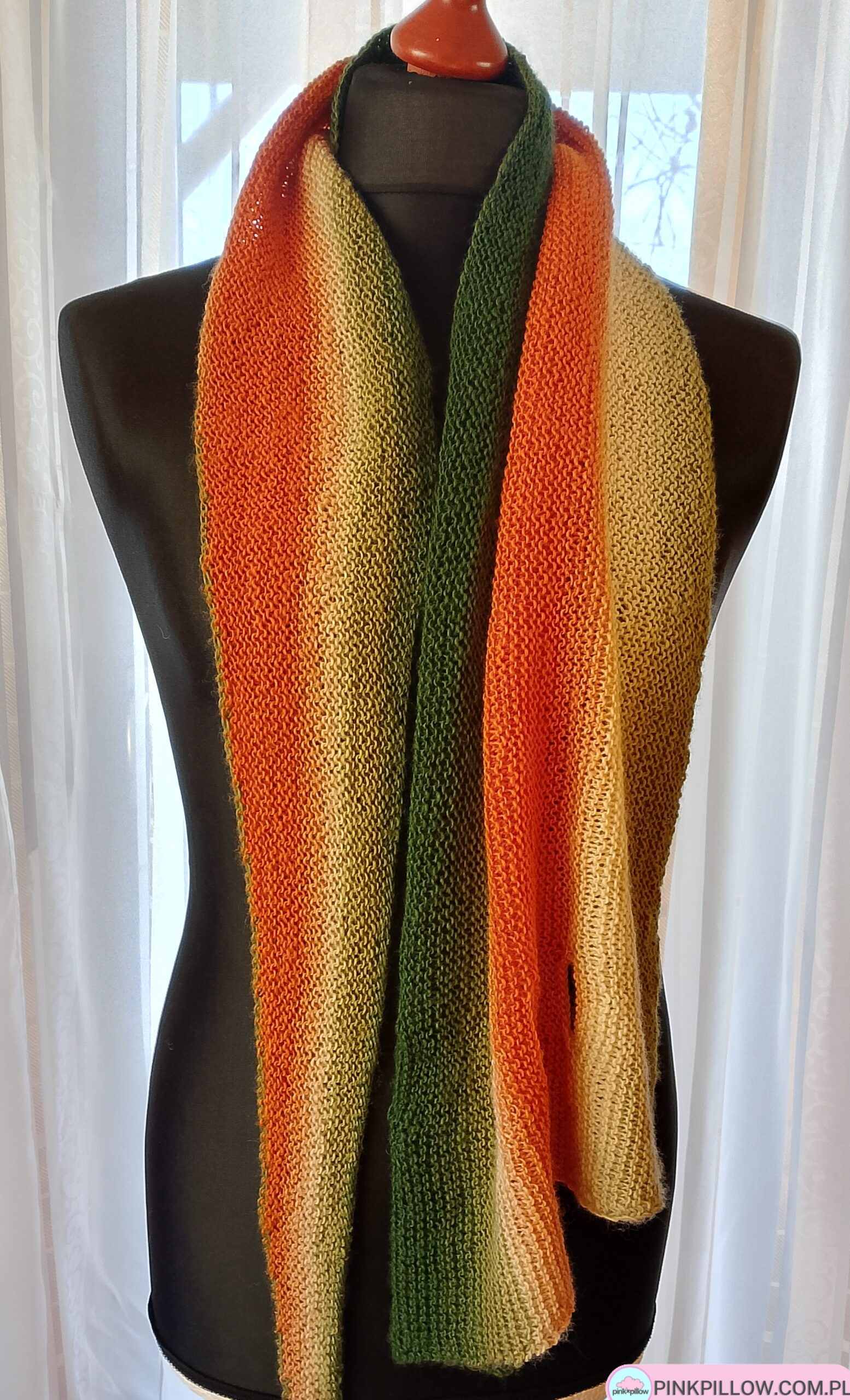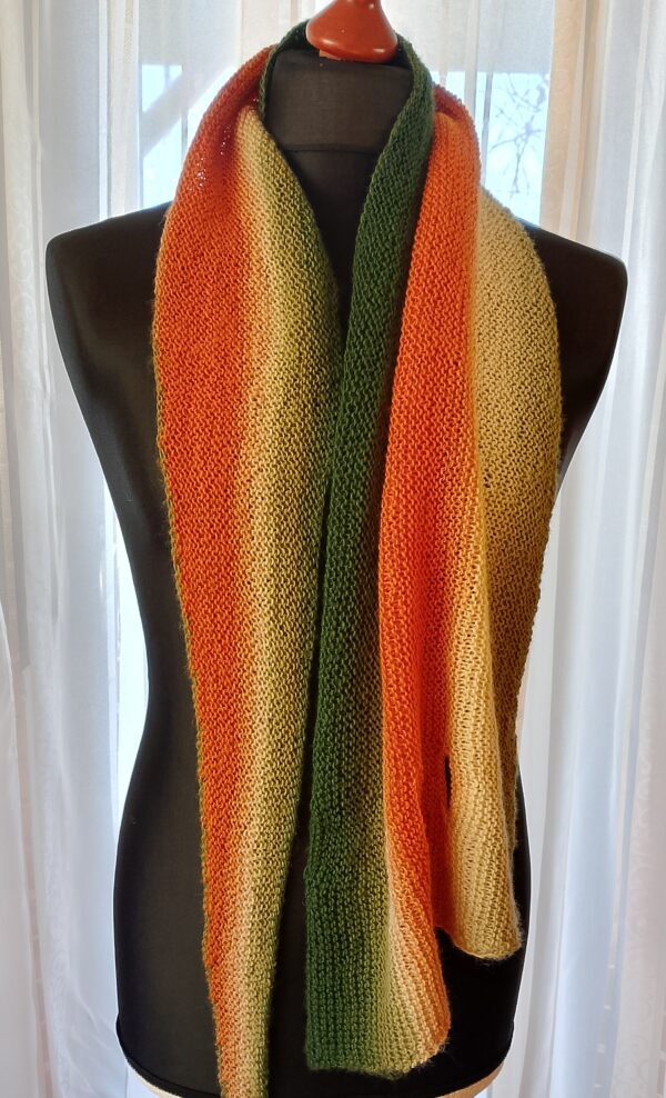 Asymetryczny Szal „Strzałka” na drutach – Wymiary 185×40 cm