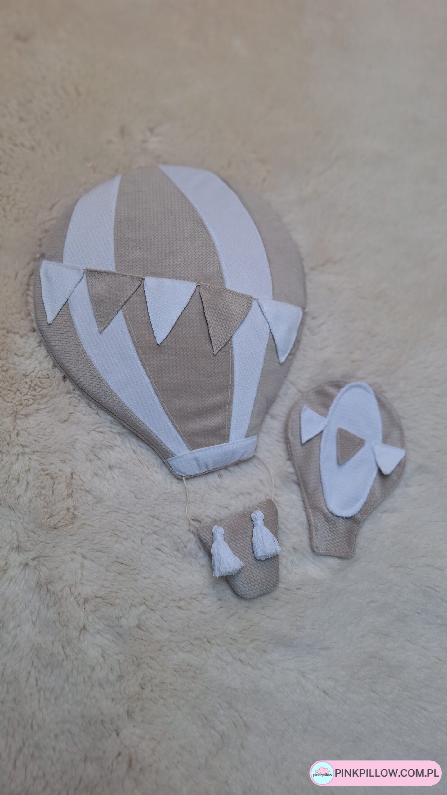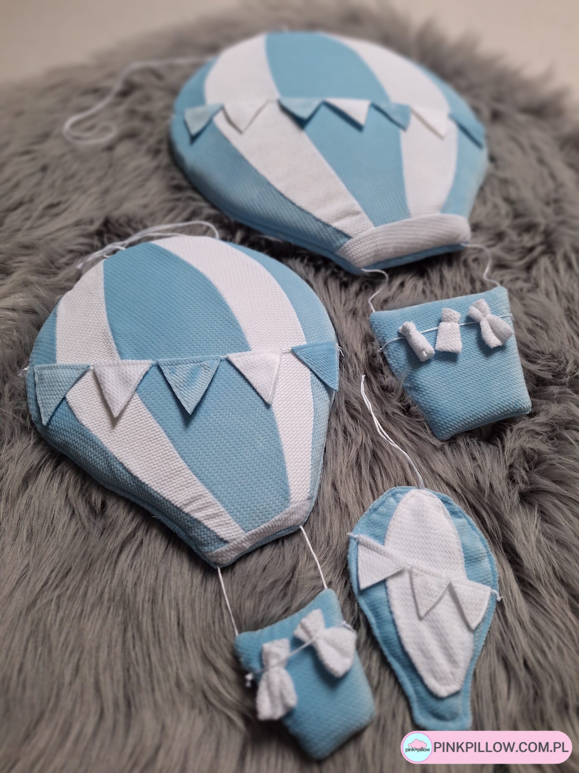 Dekoracja ścienna w postaci Balona stanowi nie tylko część wystroju pokoju dziecięcego, ale też może być ciekawym pomysłem na prezent. Balony dostępne są w wielu kolorach, wykonane są z bardzo miękkiego velvetu o fakturze cegiełki i mają około 30cm(mały) i 46 cm(duży) wysokości. Każdy balon posiada zawieszkę oraz haczyk z taśmą, dzięki którym można zawiesić je w dowolnym miejscu.