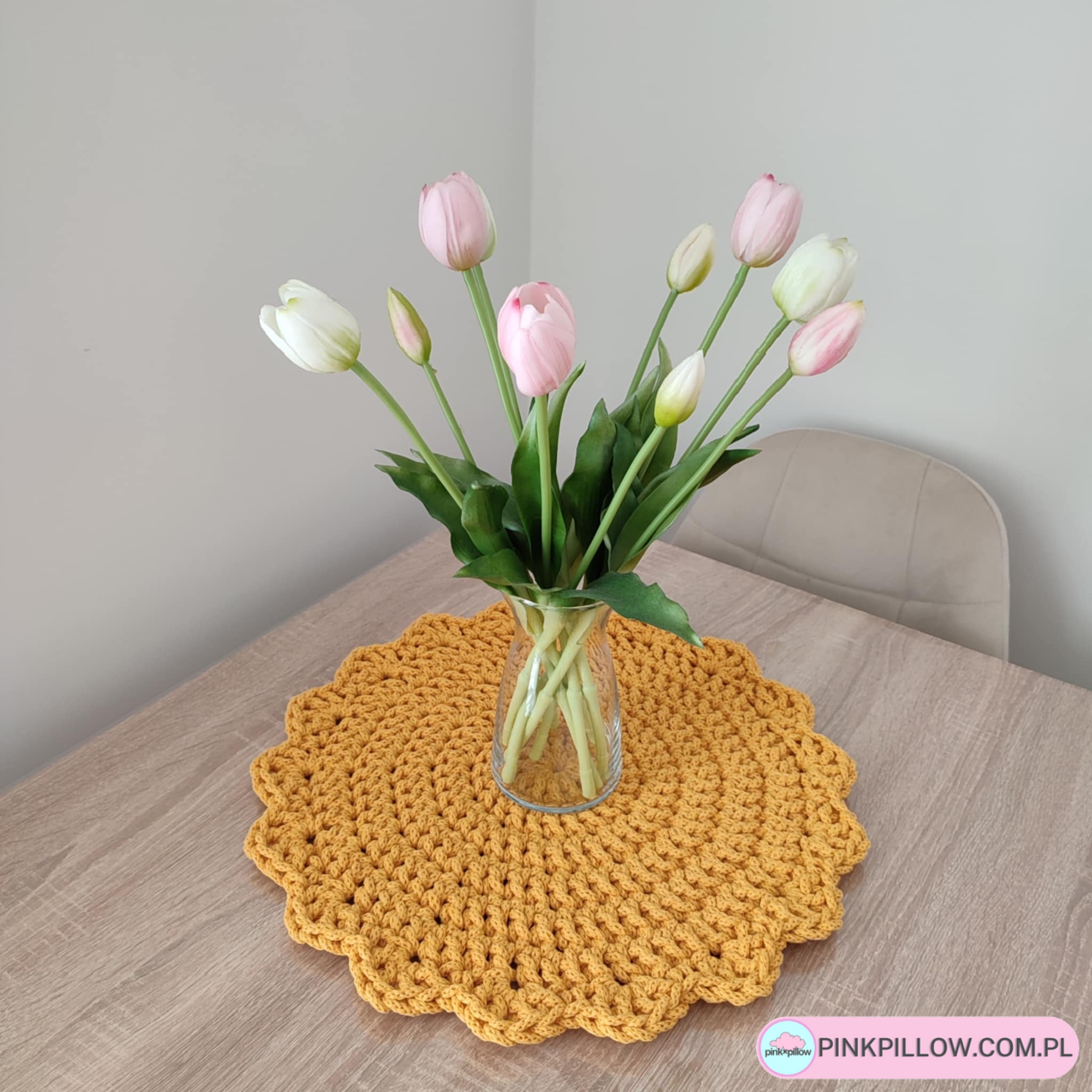 Bawełniana Podkładka o średnicy 42 cm, wykonana metodą szydełkowania z polskiego sznurka bawełnianego 5mm, dostępna w aż 36 kolorach. Będzie świetnym dodatkiem do każdego wnętrza. Sprawdzi się w kuchni, jadalni lub salonie pod talerze również te duże obiadowe, czy półmisy.