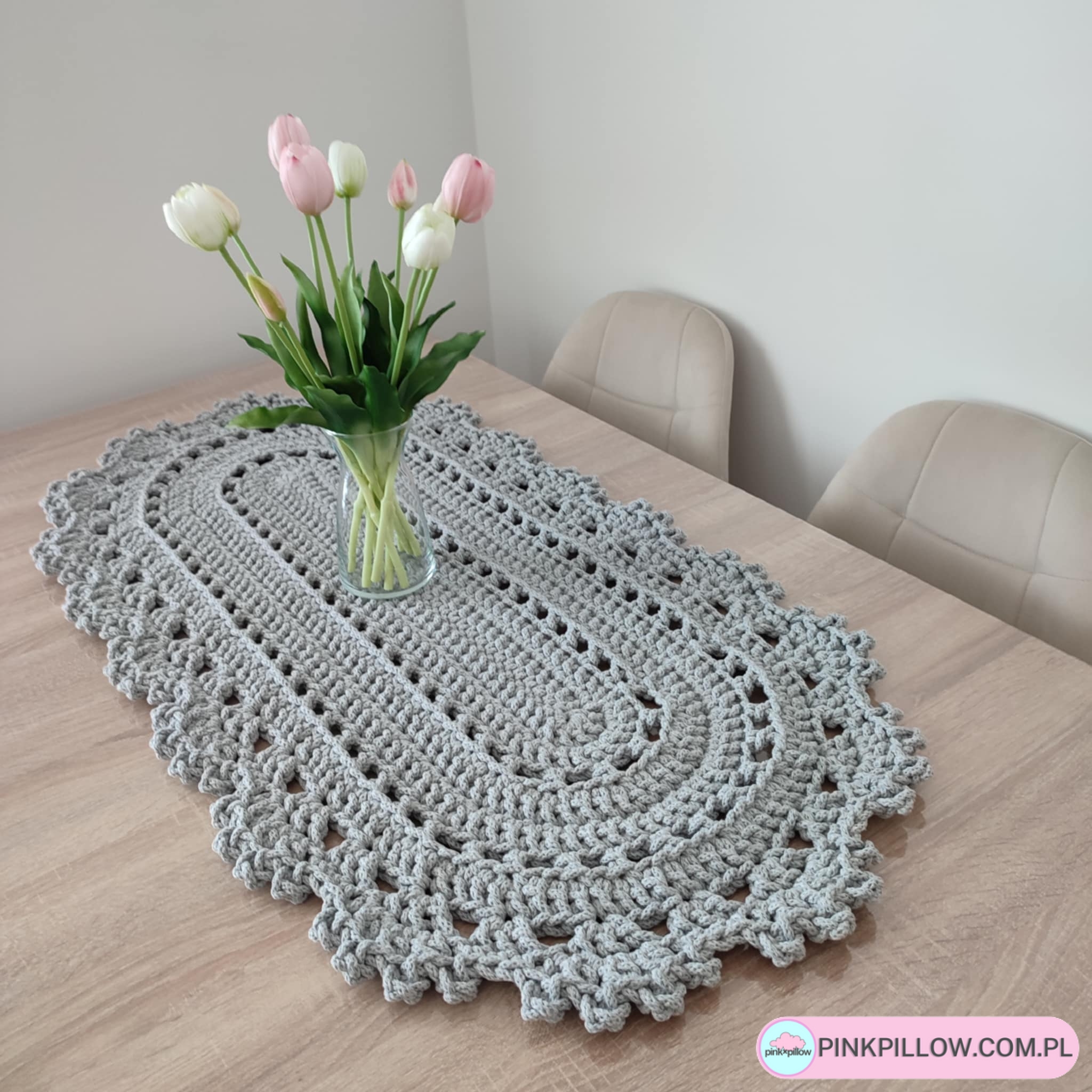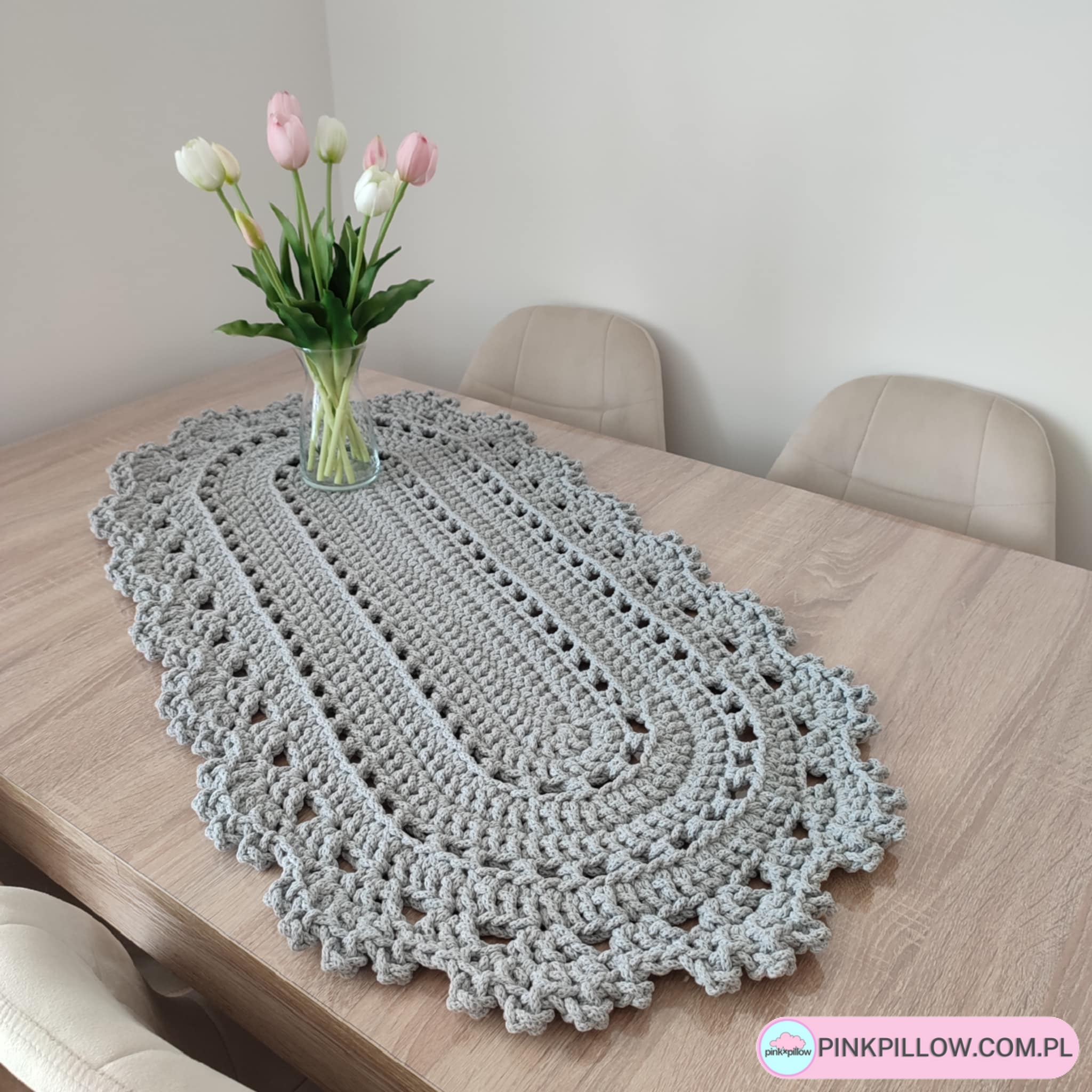 Owalny Bieżnik szydełkowy na stół – 50×140 cm – Różne Kolory