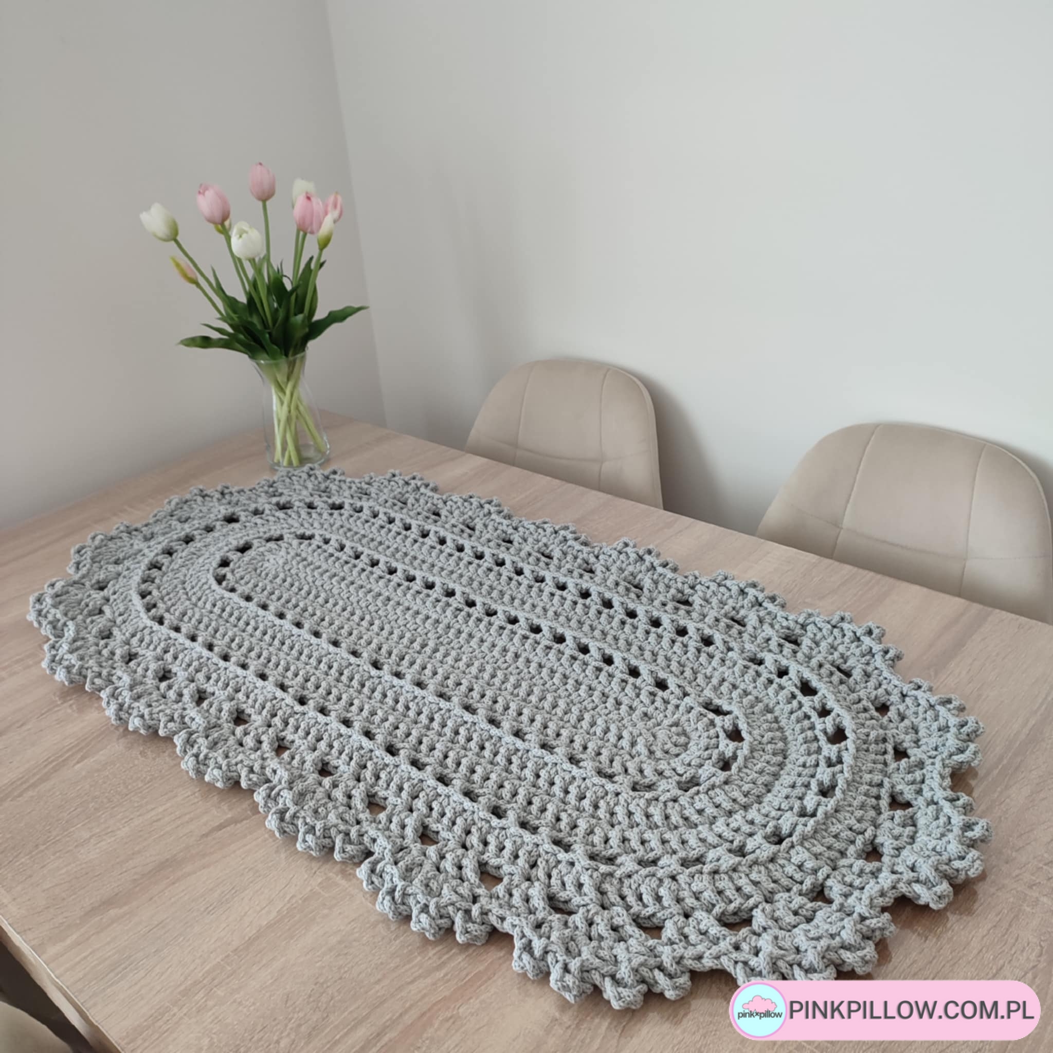 Bieżnik o wymiarach 50×100 cm, wykonany metodą szydełkowania z polskiego sznurka bawełnianego 5mm. Dostępny w aż 36 kolorach do wyboru. Świetny na stół do kuchni, salonu lub jadalni. Bieżnik będzie ozdobą stołu, doda uroku oraz ociepli wnętrze. W przypadku zabrudzenia, jest on łatwy w utrzymaniu w czystości. Można prać w pralce w 30 stopniach i wirować. Suszyć należy rozłożony na płasko.