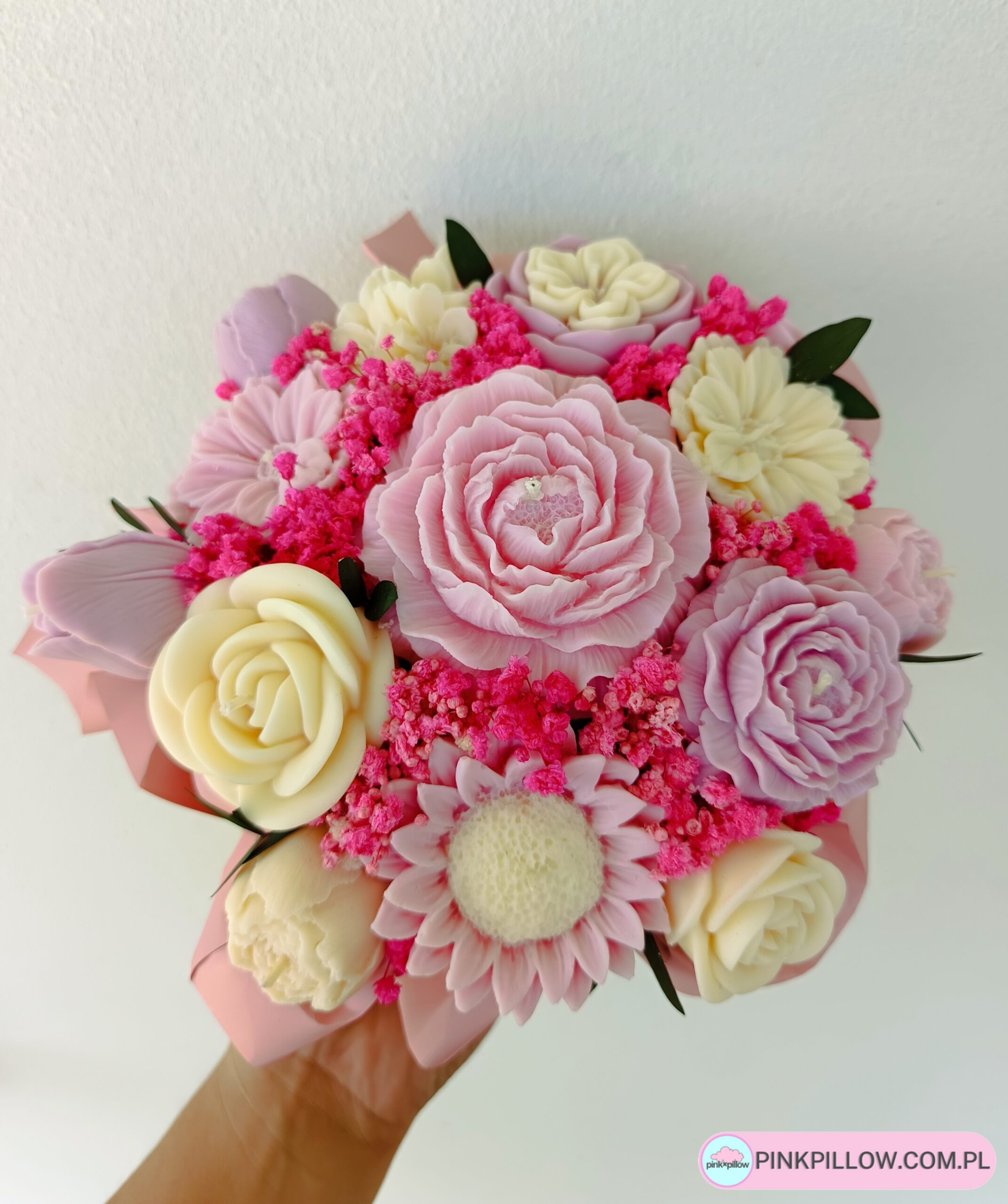 Bukiet Kwiatów z wosku w Torebce – Kolor Różowo-Biały