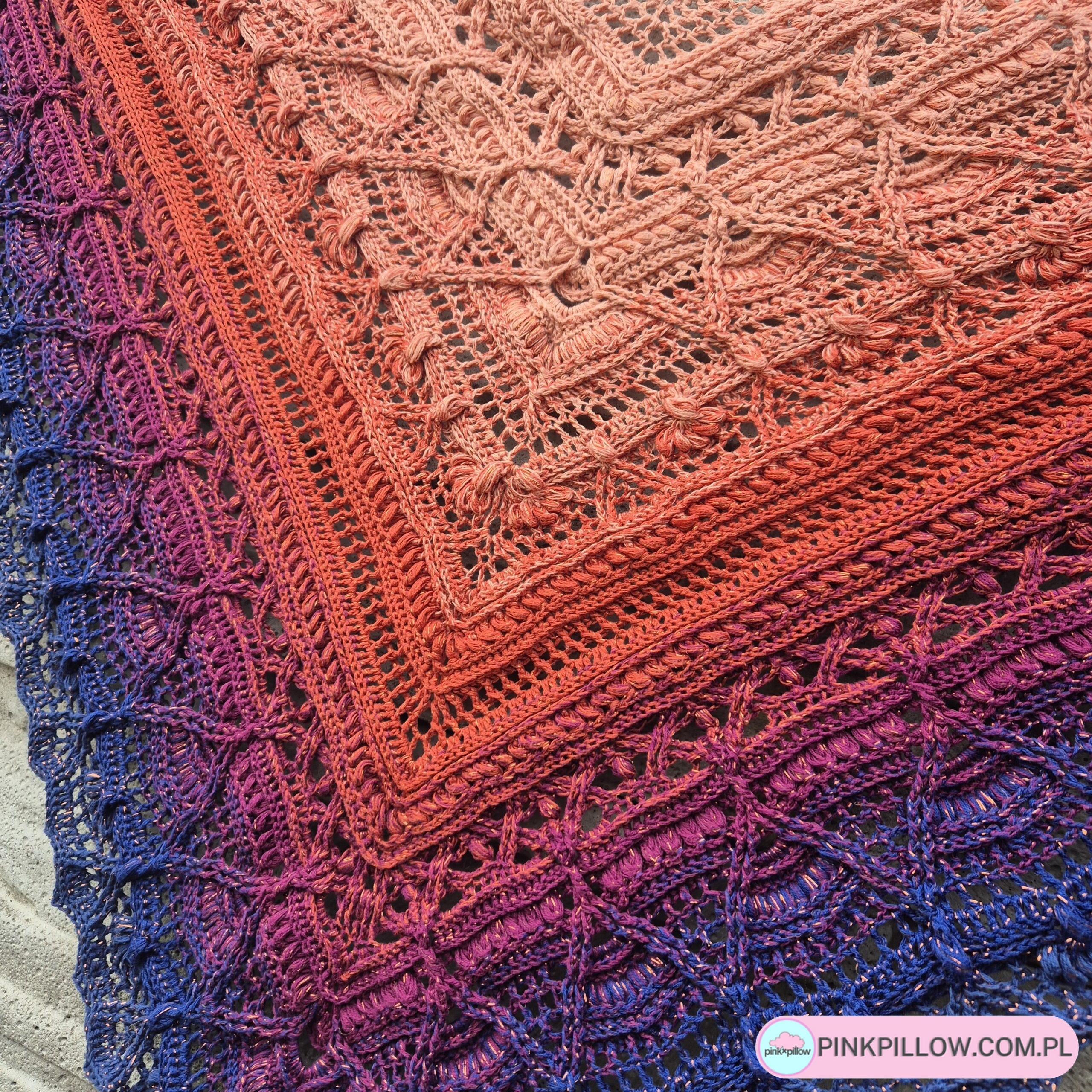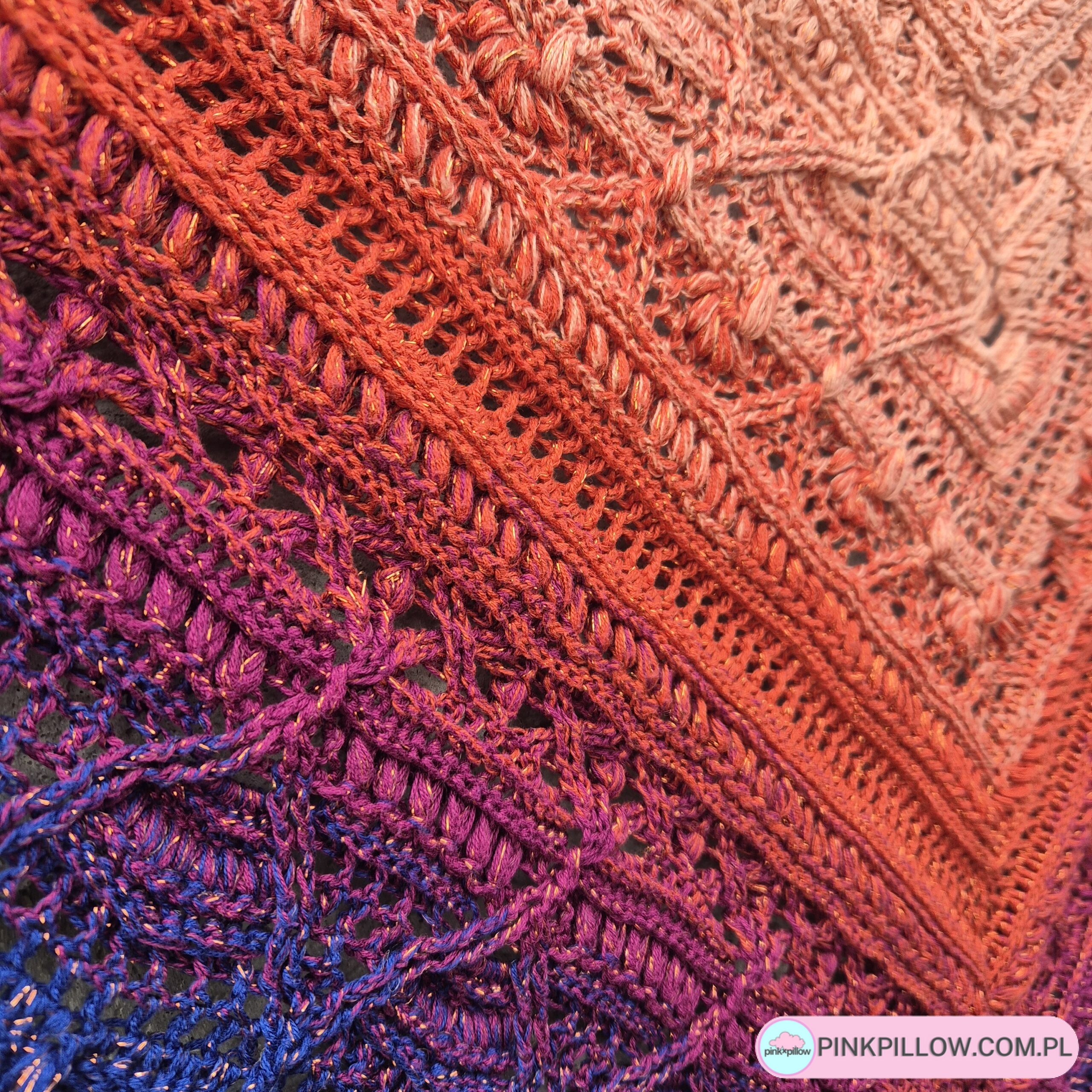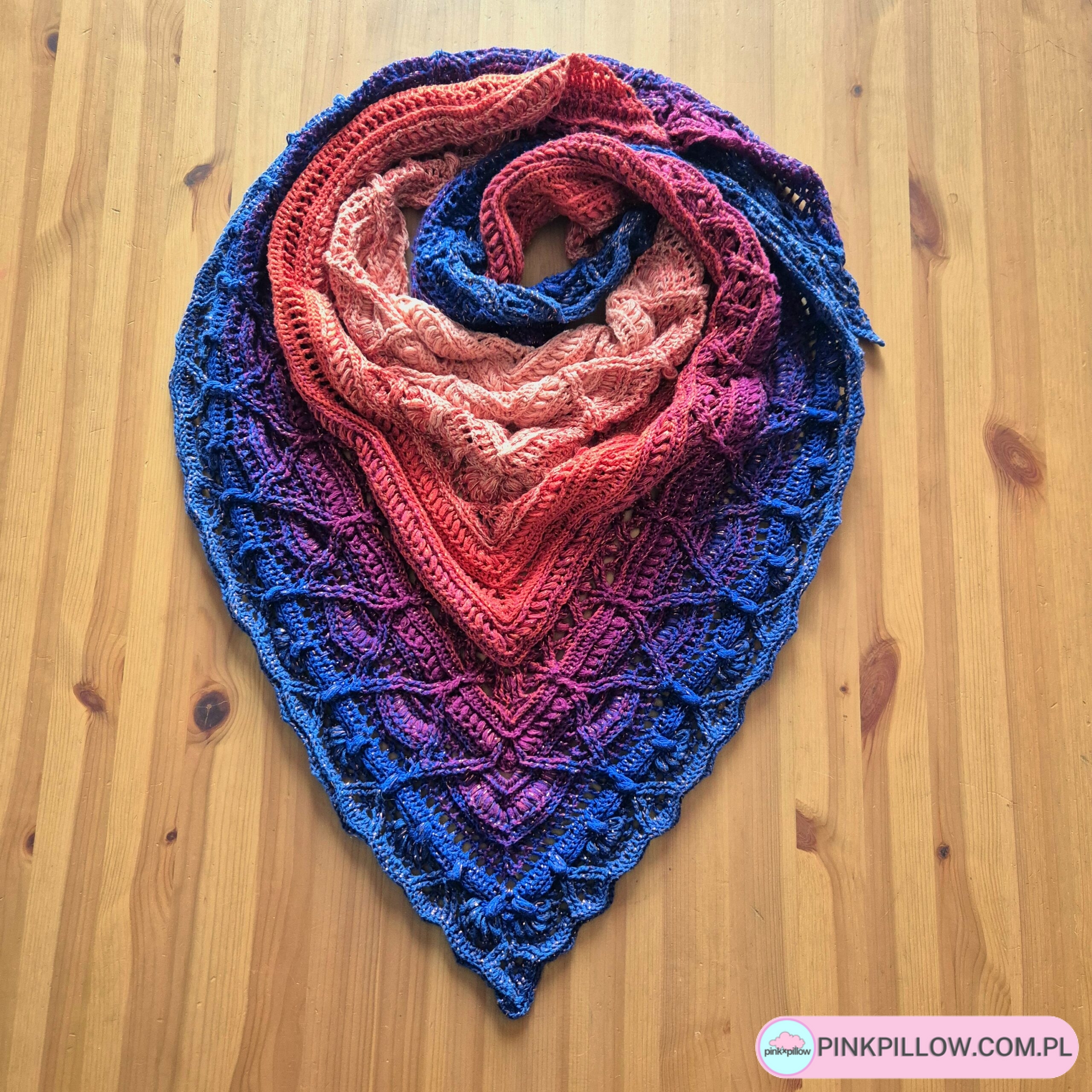 Chusta wykonana jest ręcznie przy pomocy szydełka. Można opatulić się nią pod szyją, jak i zarzucić na plecy. Pasuje do każdej stylizacji nadając jej wyjątkowego charakteru. Chusta na każdą porę roku. Oryginalny i praktyczny prezent dla kogoś bliskiego lub dla siebie Chusta wykonana z mieszanki bawełna-akryl z dodatkową błyszczącą nitką, która sprawia, że chusta pięknie mieni się w promieniach słońca.