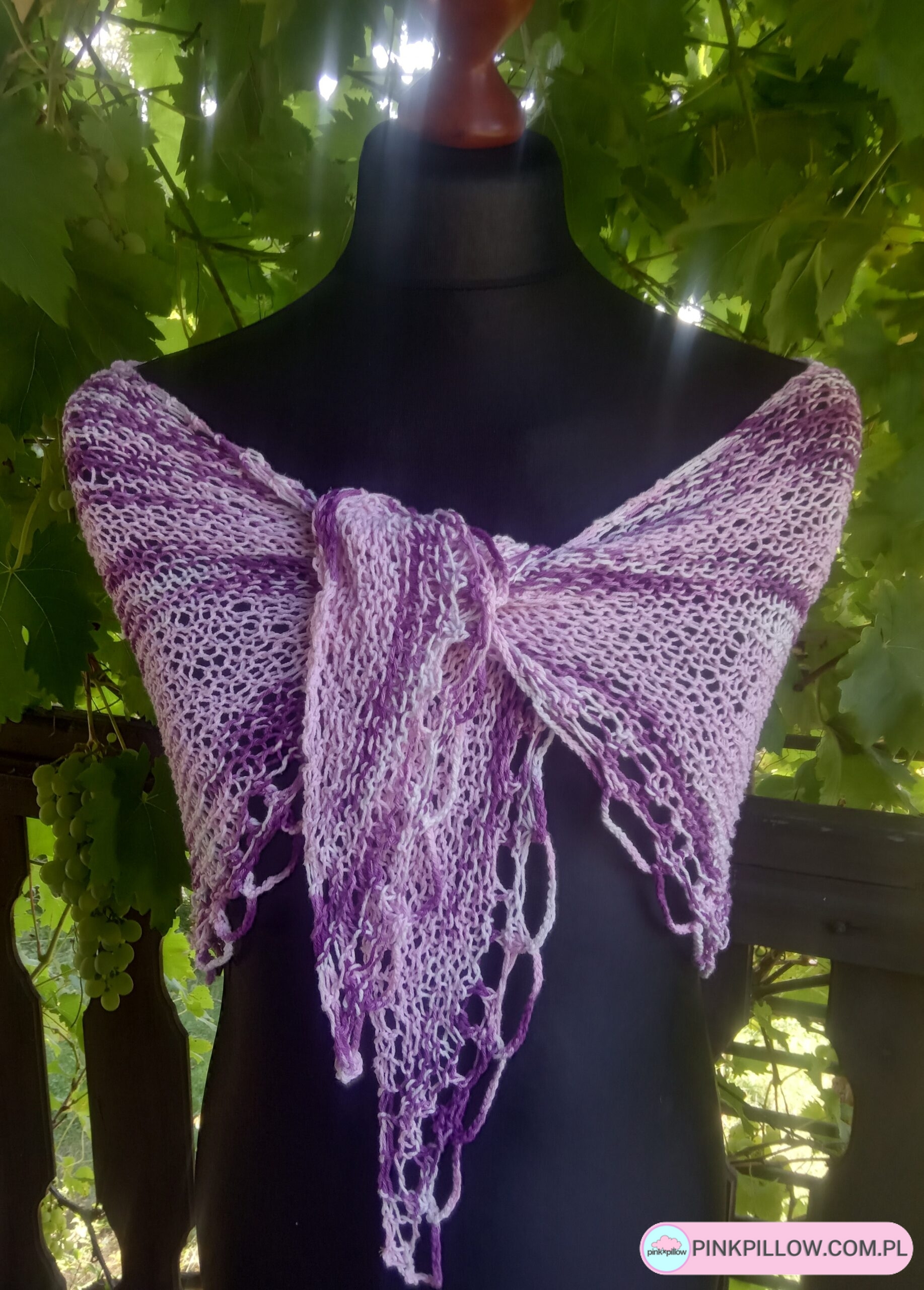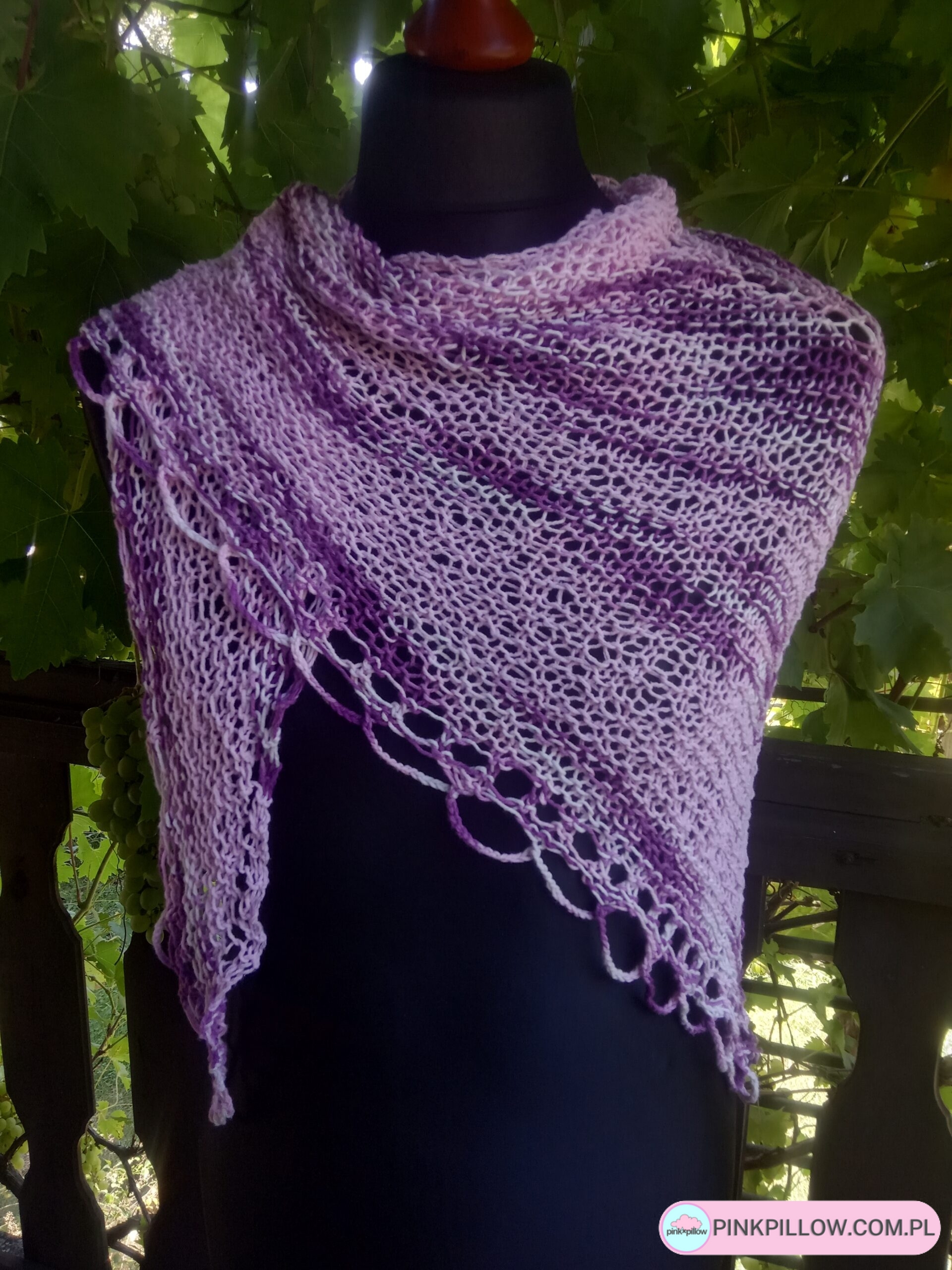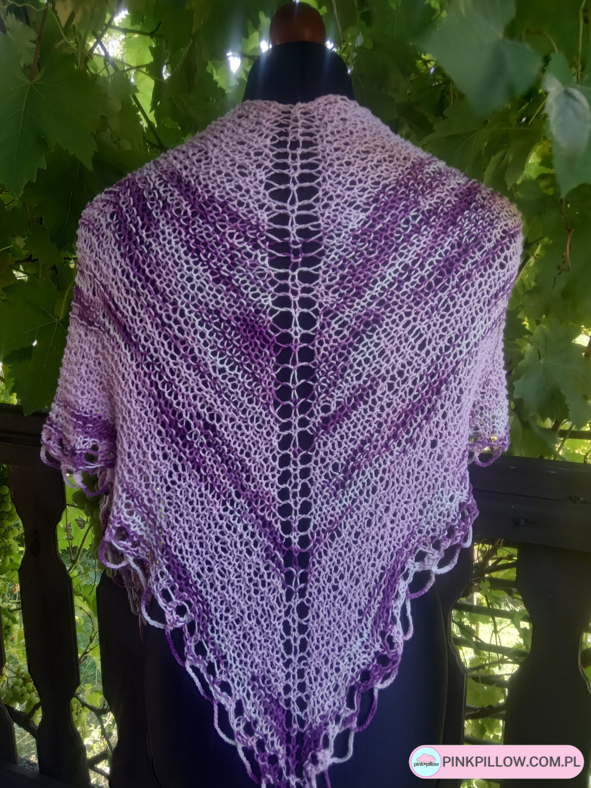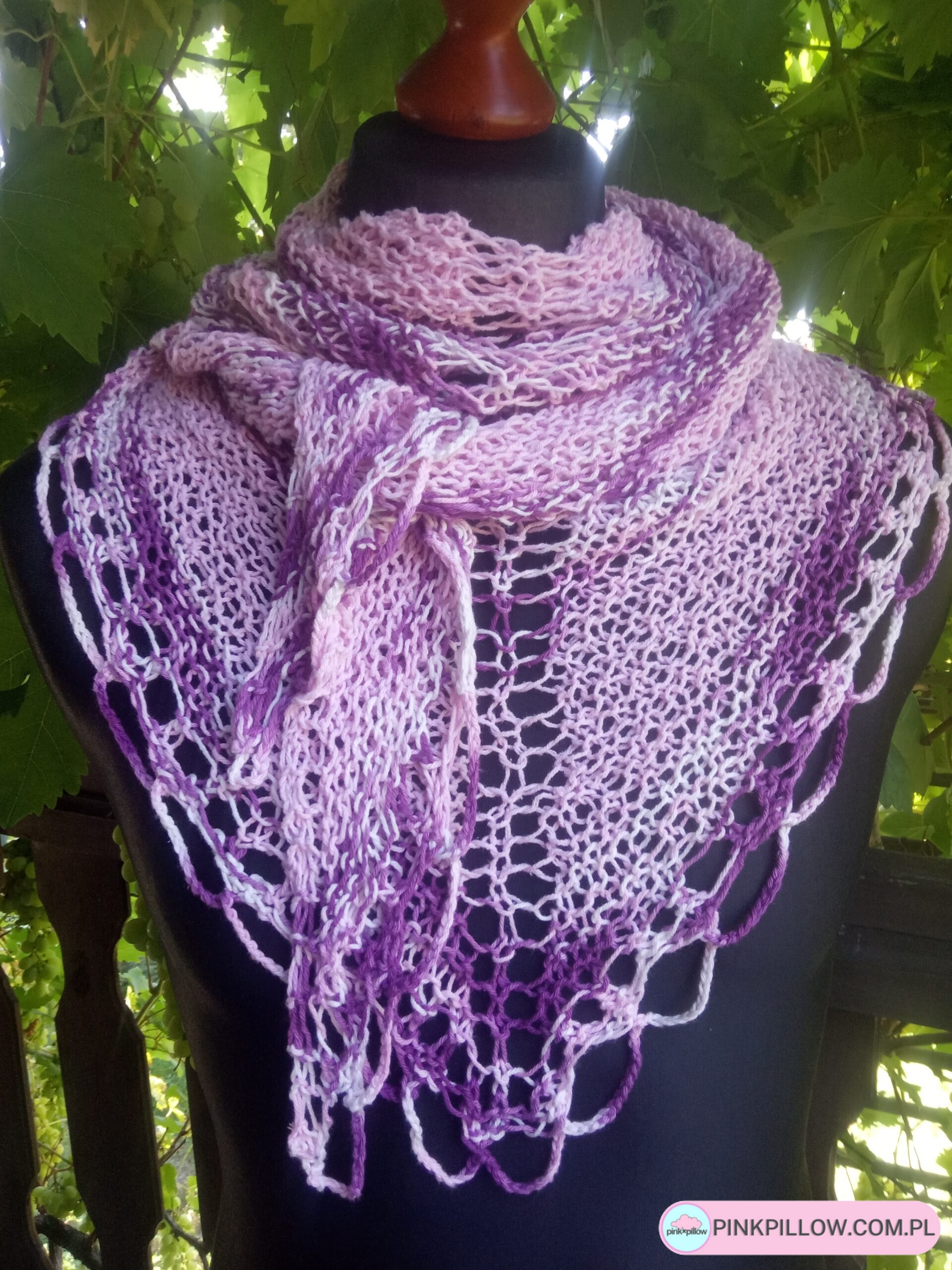 Chusta wiosenna robiona na drutach Róże i Fiolety