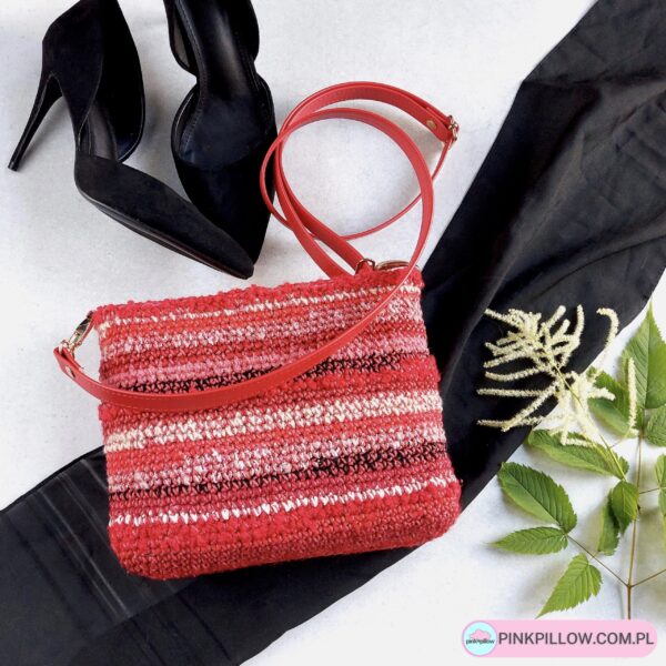 Czerwona Torebka wykonana szydełkiem z Fantazyjnej Włóczki