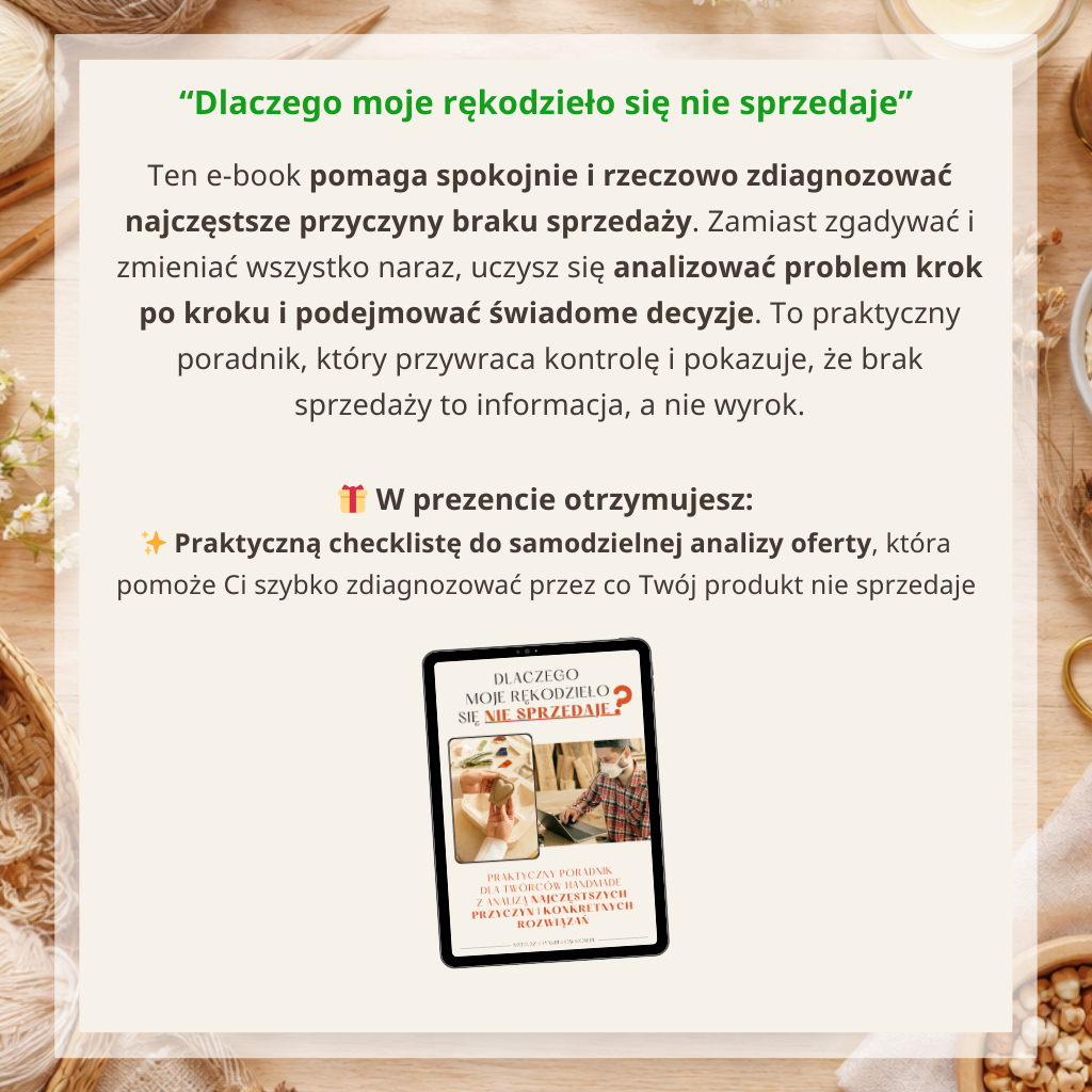 ✅ Jeśli chcesz wreszcie zrozumieć, co blokuje sprzedaż Twojego rękodzieła — ten Kurs E-book jest dla Ciebie.