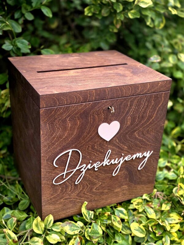 Wykonane z drewna, które wnosi ciepło i naturalny urok. Solidna konstrukcja i zamykane wieczko na kluczyk gwarantują, że wszystkie życzenia i upominki pozostaną bezpieczne przez całą uroczystość👍