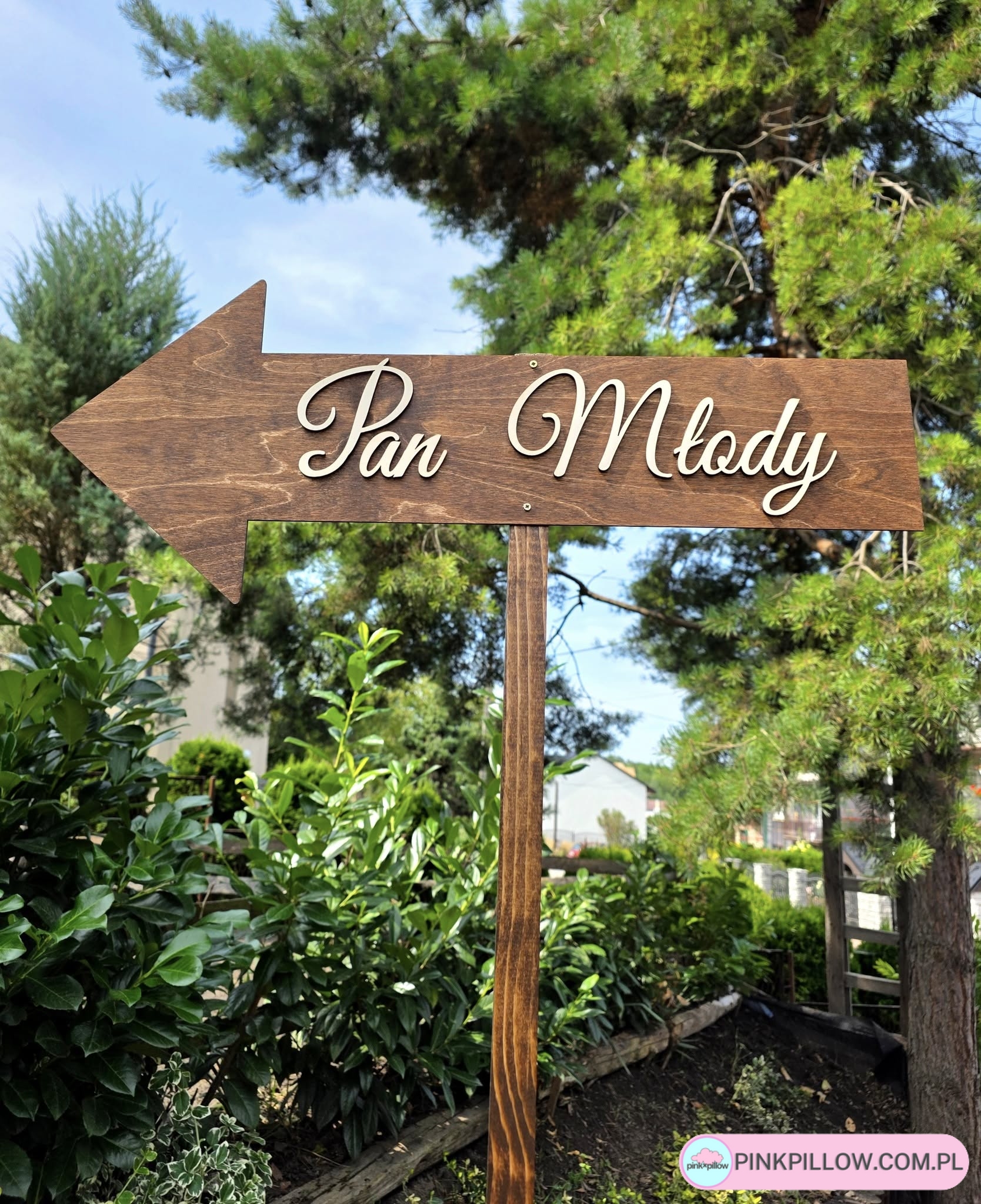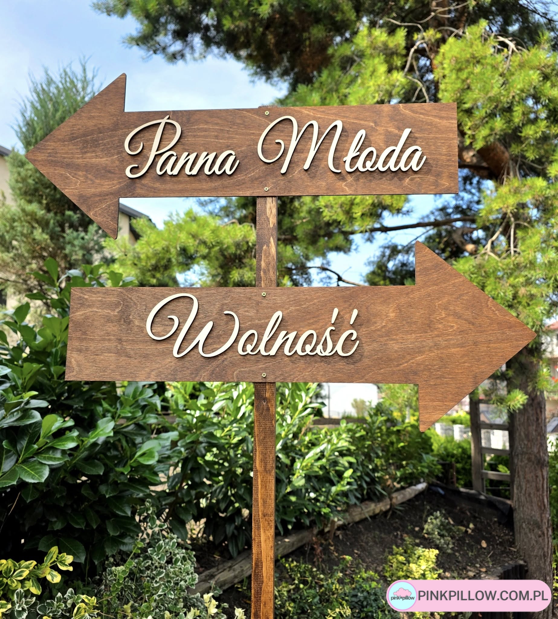 Drewniany drogowskaz strzałka na Wesele i Ślub