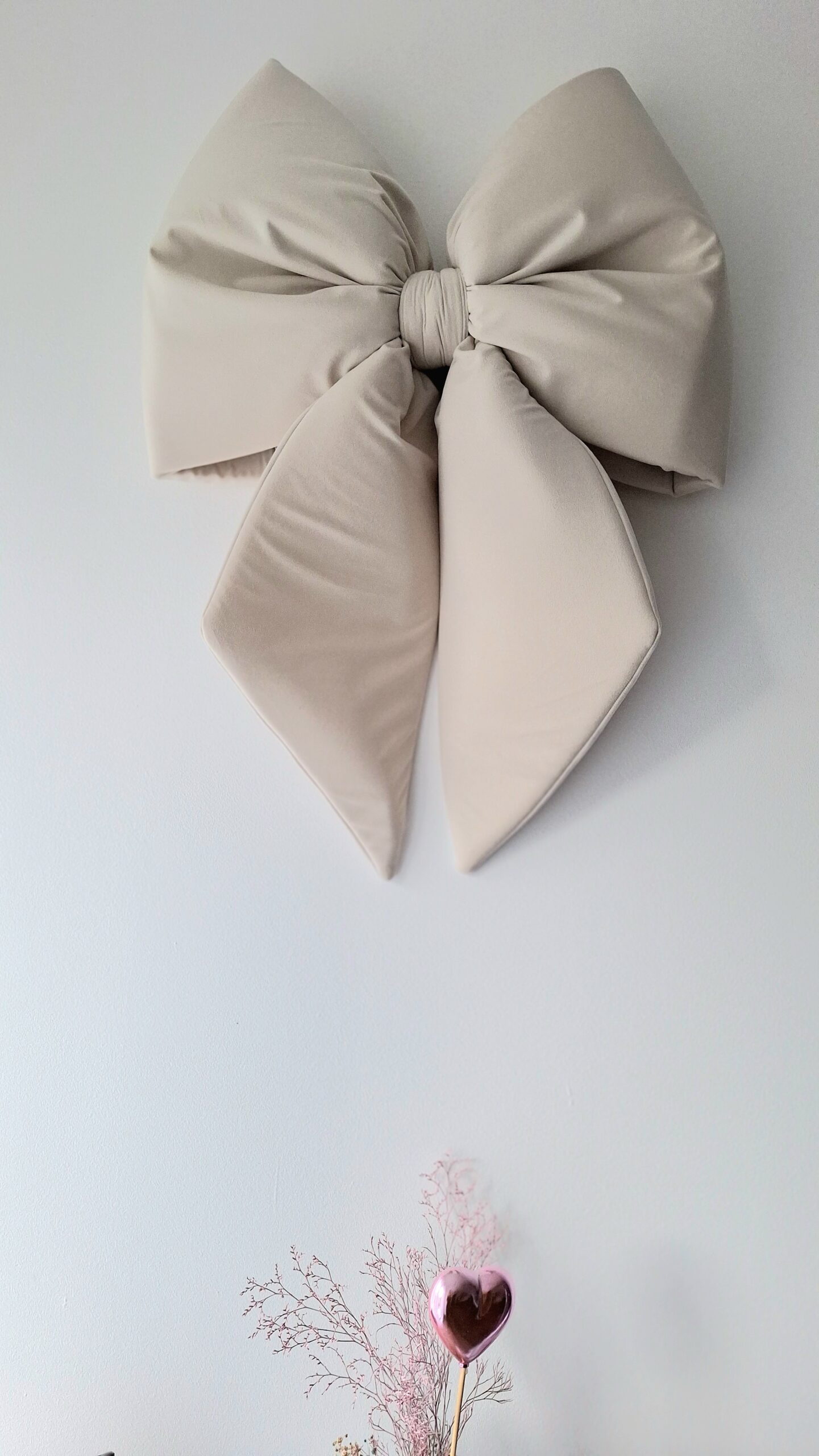 Elegancka, duża kokarda to wyjątkowa ozdoba, która doda uroku Twojemu wnętrzu. Możesz powiesić ją na drzwiach wejściowych, tworząc świąteczne powitanie, lub na ścianie nad łóżkiem czy łóżeczkiem, jako subtelną dekorację.