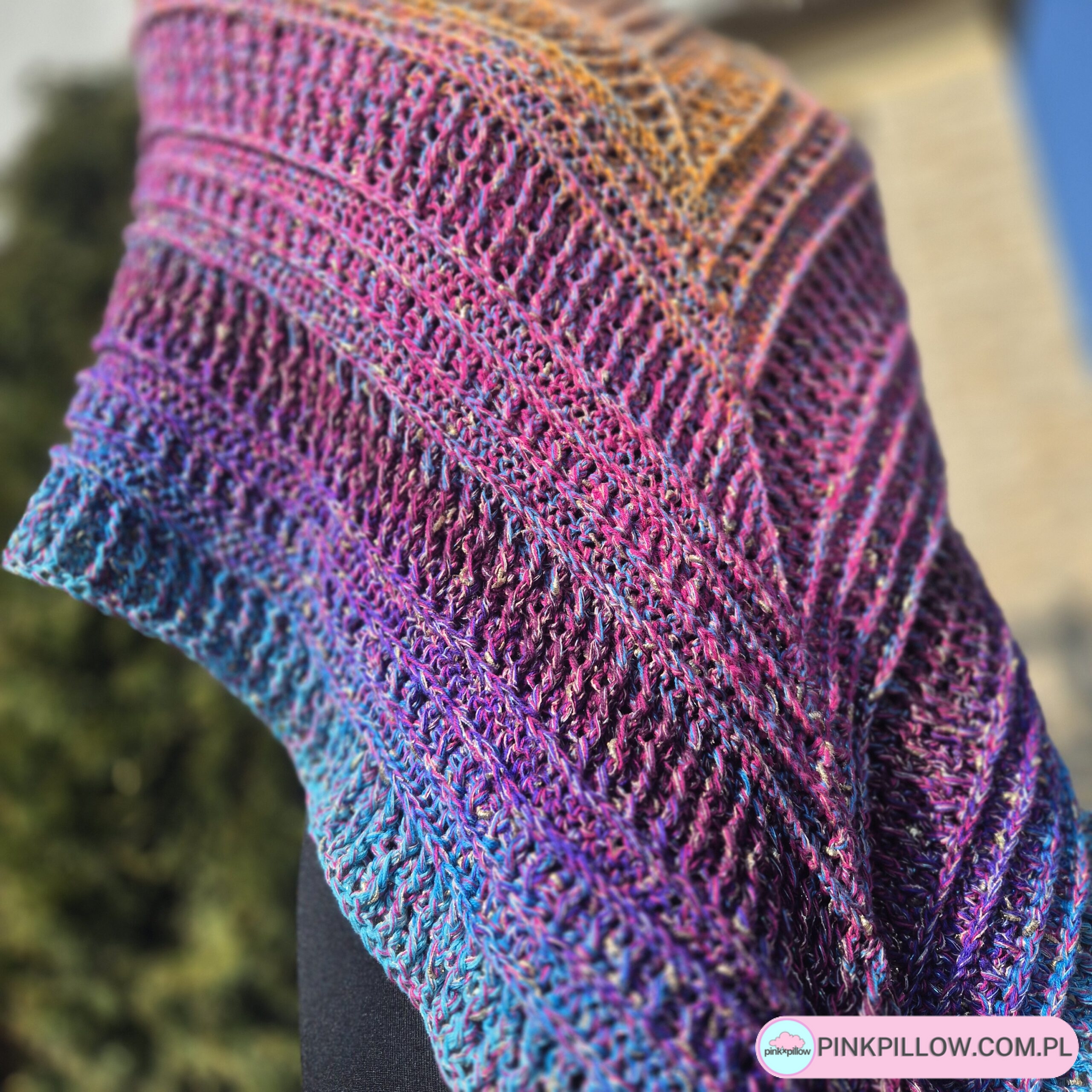 • Unikalna struktura wzoru Lynd (projekt @crochetunicornattack), oparta na reliefach, pięknie eksponuje światło i barwy