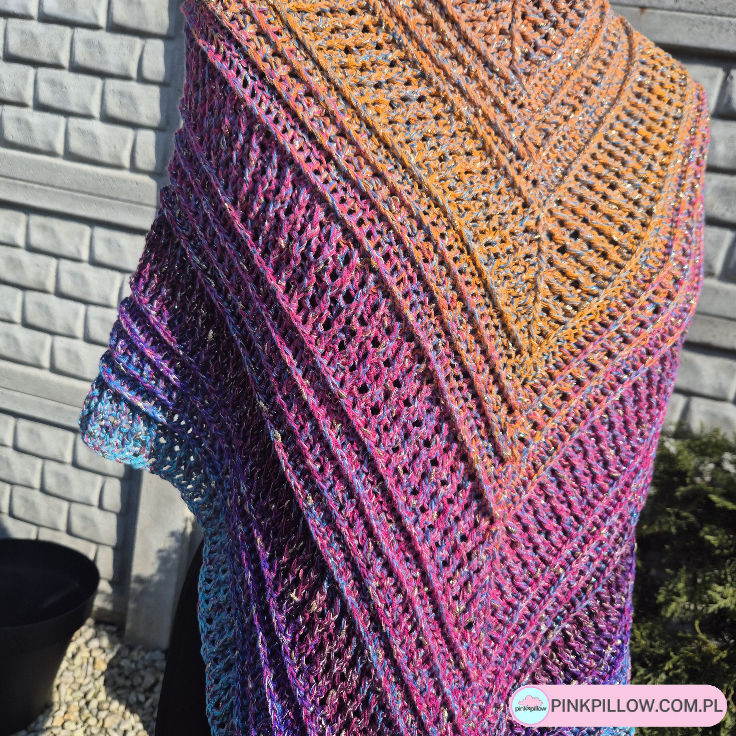 Przedstawiam wyjątkową chustę na ramiona wykonaną z kolorowego motka Fantasy, jest to prawdziwa gratka dla wszystkich miłośników kolorów i błysku!