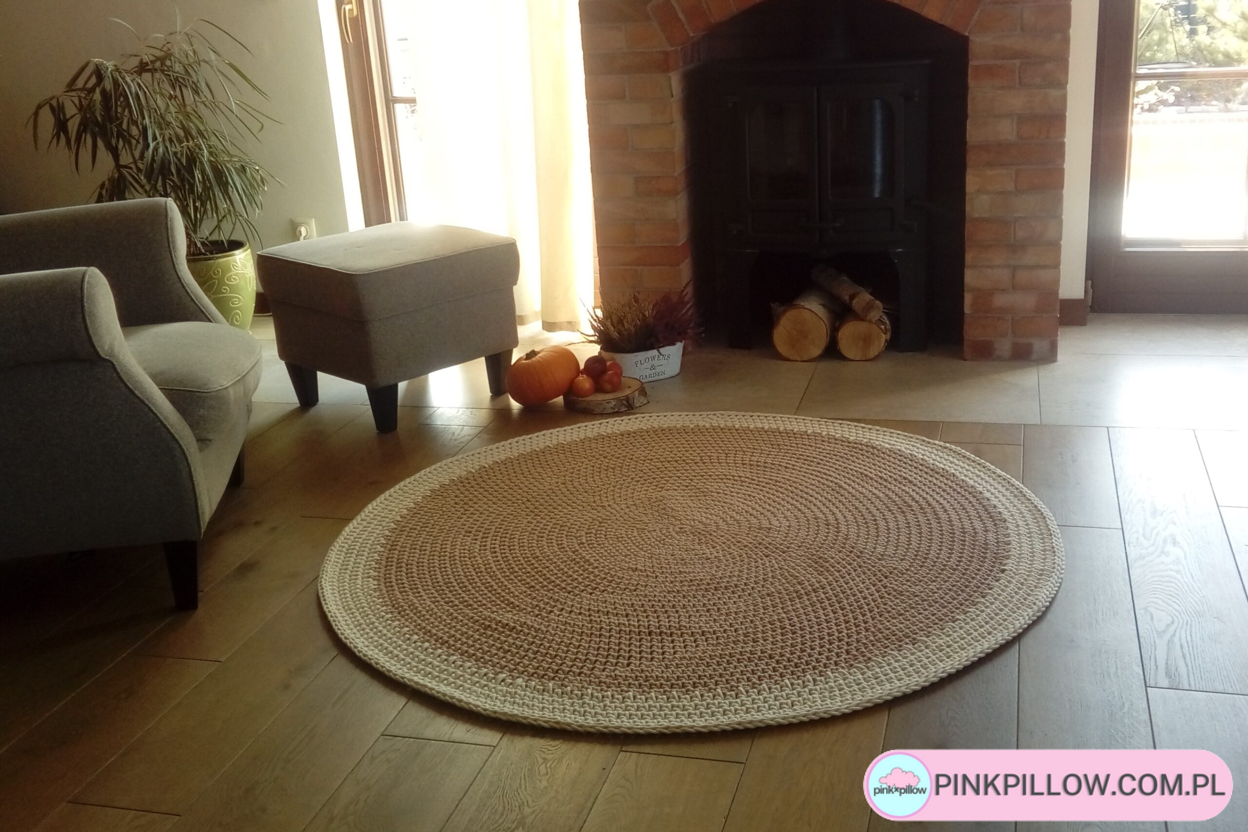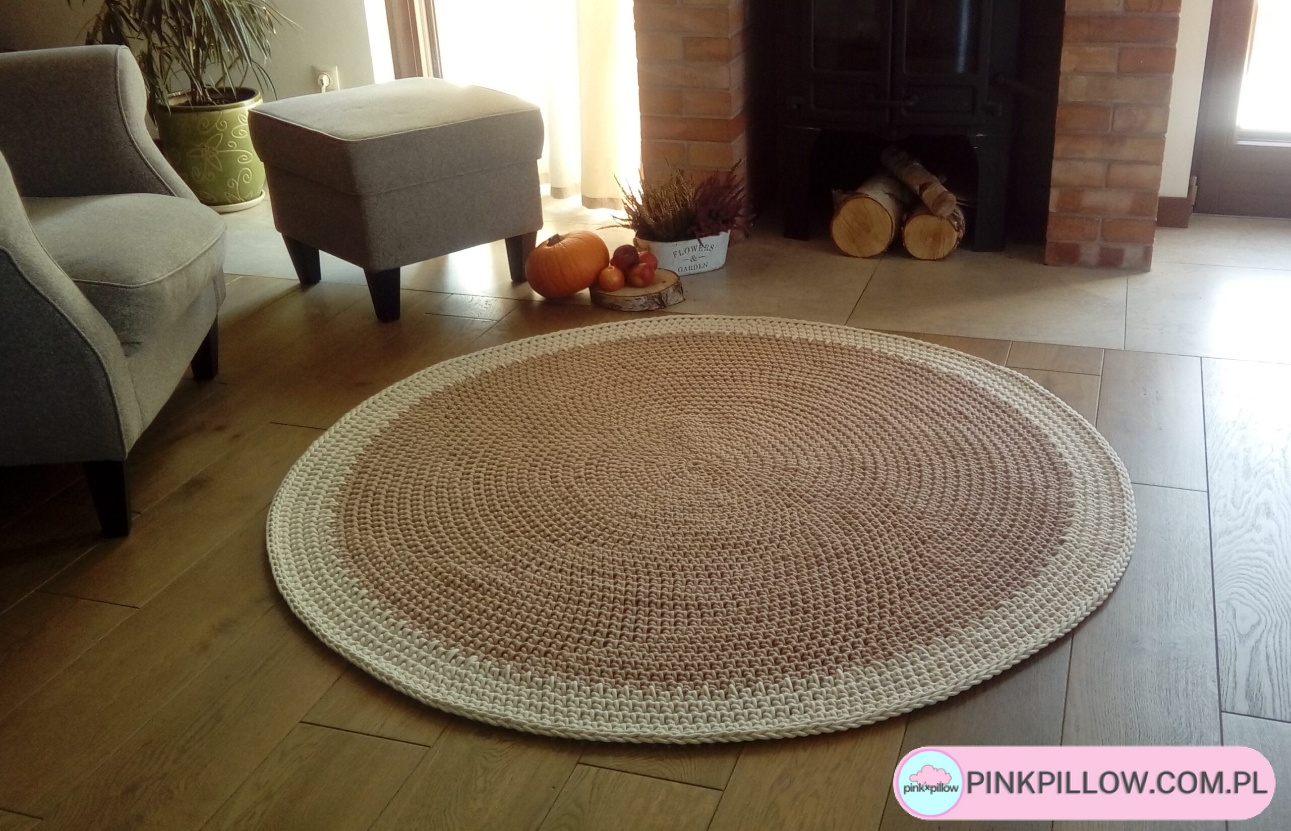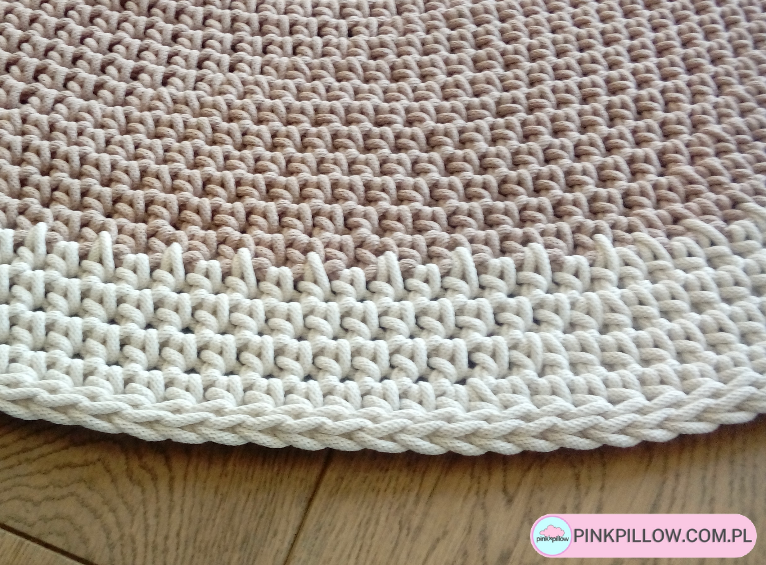 Dywan wykonany ręcznie gęstym splotem. Dywan jest dwustronny, dobrze przylega do podłogi. Ozdobi każde wnętrze, zarówno nowoczesne jak i tradycyjne. Zastosowany materiał – 5 mm sznurek w 100% bawełniany, bezpieczny również dla alergików. Łatwy w utrzymaniu w czystości, można prać w temp. 30 st.