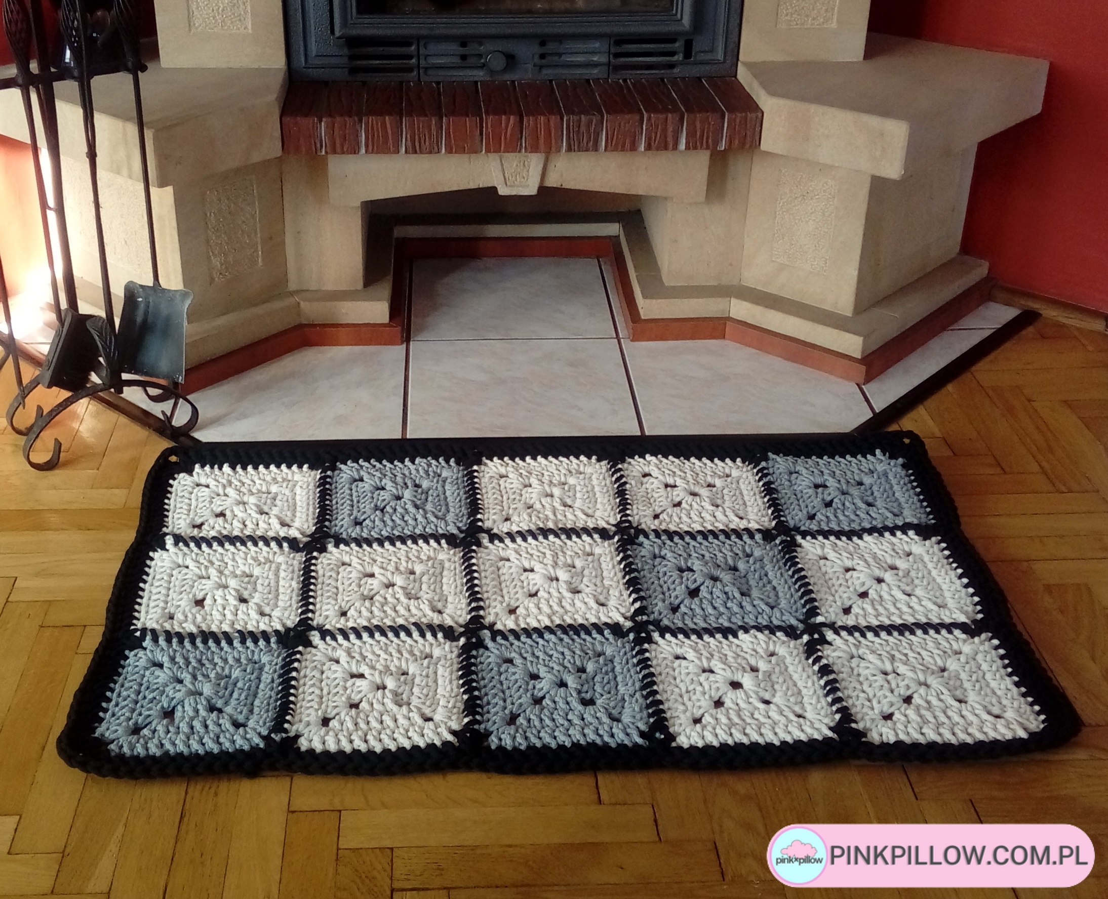 Oryginalna a jednocześnie praktyczna ozdoba mieszkania, nada mu wyjątkowego charakteru. Z powodzeniem może zostać użyty również jako ozdobny kilim na ścianę. Zastosowany materiał – 5 mm sznurek bawełniany bezpieczny dla alergików (na życzenie przedstawiam Certyfikat). Dywan wykonany solidnie i starannie.
