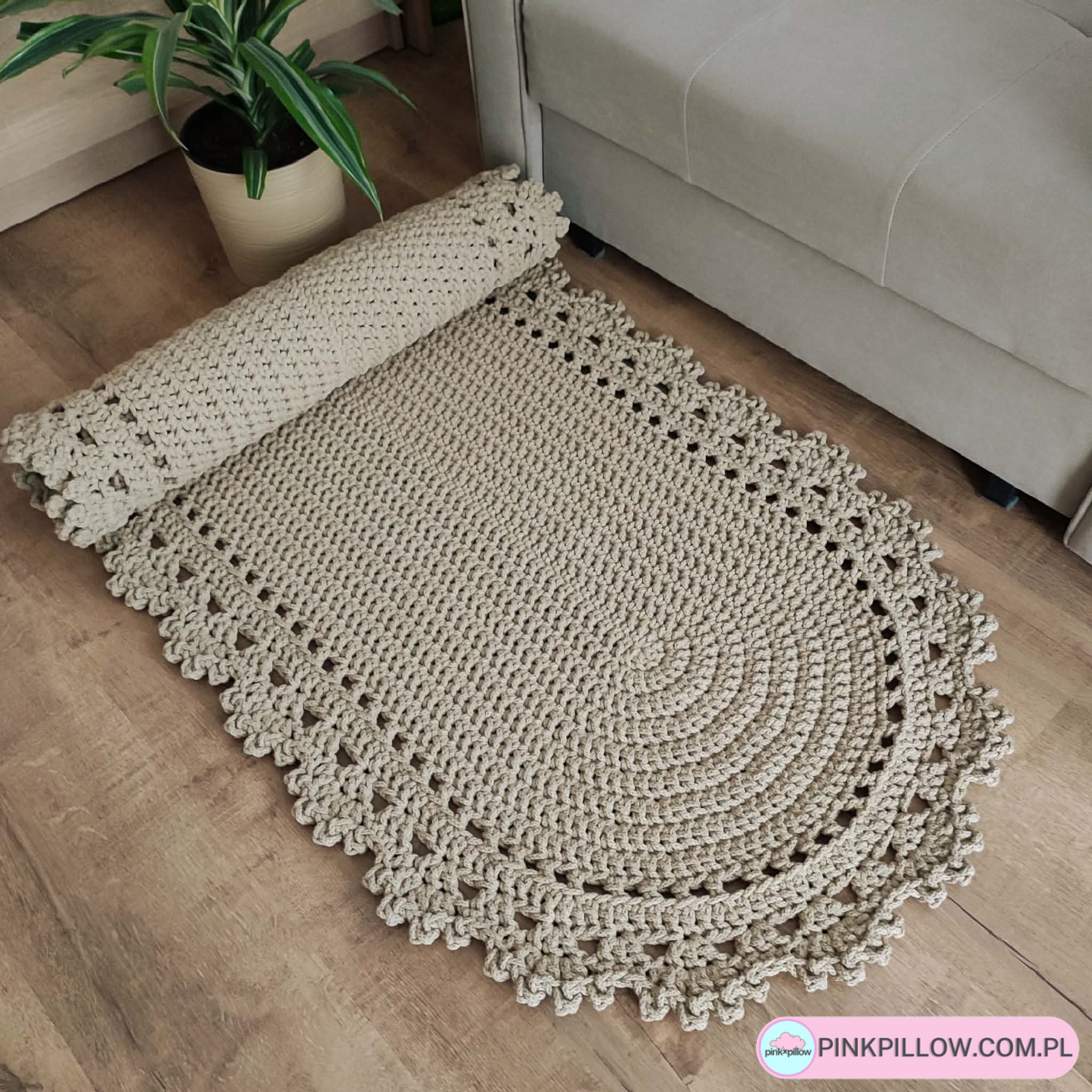 Dywan owalny ze sznurka szydełkowy – Wymiary 70×120 cm – Różne Kolory