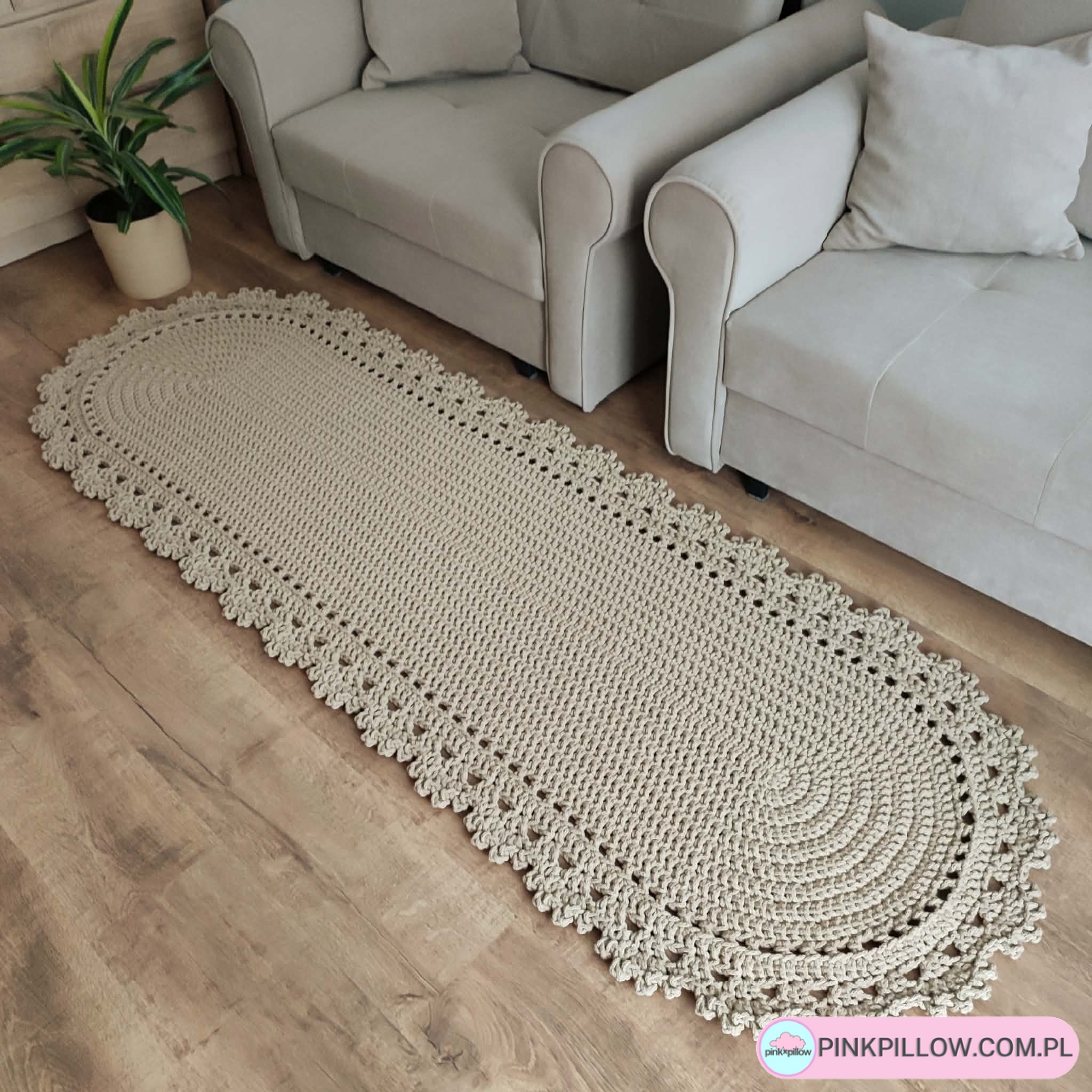Owalny Dywan ze sznurka na szydełku 75×140 cm – Różne Kolory