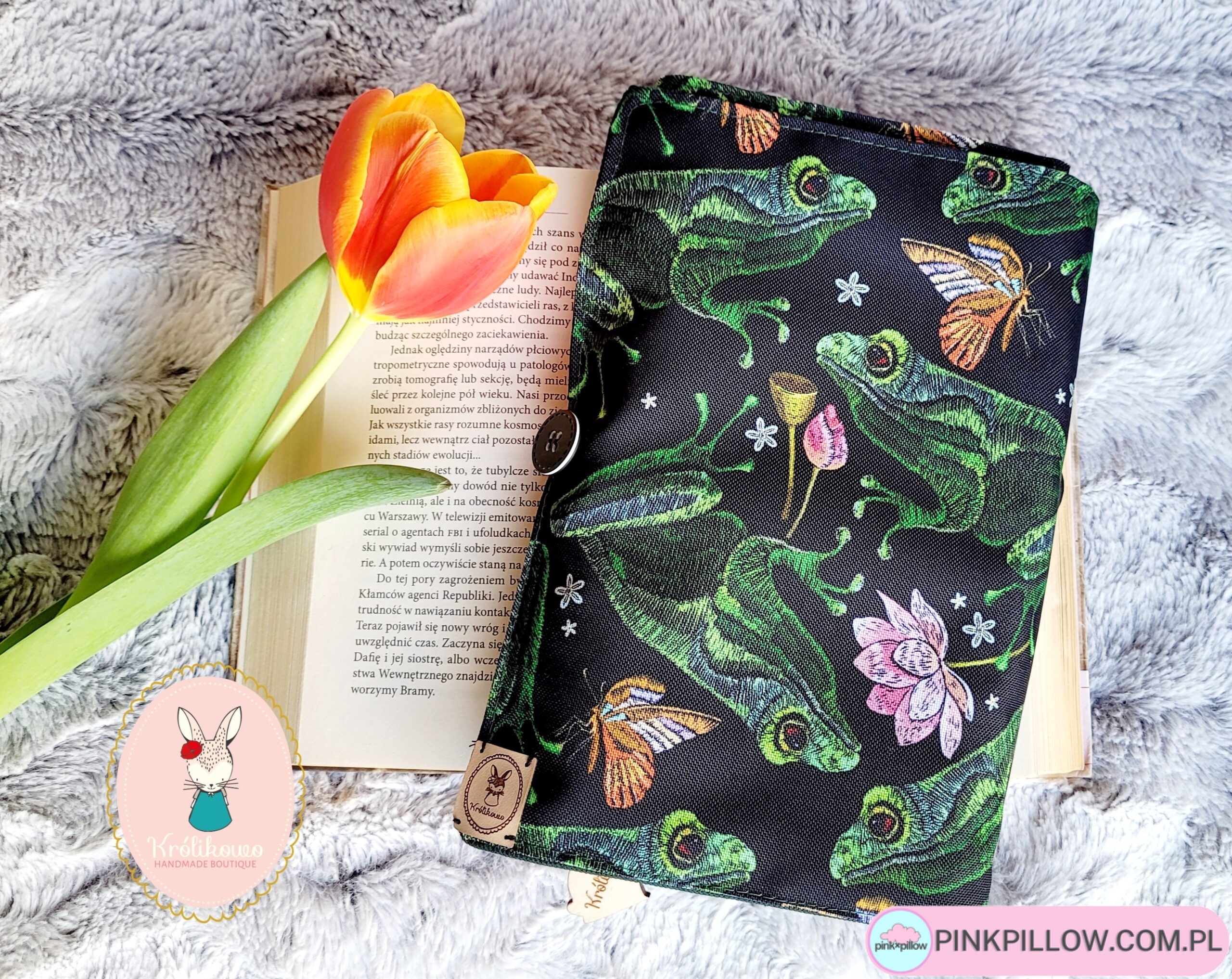 – zapięcie na gumkę, dzięki czemu książka się nie otwiera, a okładka dostosowuje się do grubości tomu;