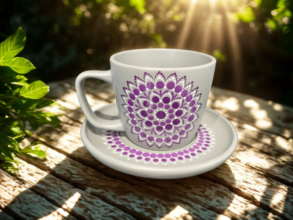 Filiżanka ozdobna z Podstawkiem w odcieniach Fioletu