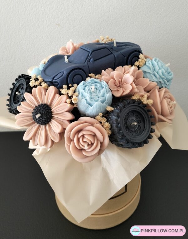 Flower Box dla Mężczyzny – Bukiet ze świec – Wzór AUTO