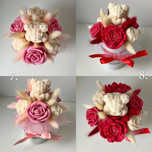Mini bukiet ze świec sojowych z misiem – Różne Zapachy