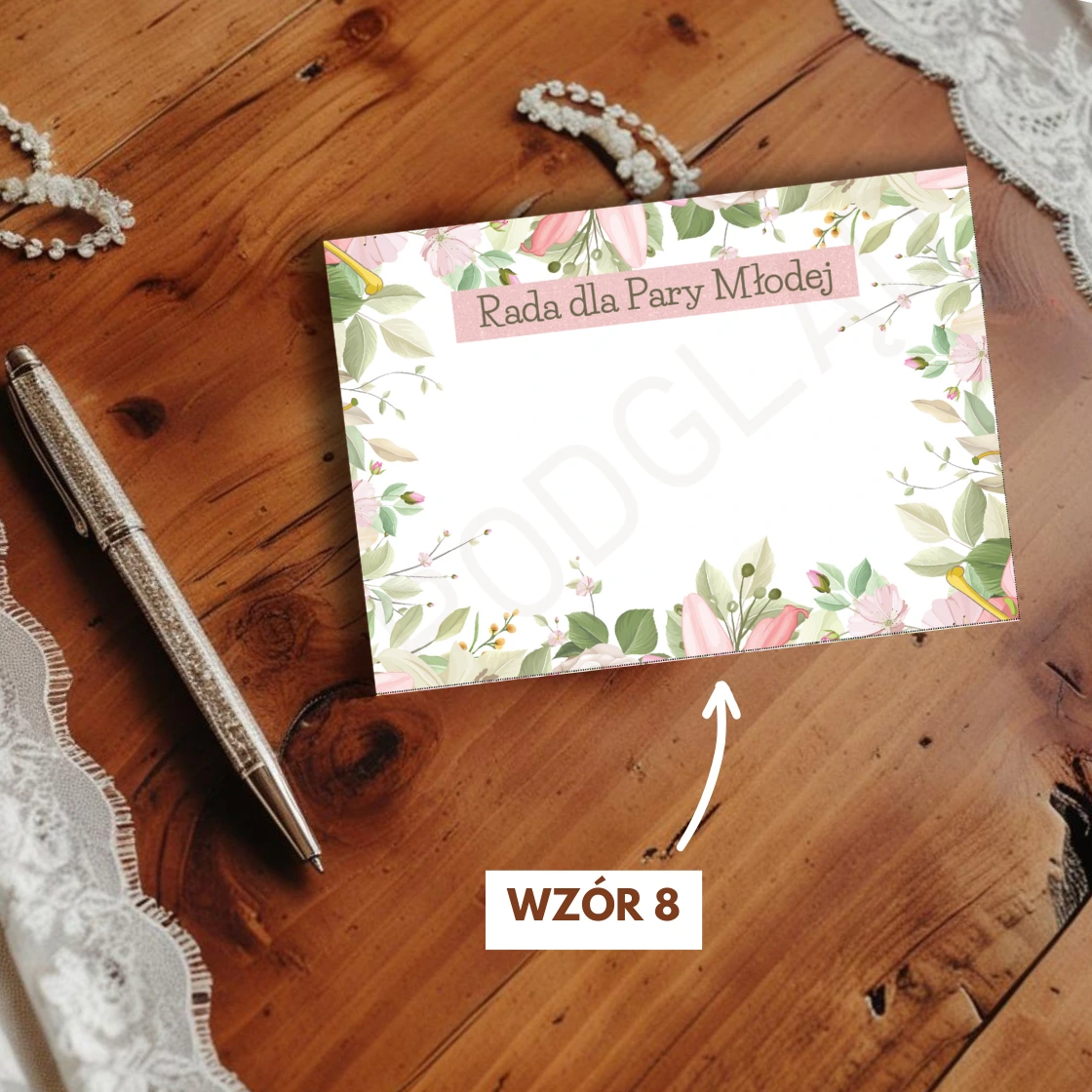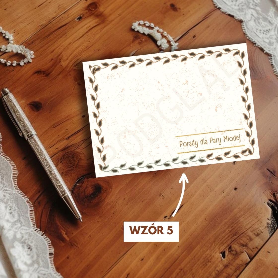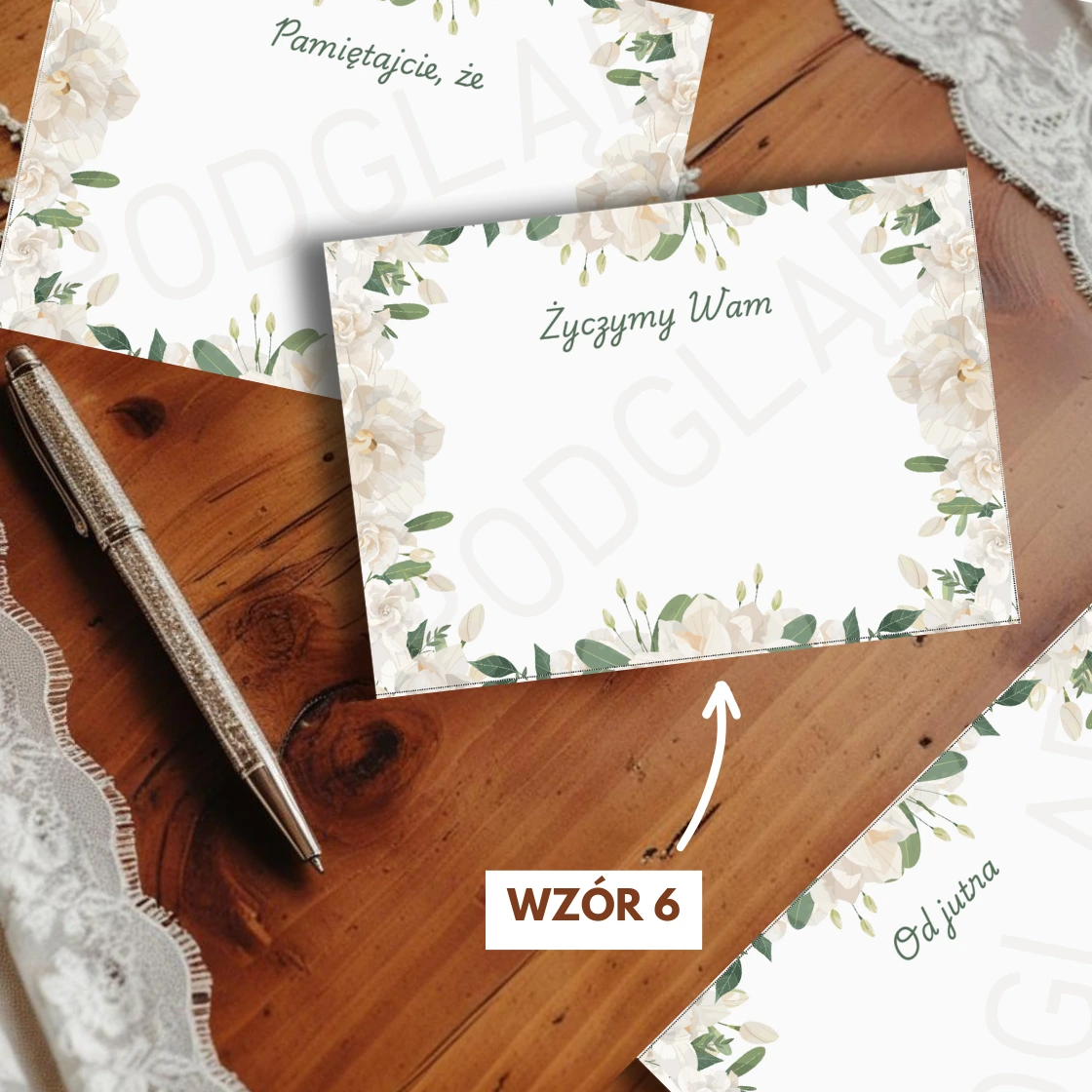 Wybierz wzór kartek z rozwijanej listy (możesz je podejrzeć w galerii). Po opłaceniu zamówienia dostaniesz od nas wiadomość e-mail z linkiem do pobrania wzoru kartki do druku.