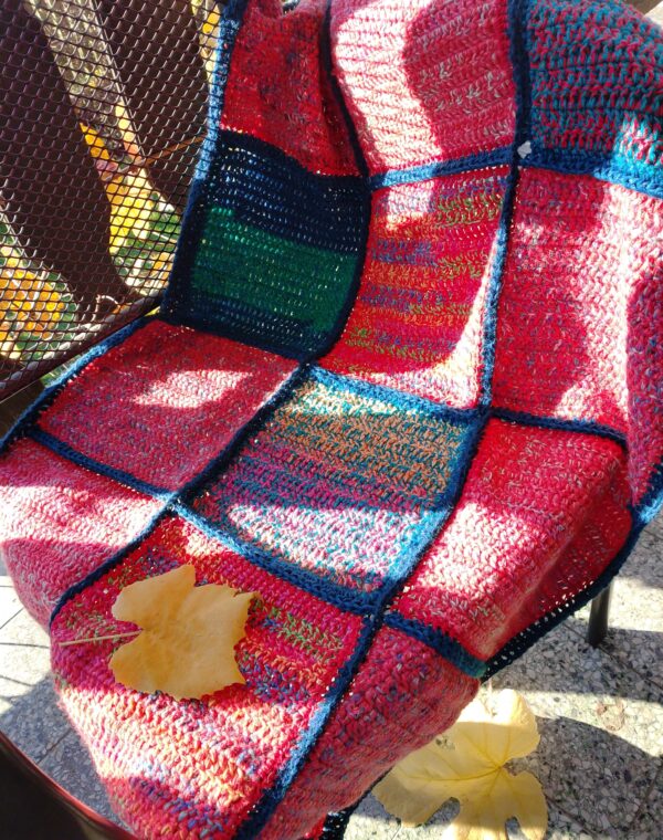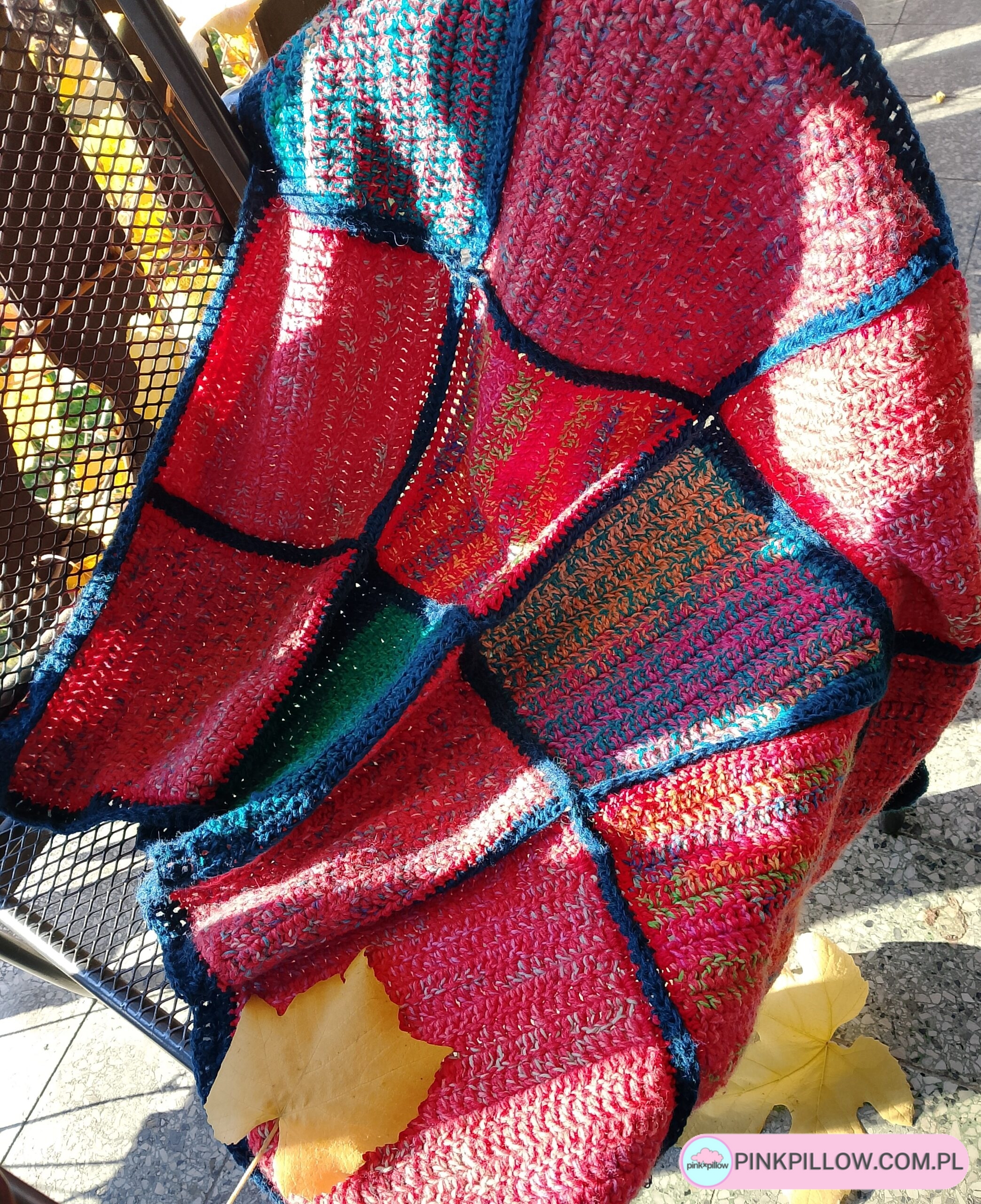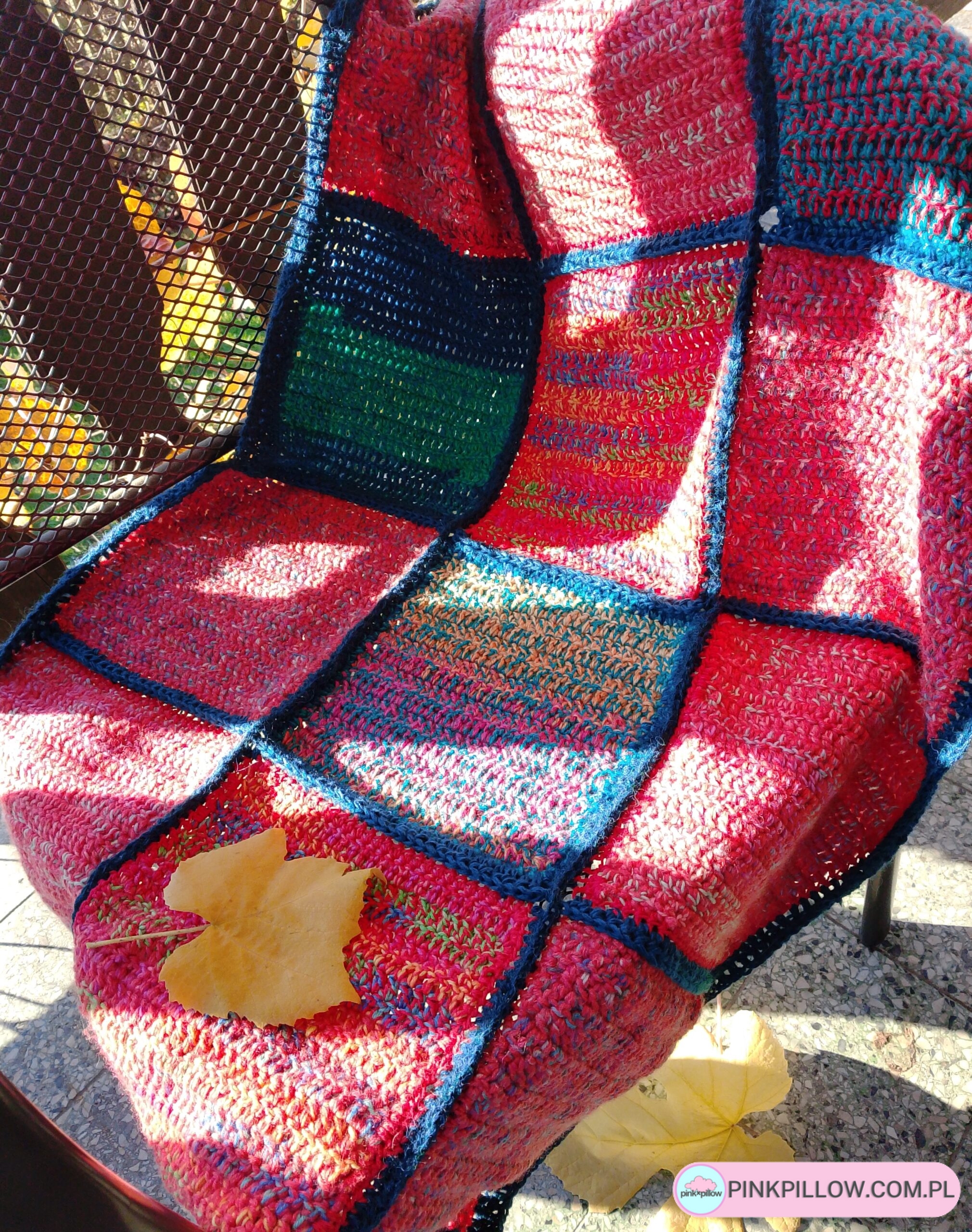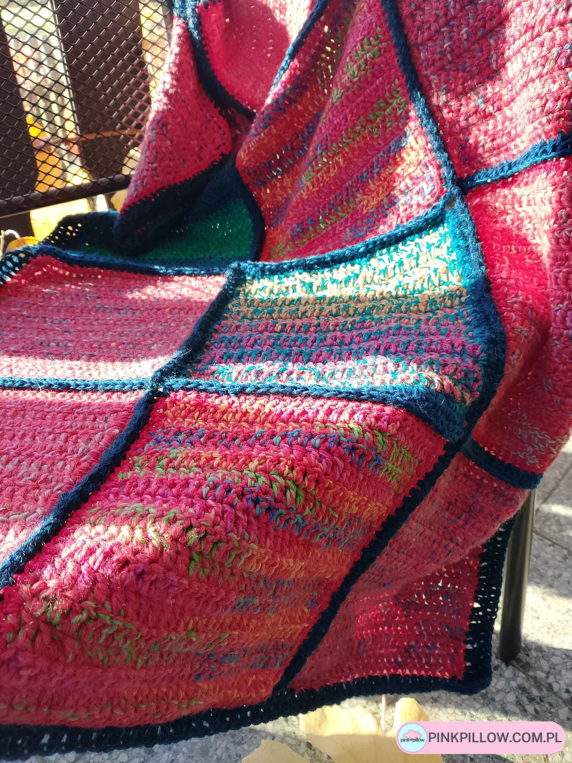 Kolorowy Kocyk z kolorowych Kwadratów w całości wykonany ręcznie. Wykonanie go wymagało wielu godzin pracy i cierpliwości, w efekcie czego powstała niepowtarzalna, wyjątkowa kompozycja. Kocyk powstał wyłącznie w jednym egzemplarzu.