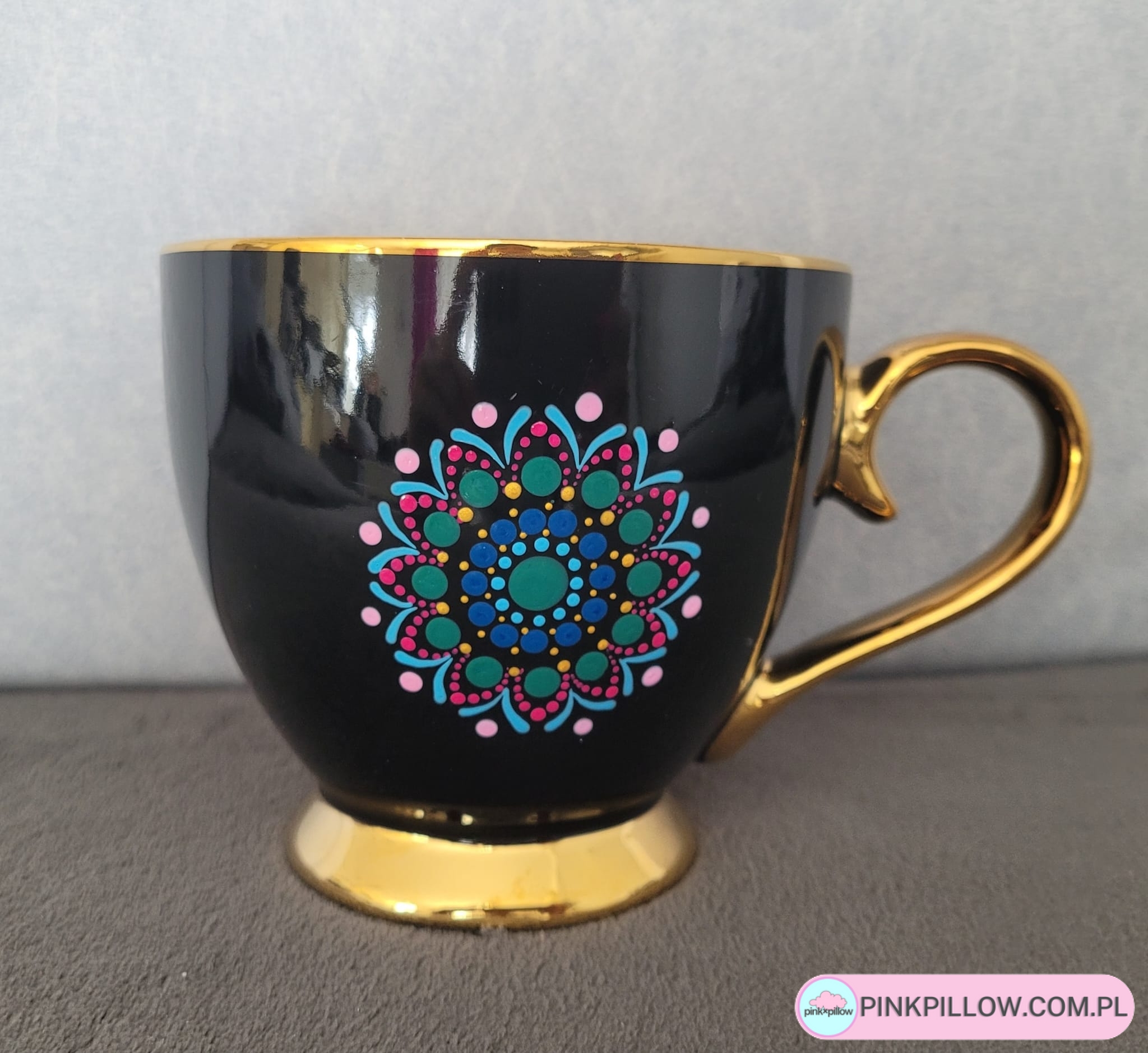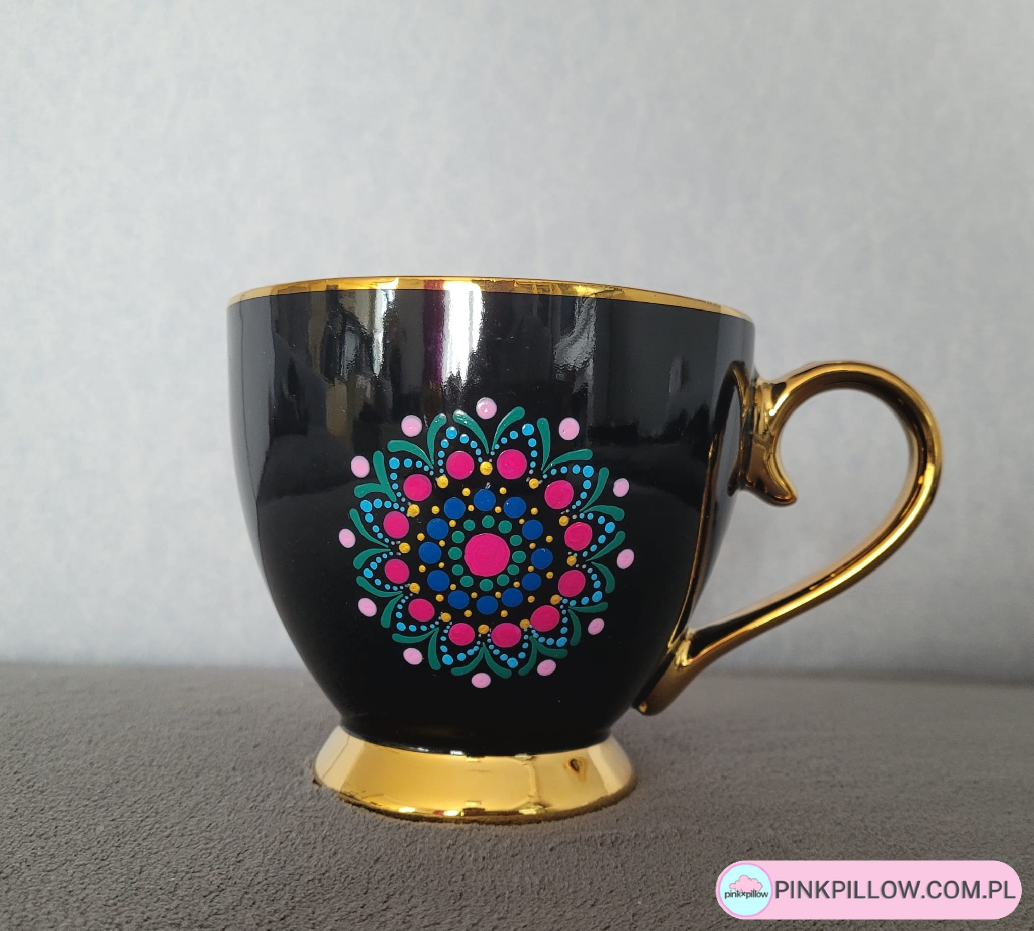 Kubek Handmade z Talerzykiem – Fuksjowa Mandala