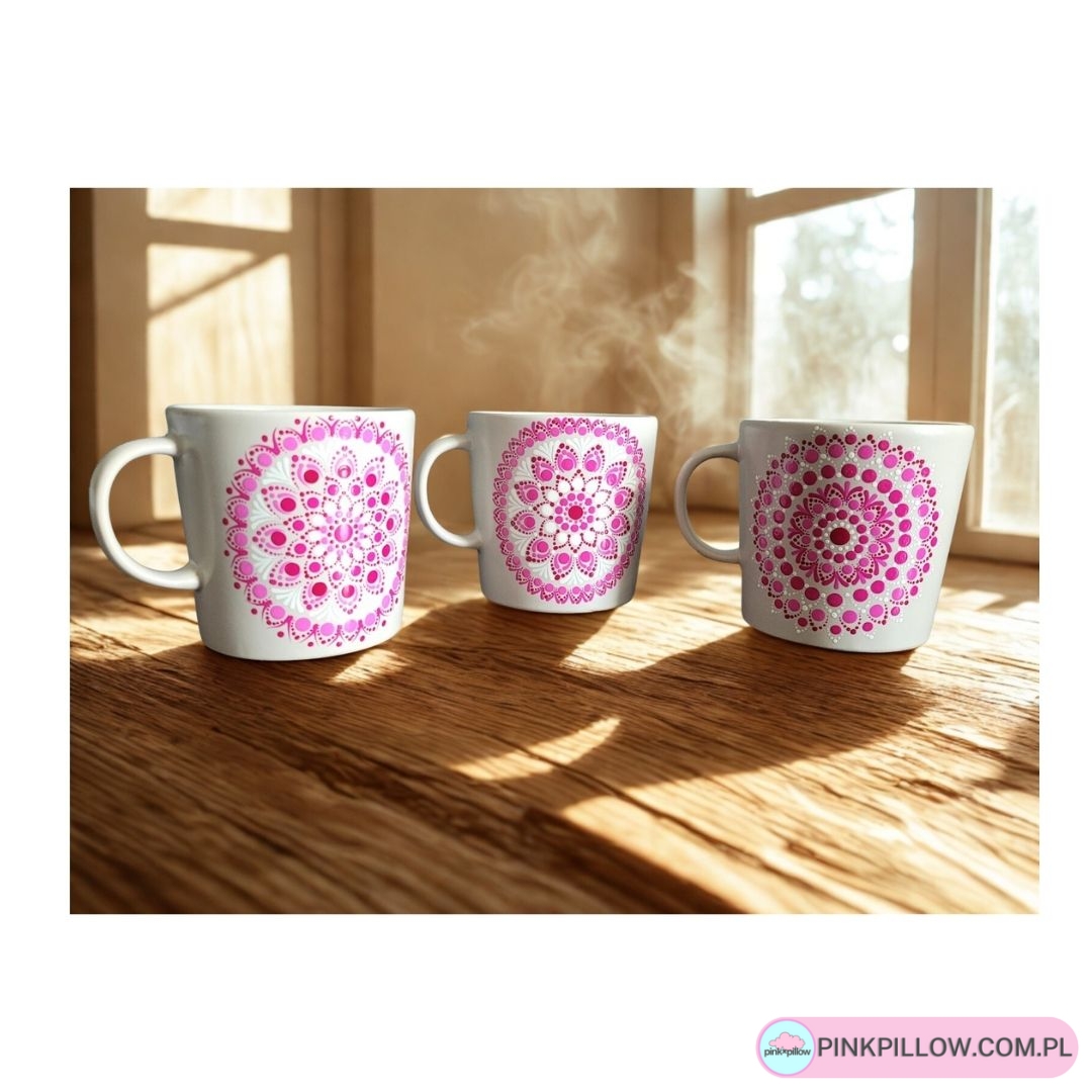 Kubek rękodzieło z Mandalą w kolorze Fuksji 300 ml