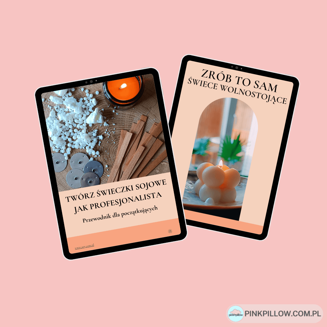 Ten pakiet dwóch praktycznych e-booków pomoże Ci zbudować solidne podstawy do produkcji świec sojowych.