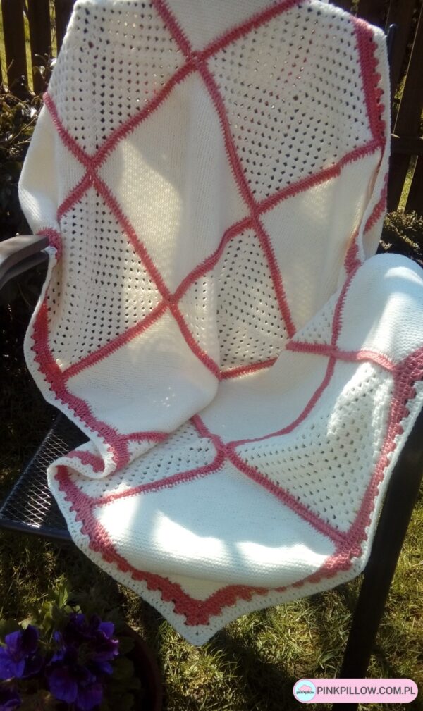 Mały Koc na drutach w Kwadraty – Wymiary 57×70 cm