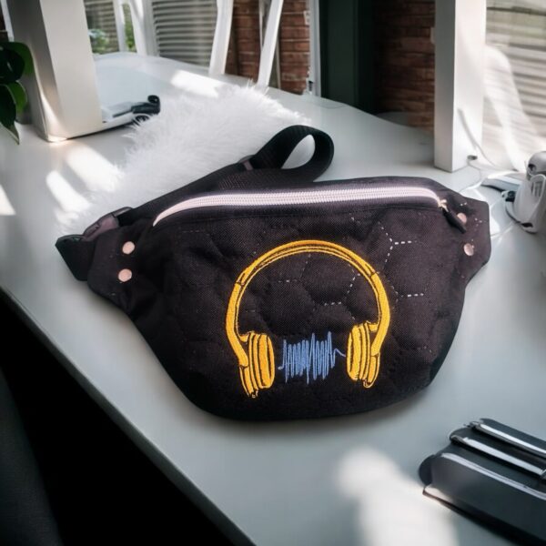 Ręcznie uszyta nerka dla mężczyzn, która łączy funkcjonalność i oryginalny wygląd. Uszyta z wodoodpornego materiału, doskonale sprawdzi się w codziennym użytkowaniu a deszcz czy woda nie będzie zagrożeniem dla zawartości nerki. Przód zdobi efektowny haft maszynowy przedstawiający Słuchawki – detal, który przyciąga uwagę i nadaje charakteru.