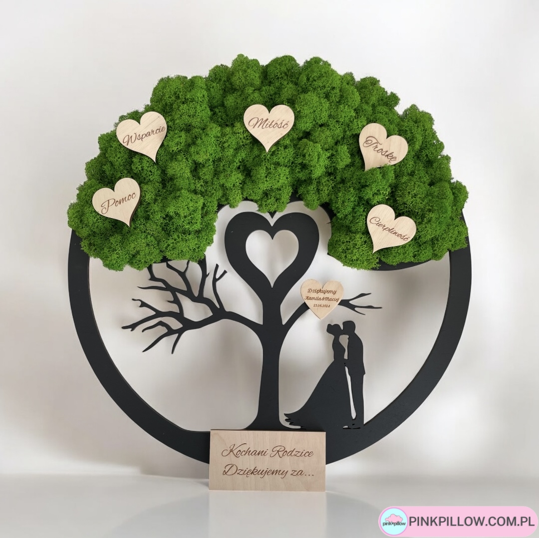 Przy zakupie proszę o podanie w okienku Dodatkowe informacje koloru mchu i tekstu jaki ma się znaleźć na ramce.