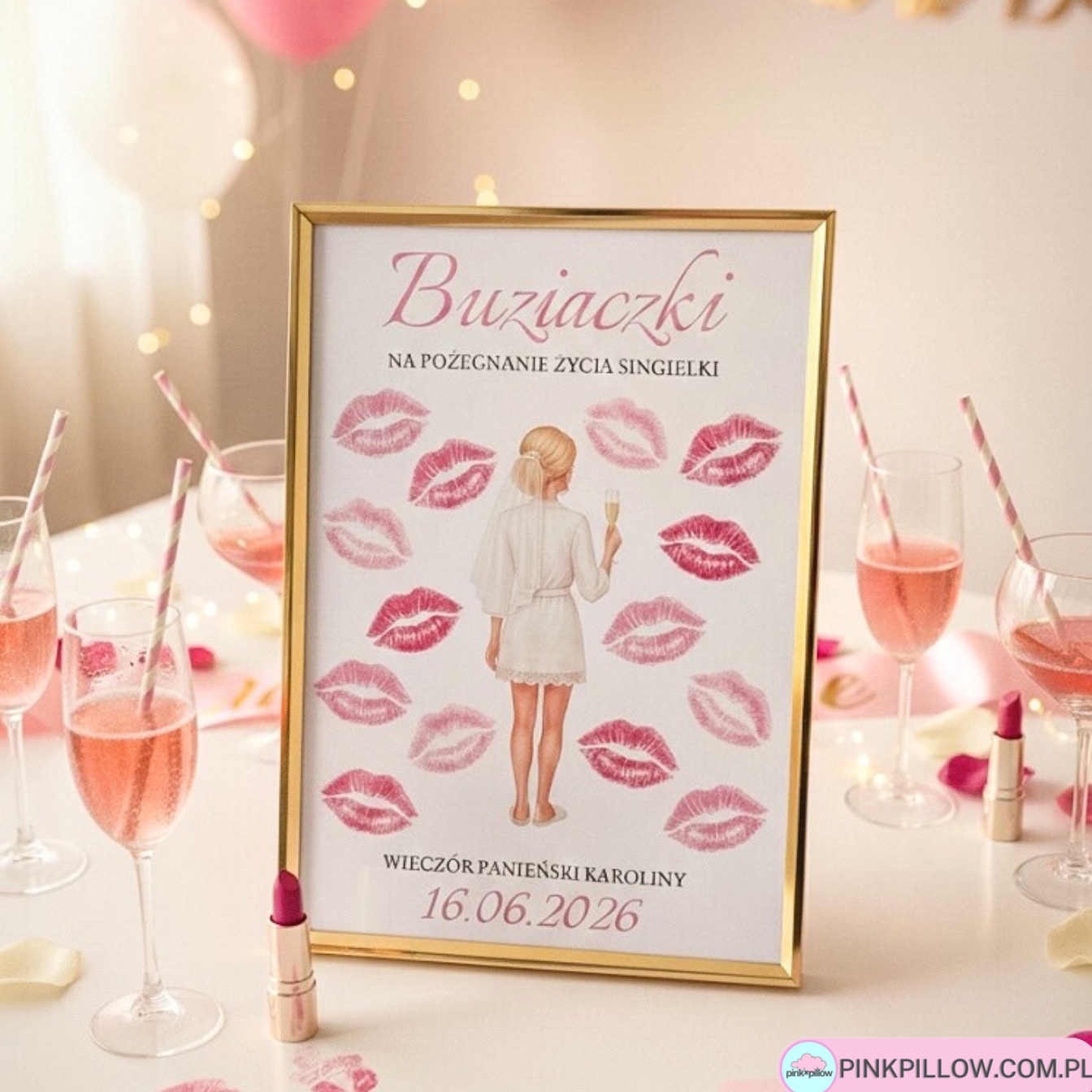 Personalizowany Plakat na wieczór panieński w ramce „Buziaczki”