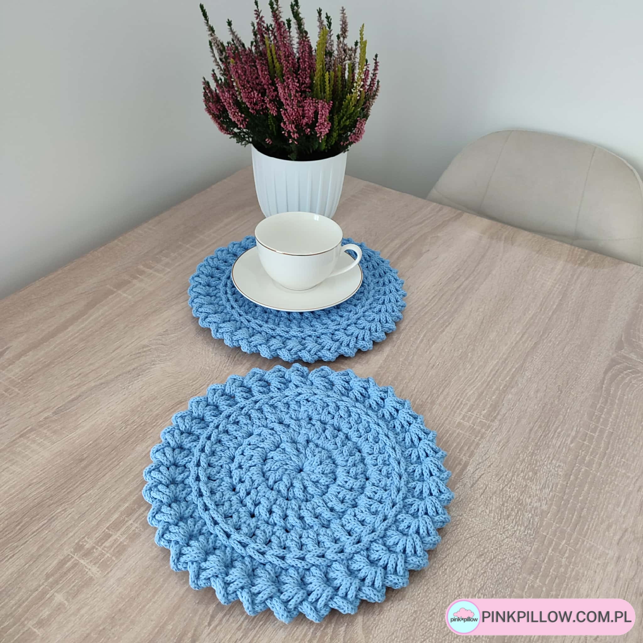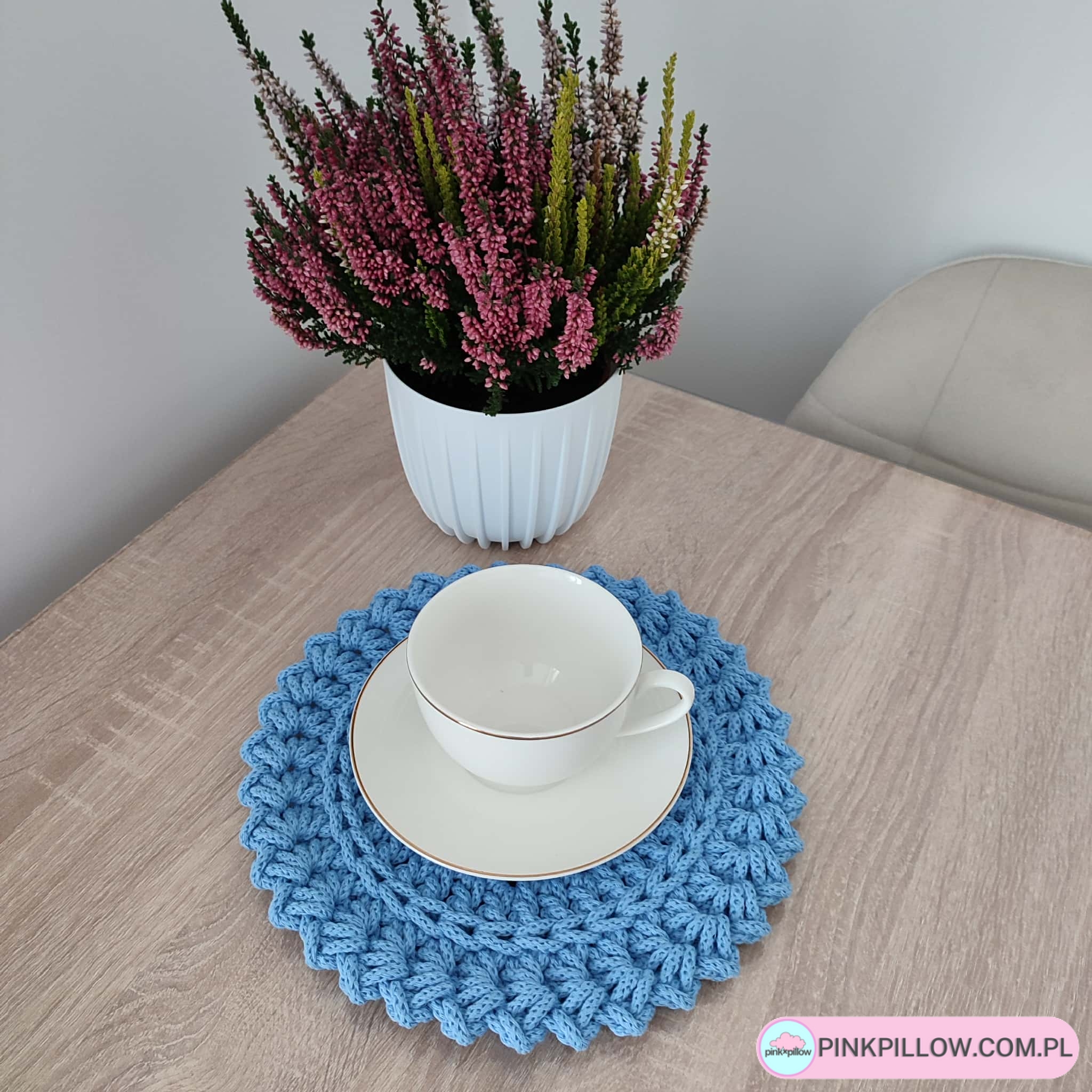 Podkładka szydełkowa pod kubki ze sznurka 27 cm – Różne Kolory