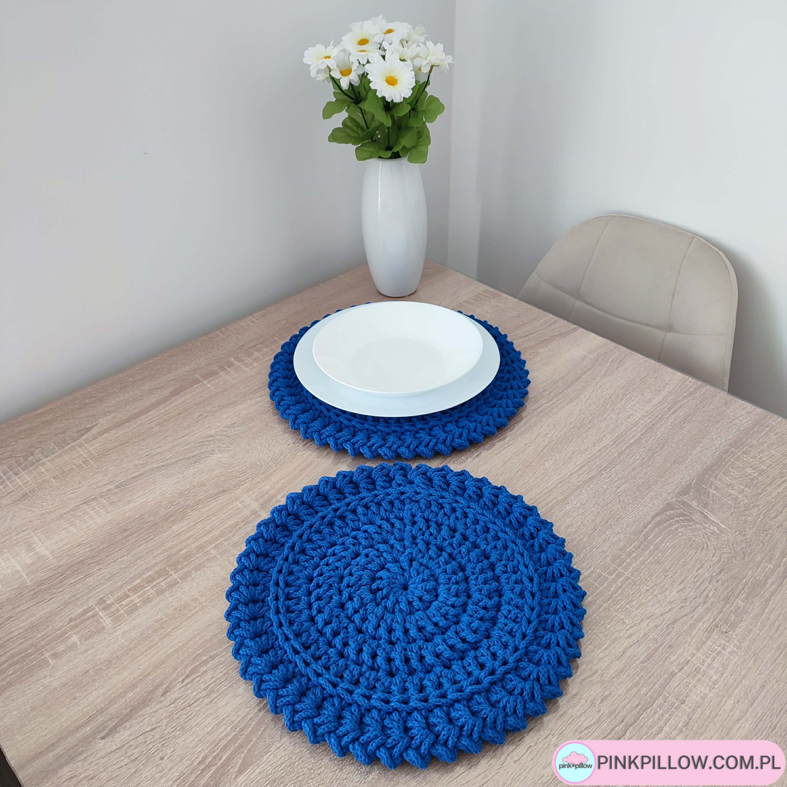 Podkładka o średnicy 32cm, wykonana metodą szydełkowania z polskiego sznurka bawełnianego 5mm.