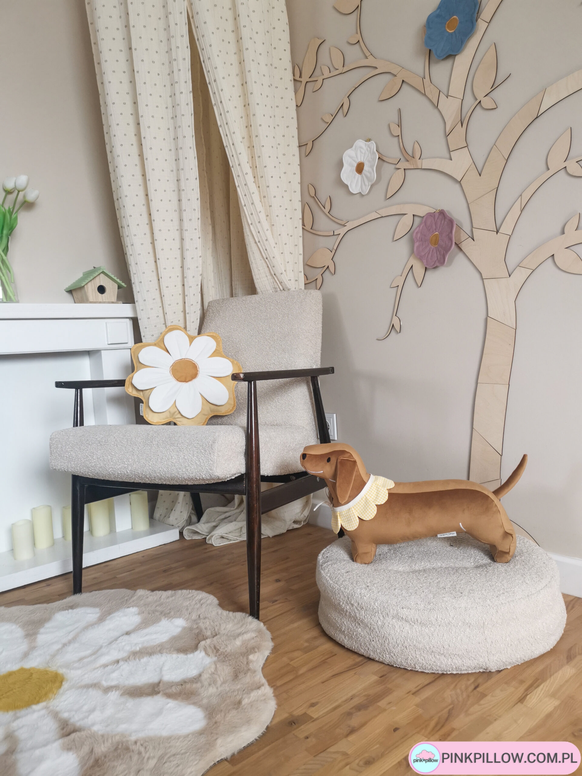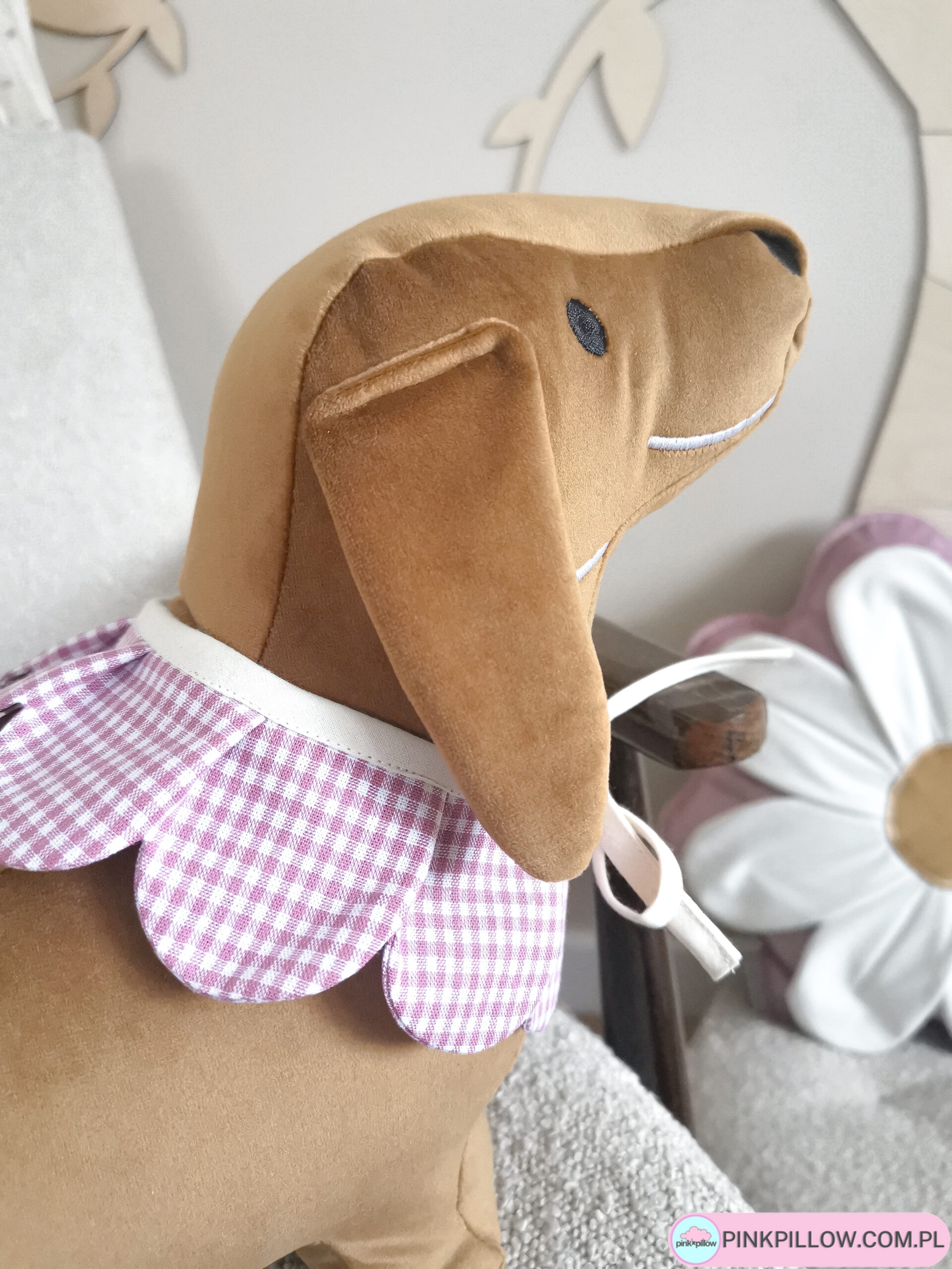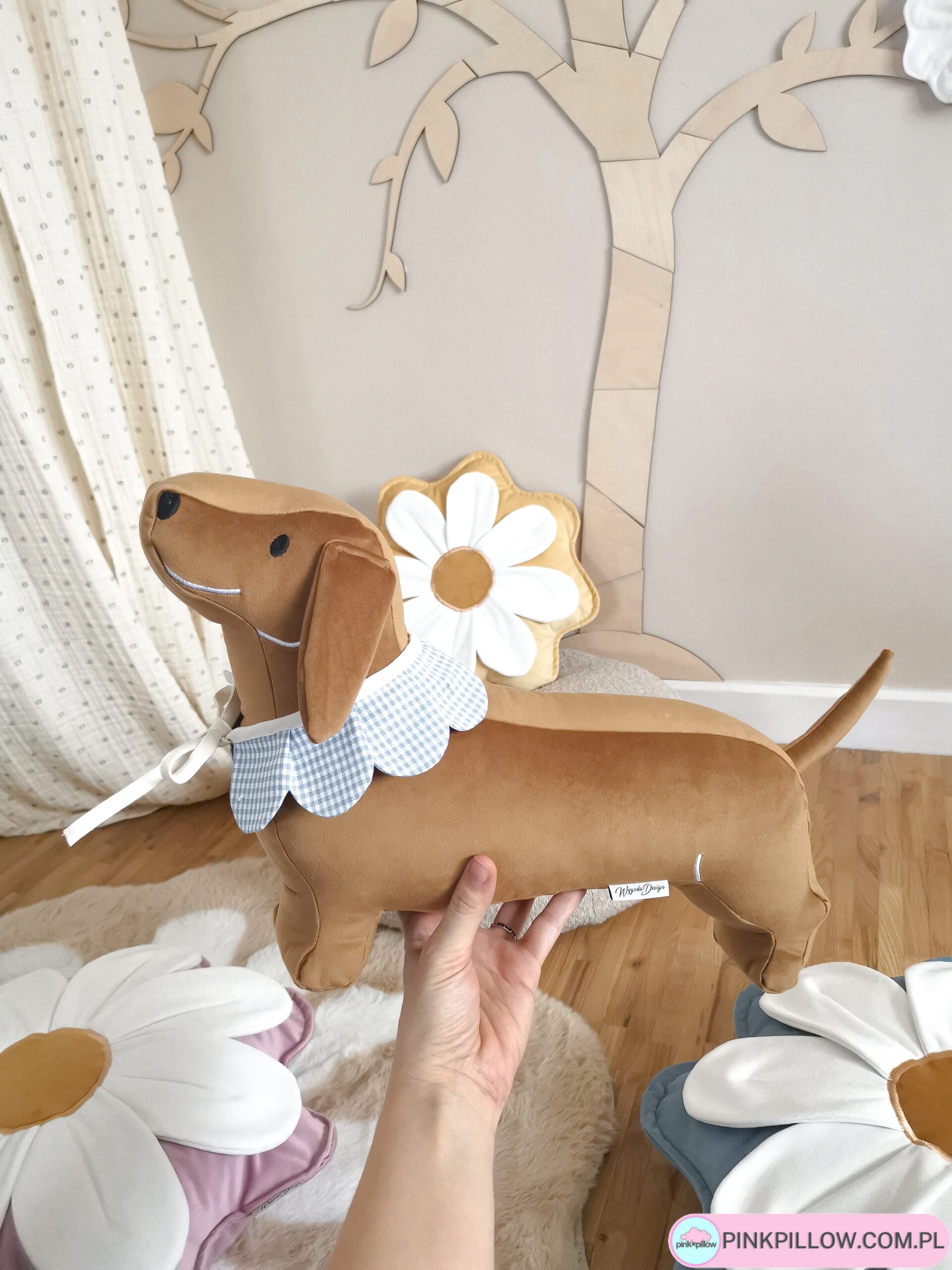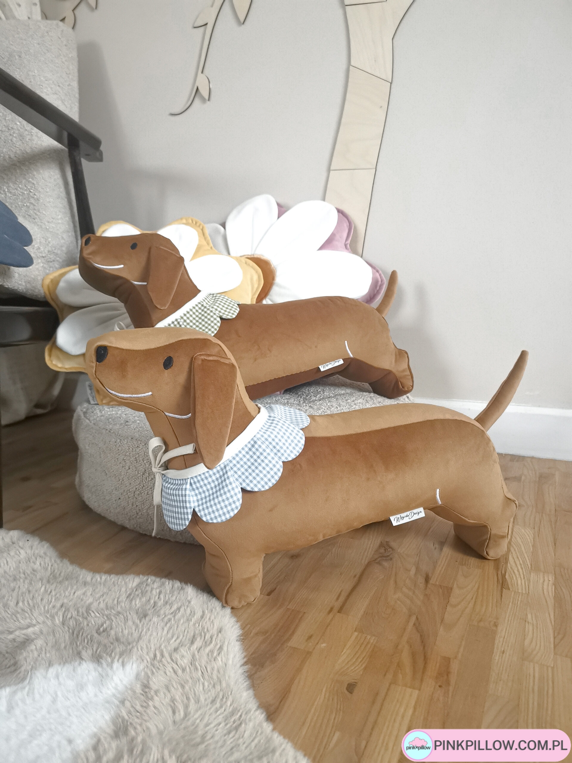 Ręcznie wykonana poduszka dekoracyjna w kształcie jamnika to wyjątkowy dodatek do pokoju dziecka, salonu lub sypialni. Uszyta z wysokiej jakości velvetu, zachwyca miękkością i estetyką wykonania.