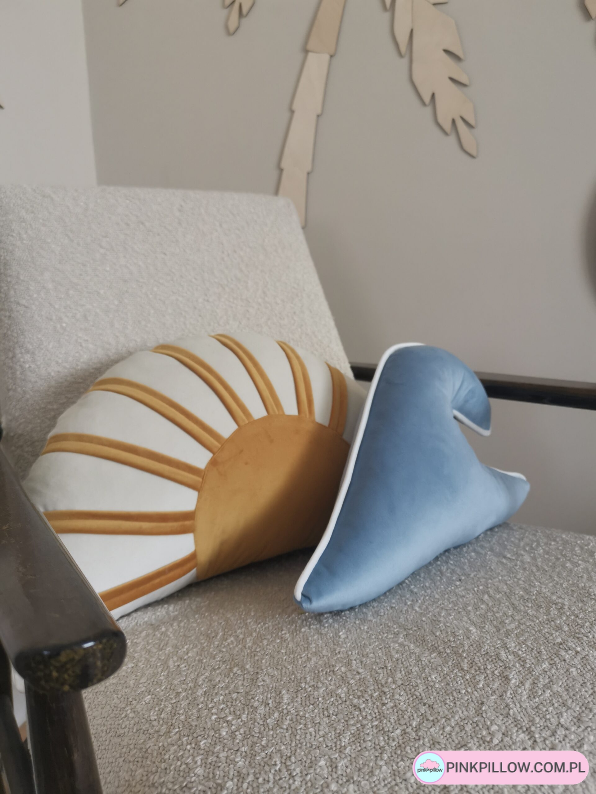 Stwórz kompozycje poduszek z dostępnych wzorów! Poduszka idealnie komponuje się z poduszkami w kształcie fali z tej samej kolekcji, poduszką Słońce oraz poduszkami w kształcie deski surfingowej. Wszystkie produkty uszyte z wysokiej jakości tkanin, odpornych na zabrudzenia.
