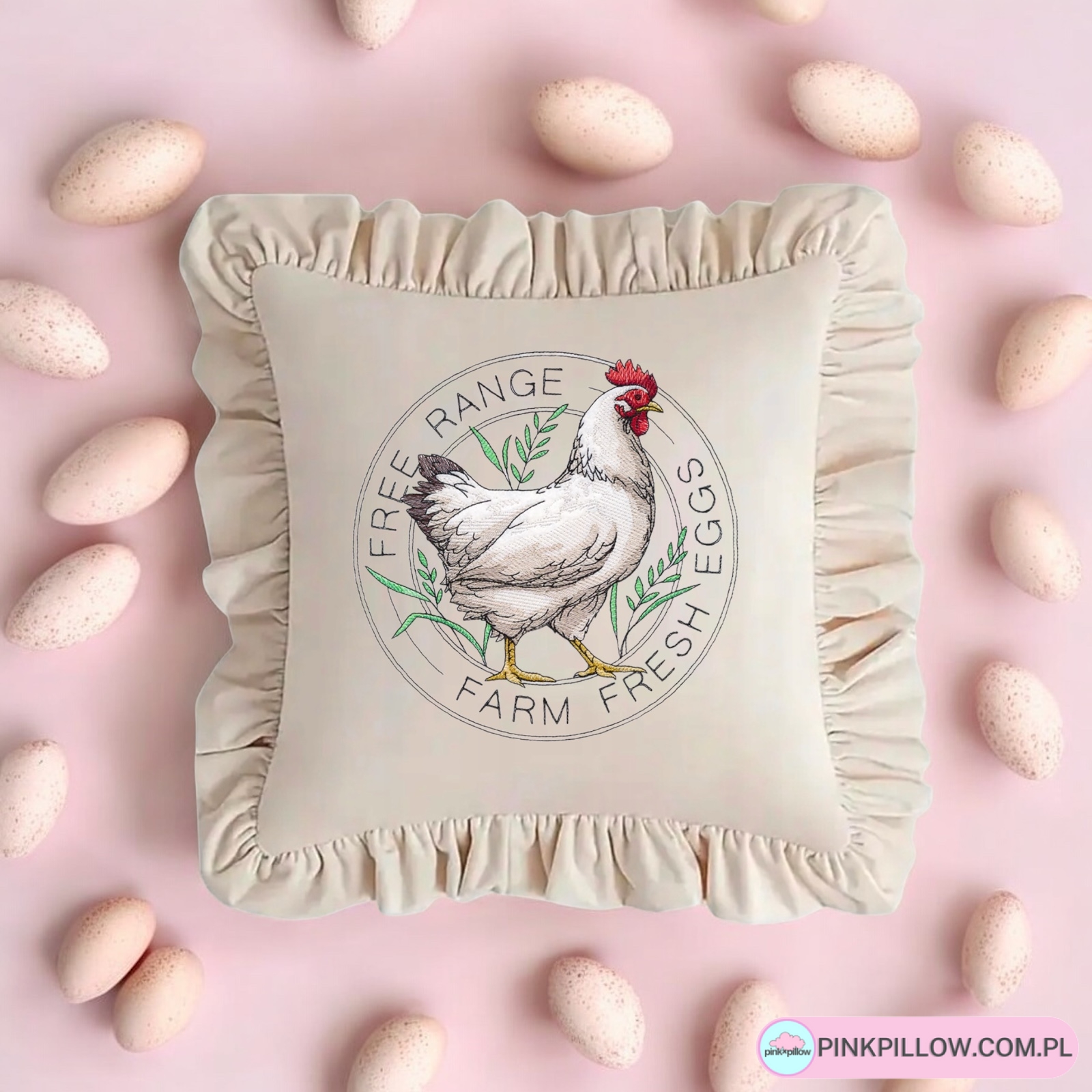 Poszewka welurowa z falbaną – Wzór Kura-stempel – Różne Kolory