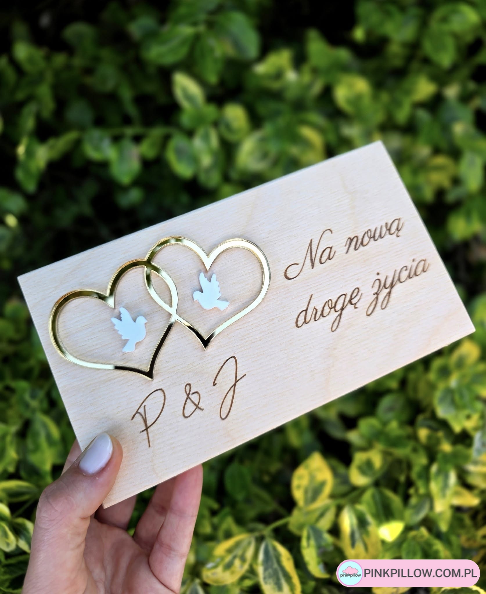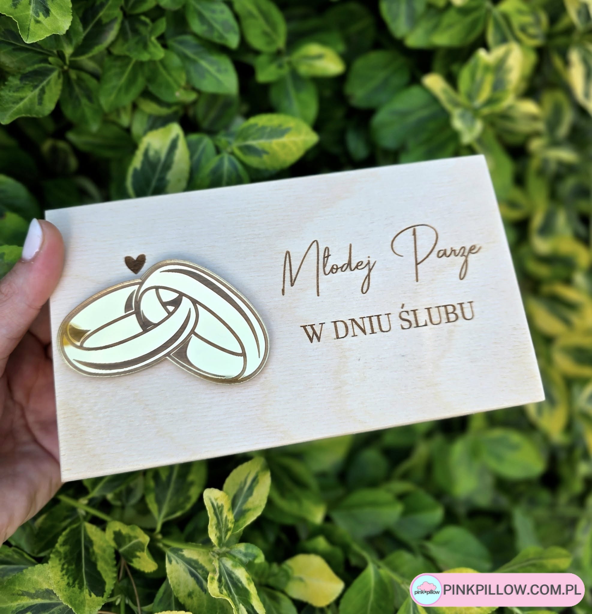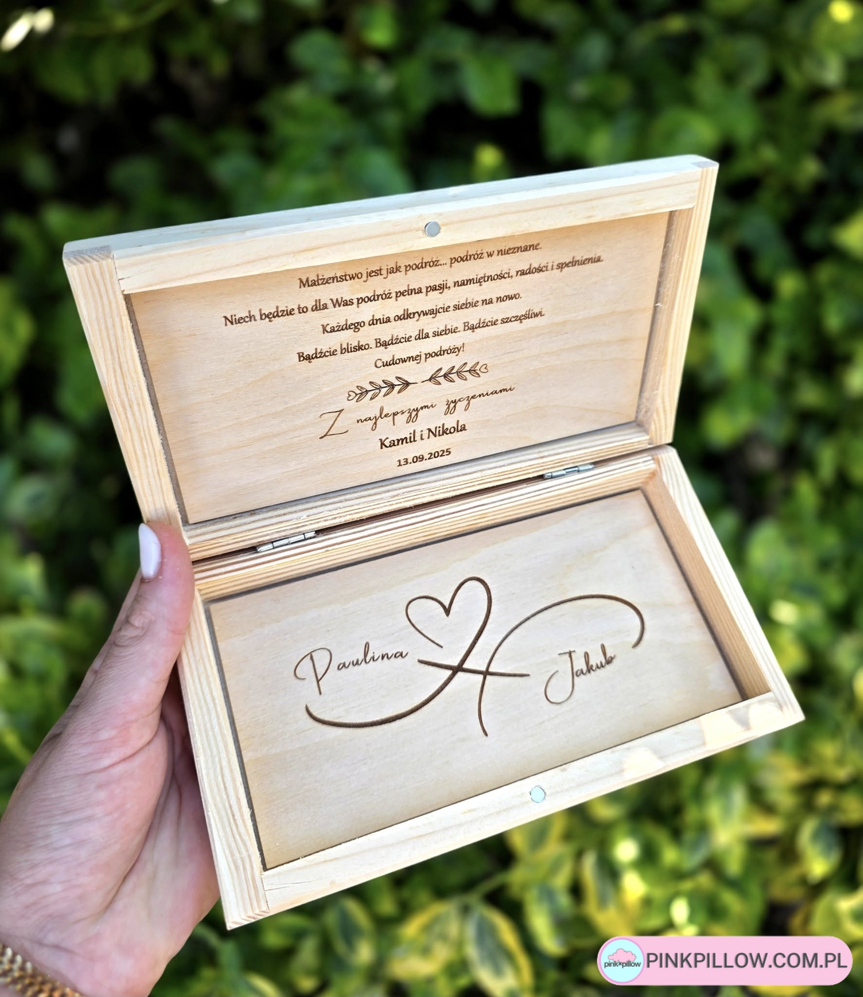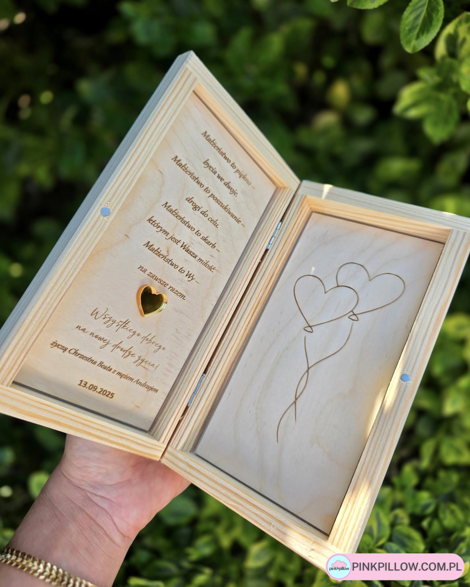 Drewniane Pudełko na pieniądze ślubne z Grawerem