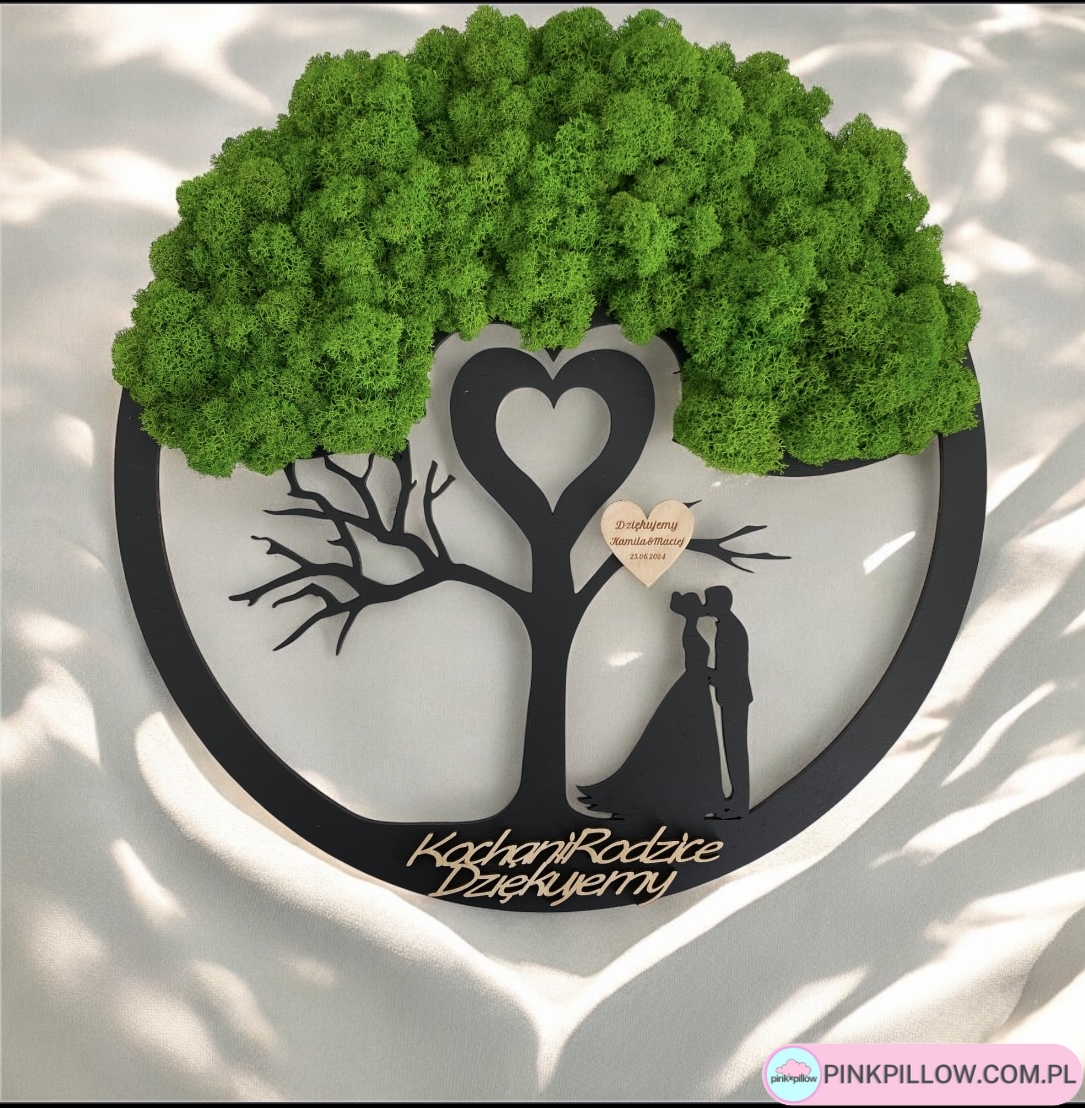Przy zakupie proszę o podanie w okienku Dodatkowe informacje koloru mchu i tekstu jaki ma znaleźć się na ramce.