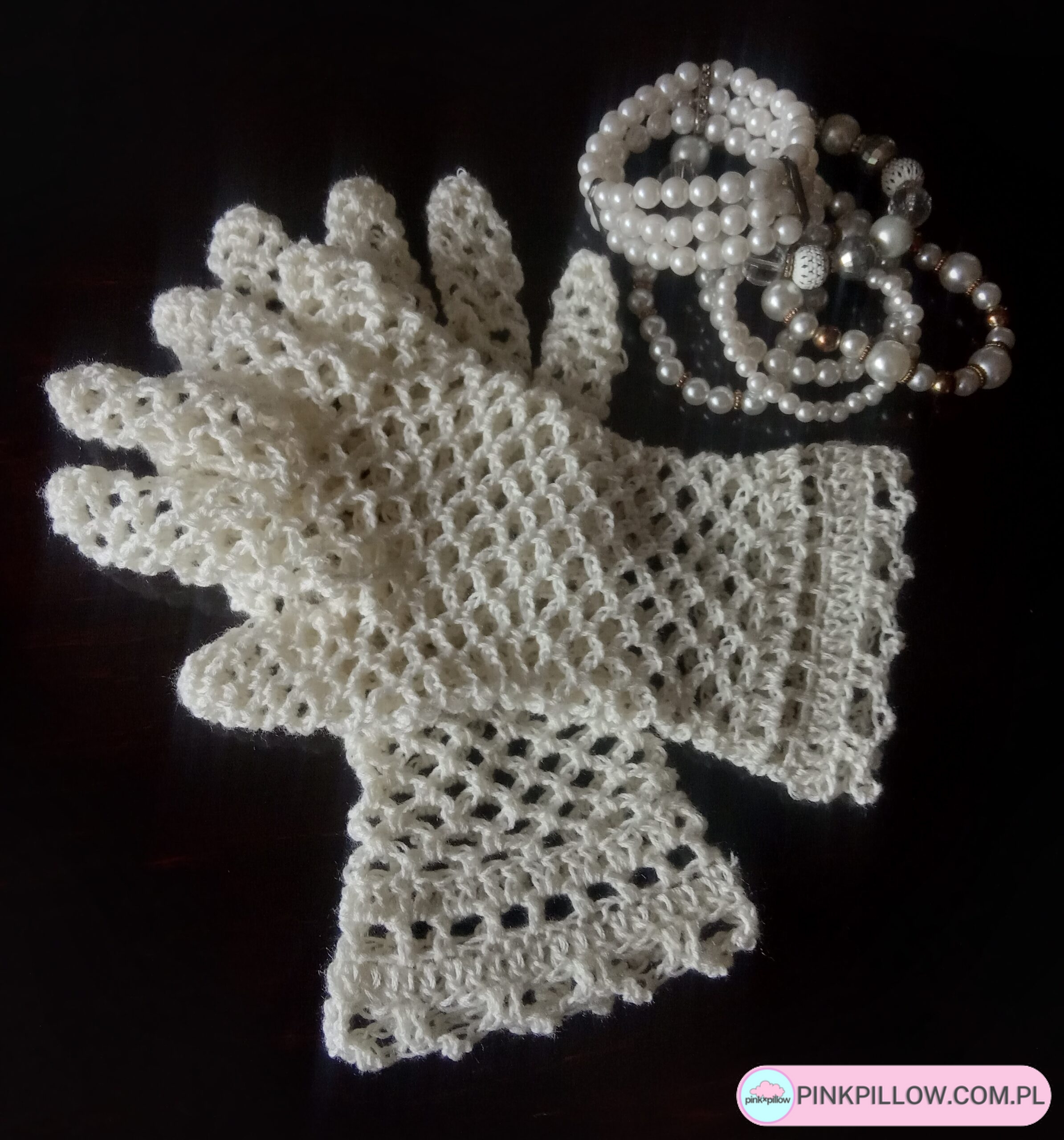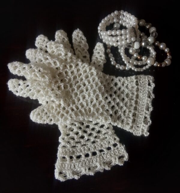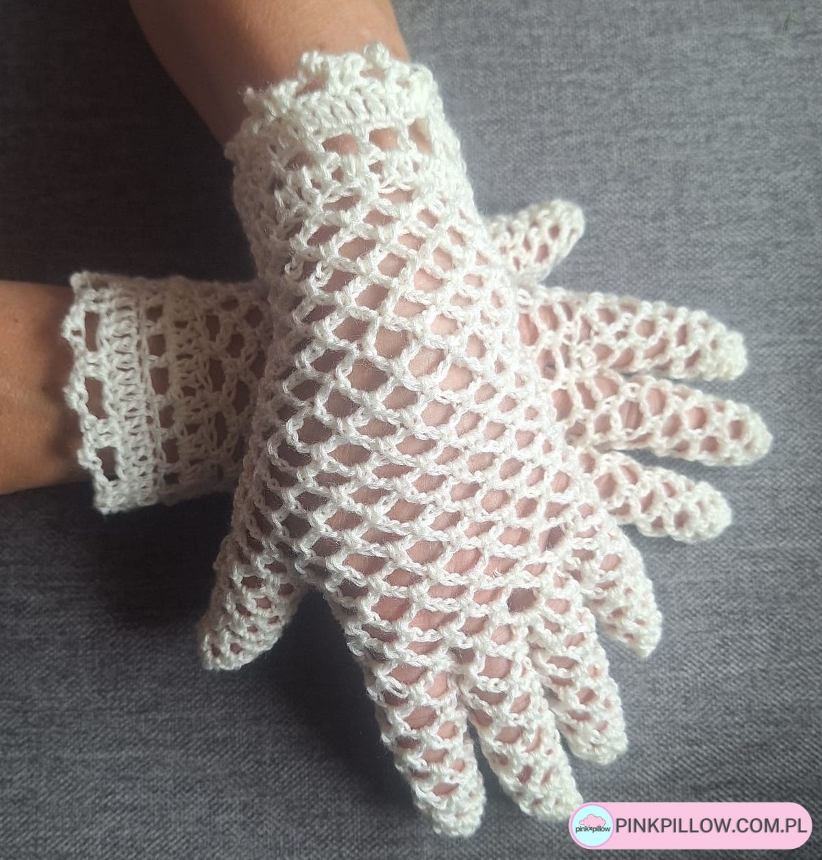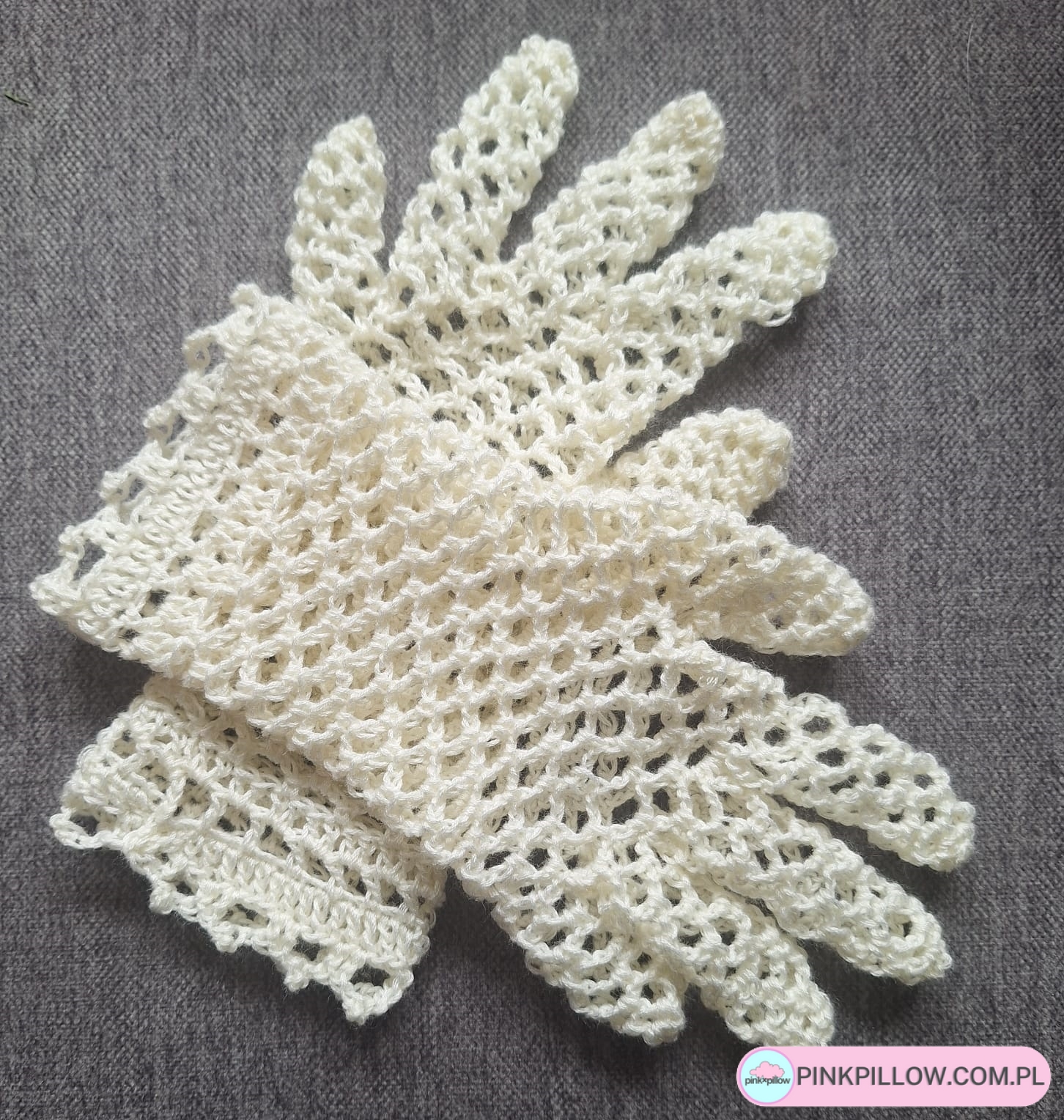Rękawiczki koronkowe wykonane ręcznie z bawełny w kolorze kremowym. Rozmiar S/M.