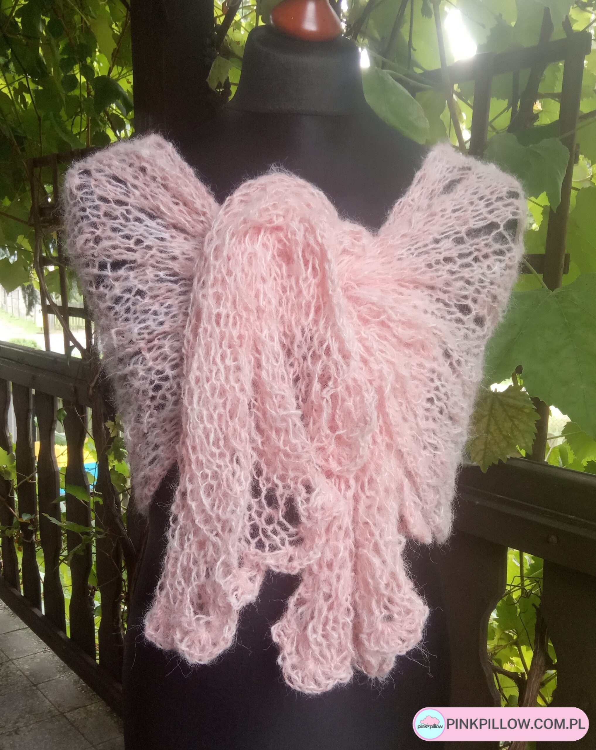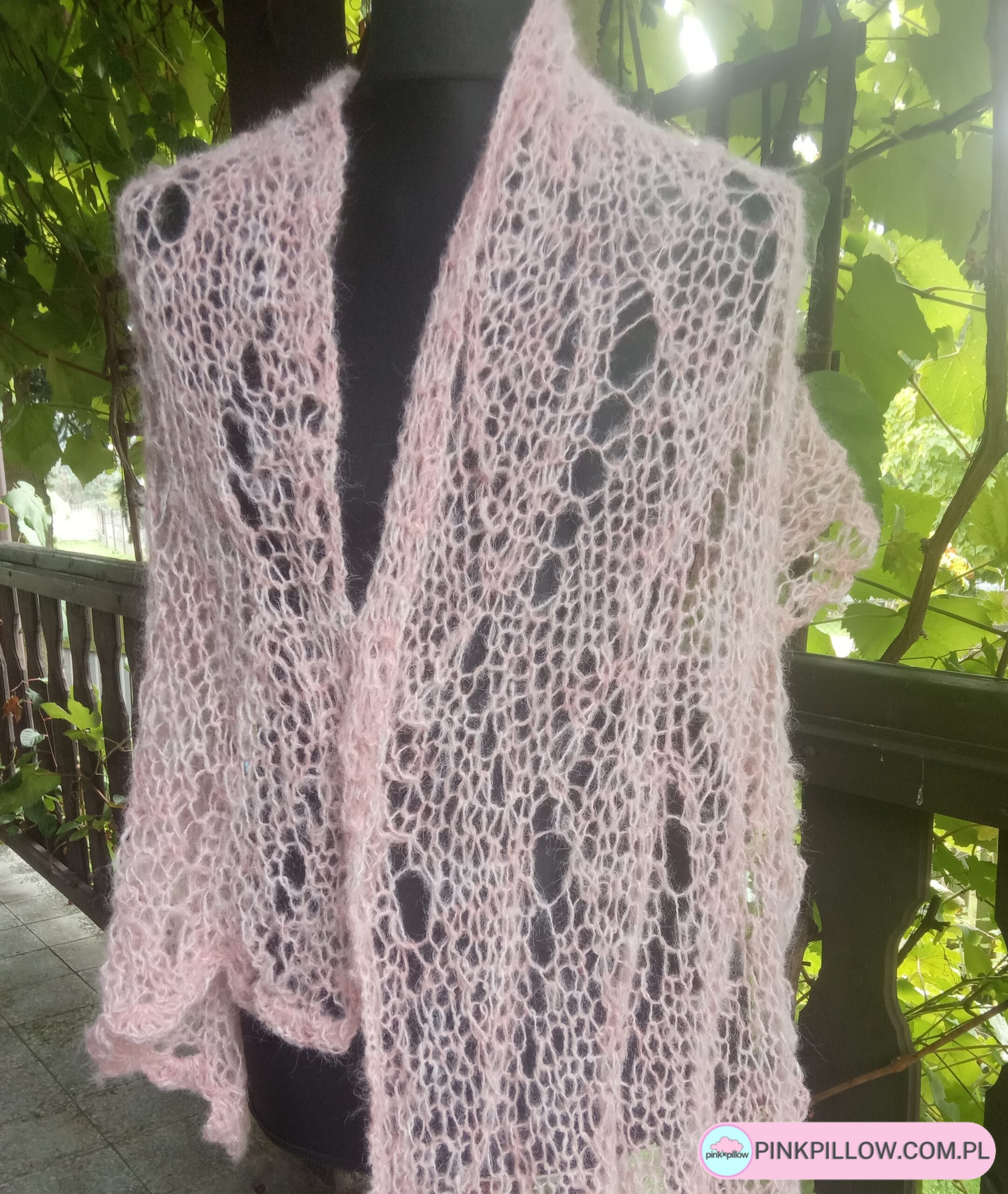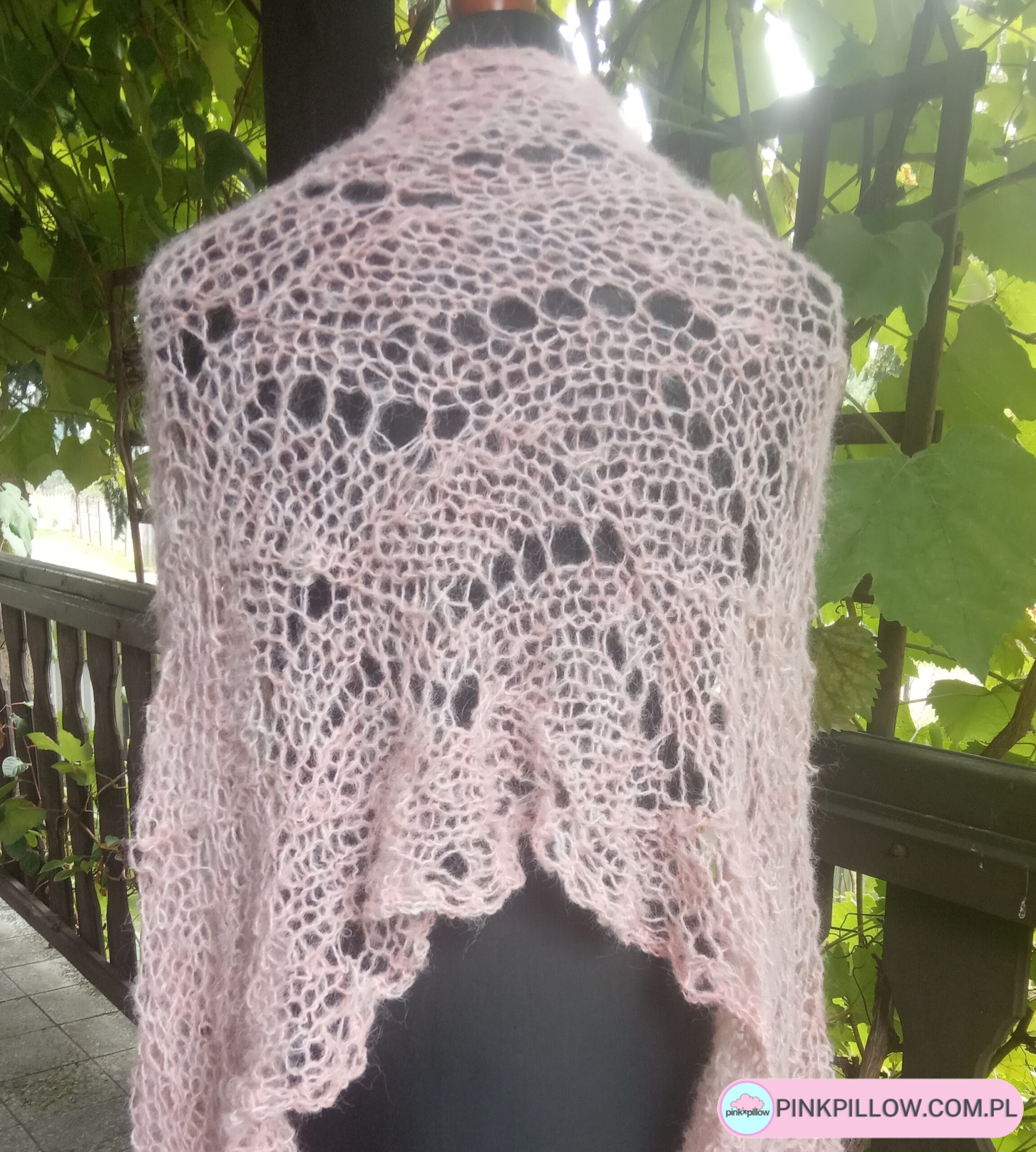 Różowa elegancka siateczkowa narzutka w całości wykonana ręcznie na drutach pięknym wzorem. Narzutka jest delikatna, leciutka i przyjemna w dotyku dzięki użytej włóczce alpaka. Narzutka ozdobi każdą stylizację, a dzięki temu że jest plastyczna i rozciągliwa, sprawia że można ją nosić na różne sposoby np. na płaszcz, sukienkę czy codzienne kreacje.