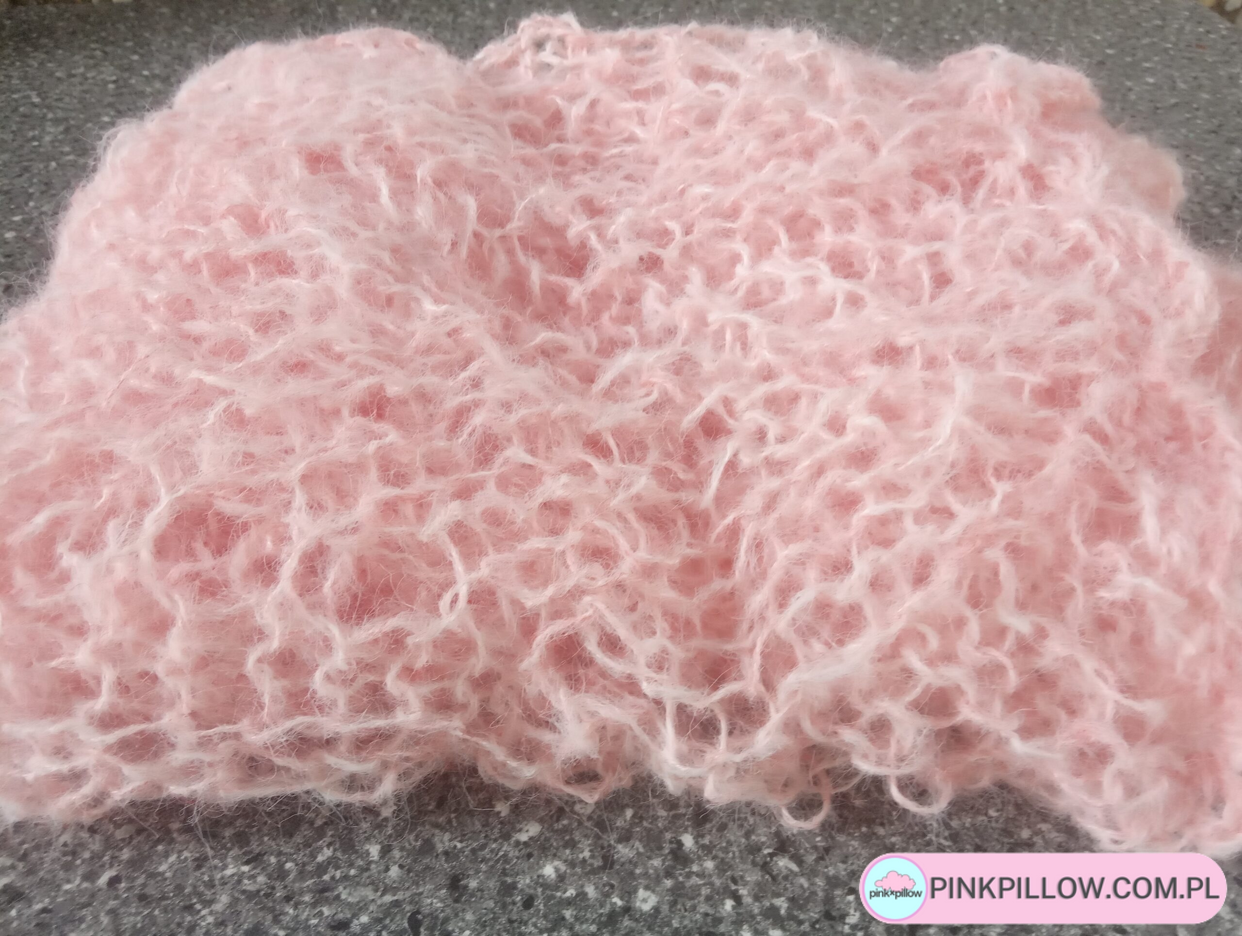 Różowa siateczkowa Narzutka z włóczką alpaka