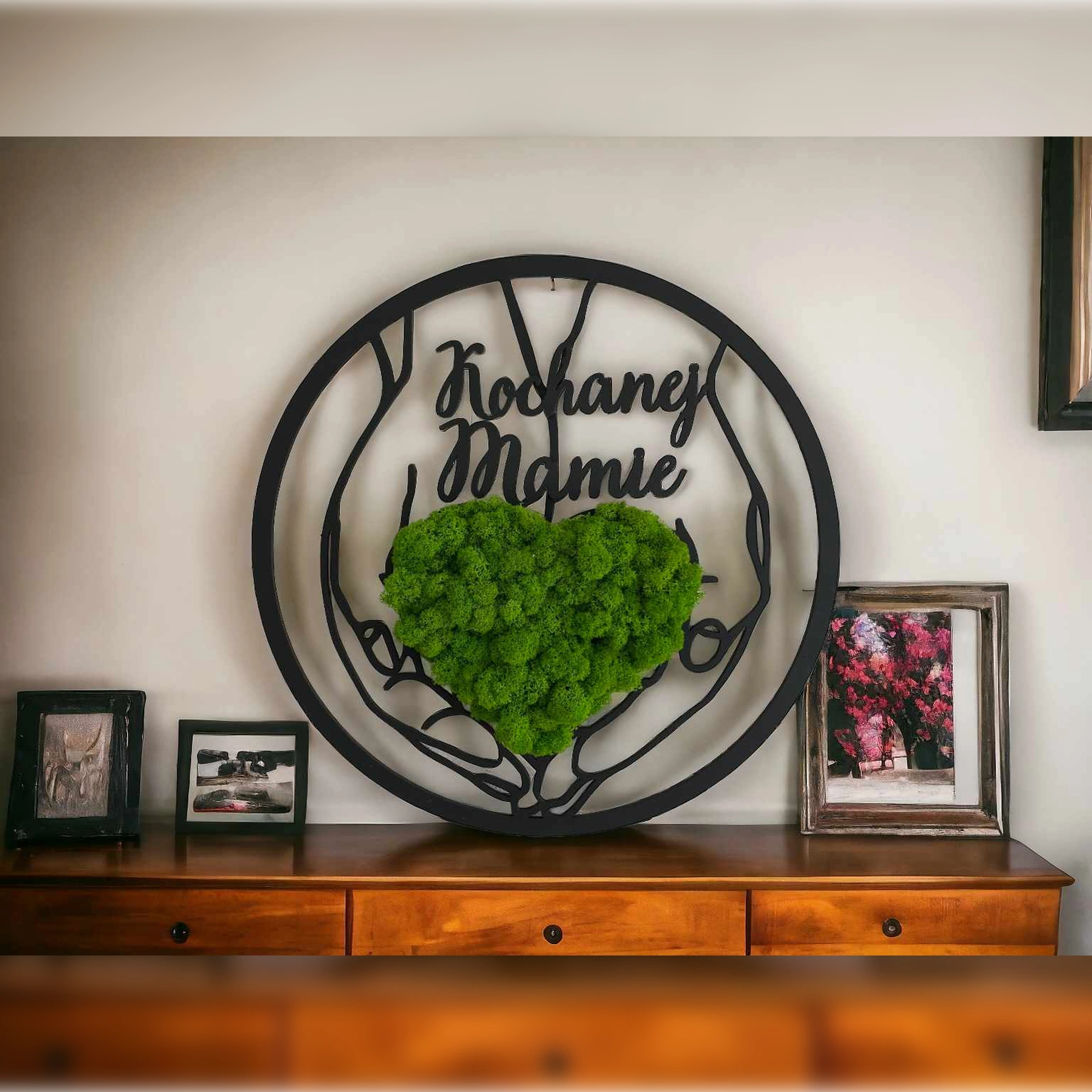 Wprowadź naturę i miłość do swojego wnętrza z naszą unikalną dekoracją – dłonie trzymające serce z wiecznie zielonym mchem chrobotkiem. Ta wyjątkowa ozdoba o średnicy 40 cm wykonana jest z trwałej sklejki o grubości 3 mm. Naturalny mech nie wymaga żadnej pielęgnacji, a jego intensywna zieleń pozostaje nienaruszona przez długie lata, dzięki czemu dekoracja zachowuje swój urok na zawsze.