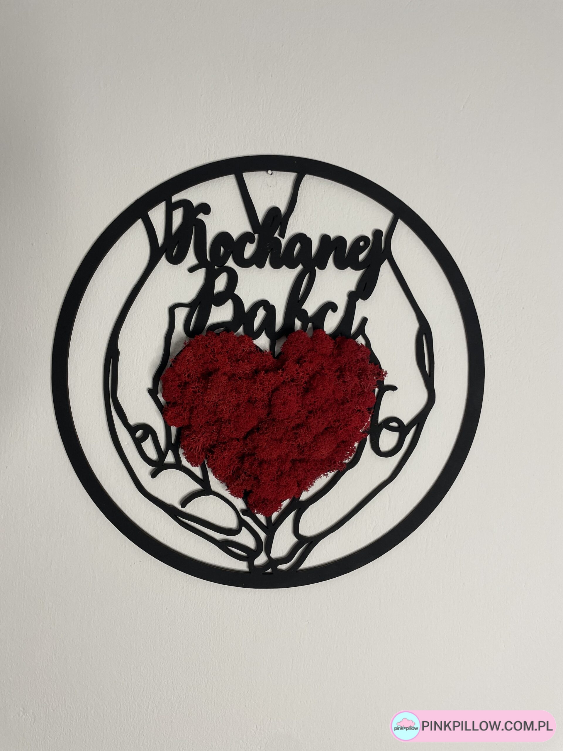 Serce z Mchu Chrobotka z grawerem na Dzień Babci