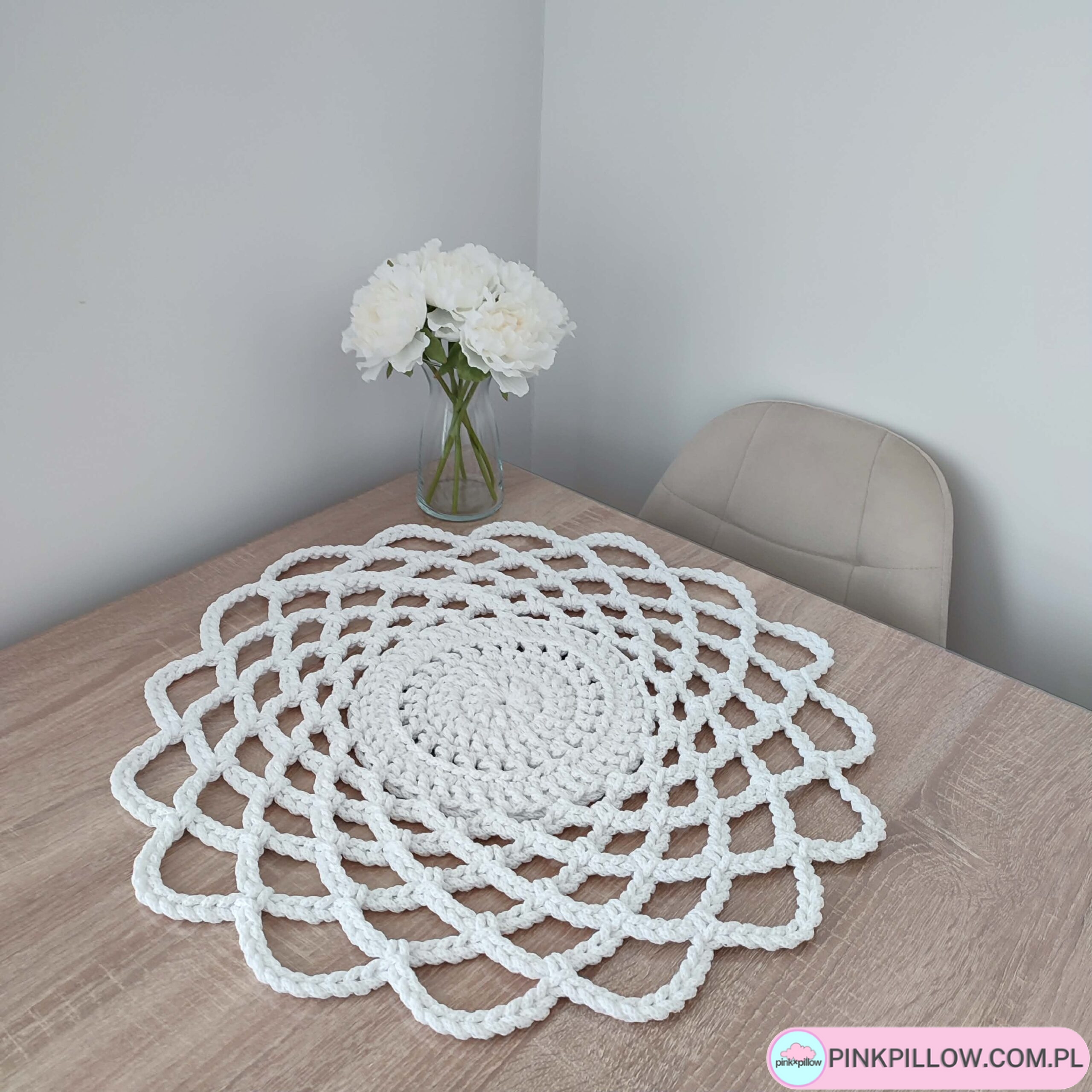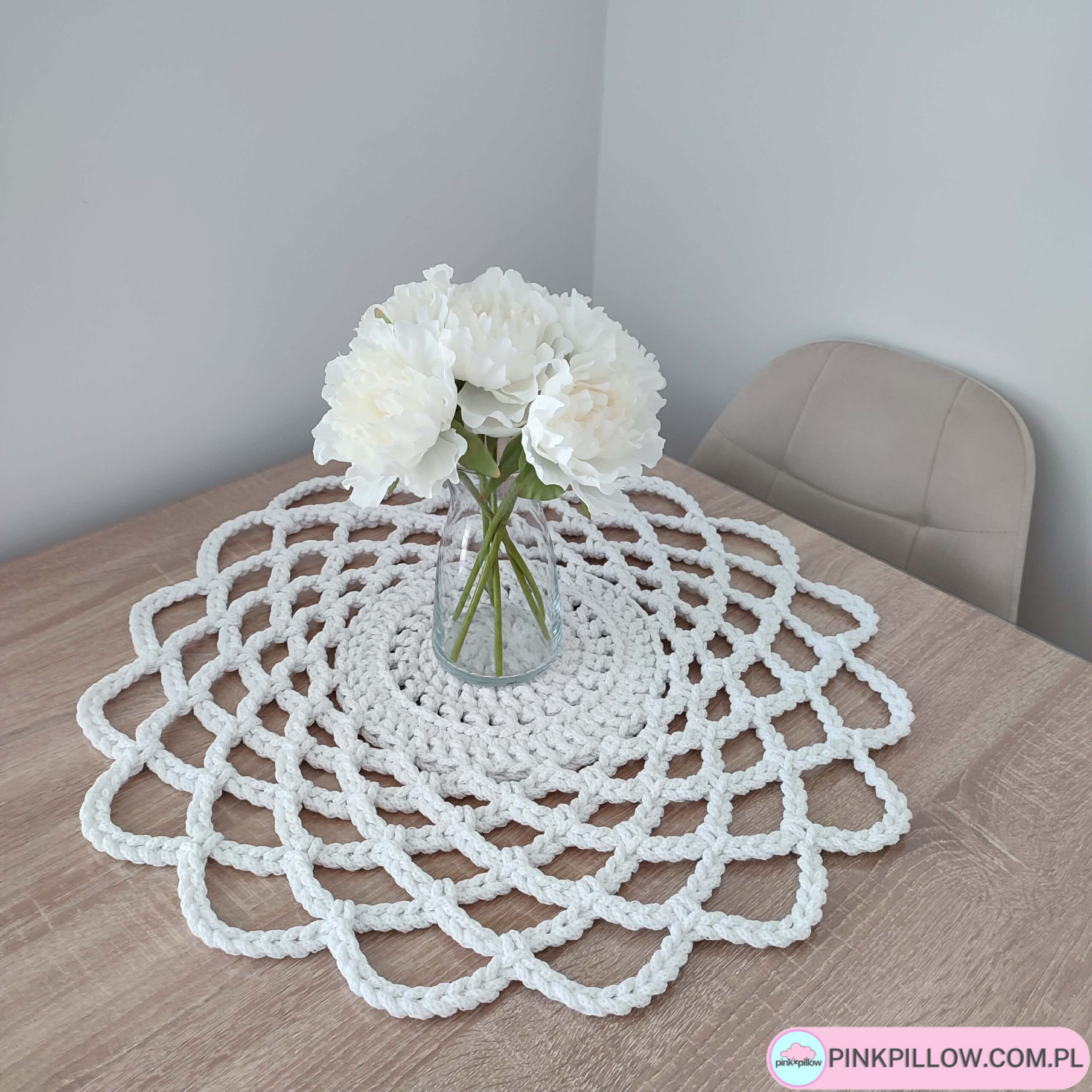 Serweta o średnicy 55cm, wykonana metodą szydełkowania z polskiego sznurka bawełnianego 5mm.