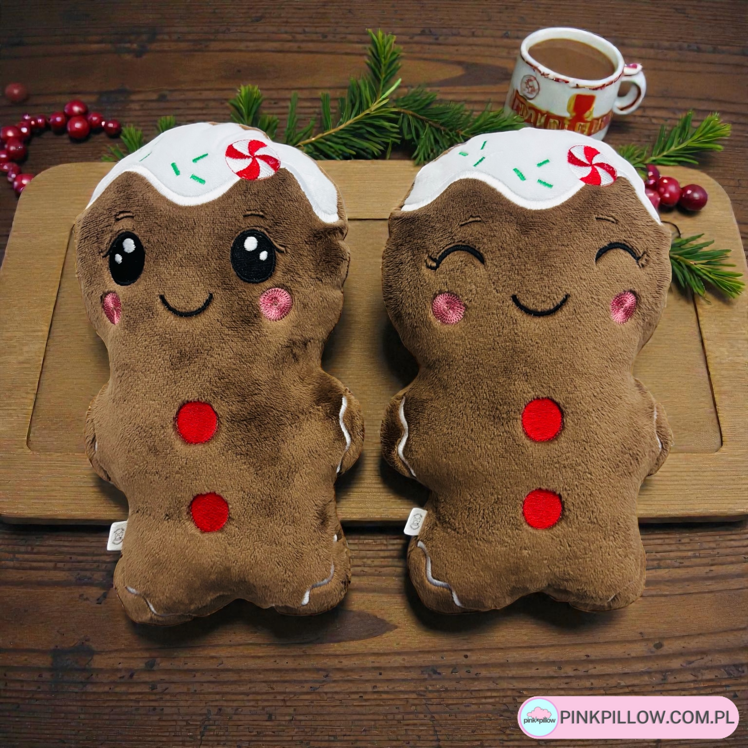 Te urocze pluszowe pierniki to idealna dekoracja, która wprowadzi do Twojego domu prawdziwe, ciepłe, bożonarodzeniowe klimaty. Uszyte z wyjątkowo miękkiego i przytulnego minky, ozdobione precyzyjnym haftem maszynowym, mają ok. 30 cm wysokości – dzięki temu świetnie prezentują się zarówno na kanapie, jak i na półce czy pod choinką.