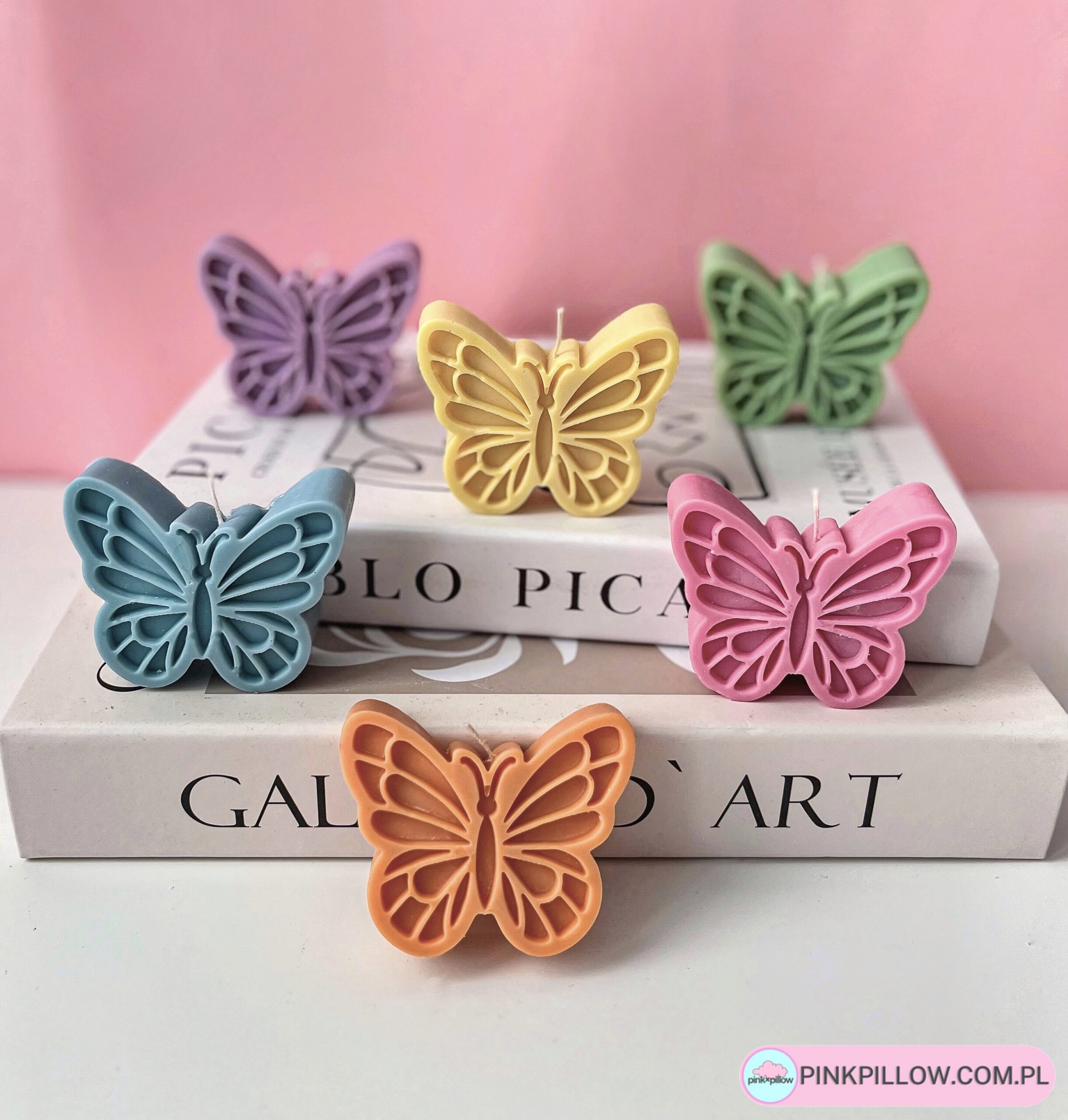 Świeczka sojowa w kształcie Motylka. Możliwa do wykonania w jednym z poniższych kolorów. Wprowadź trochę wiosny do swojego wnętrza!